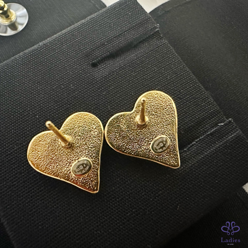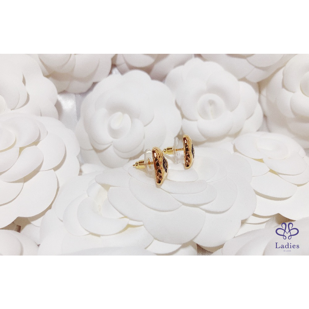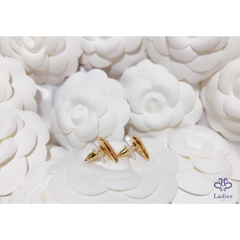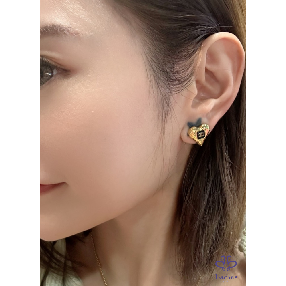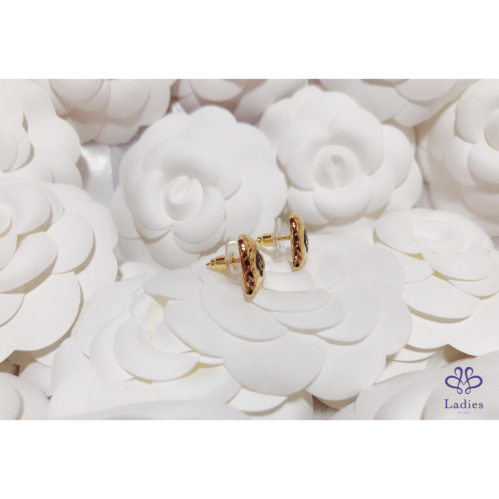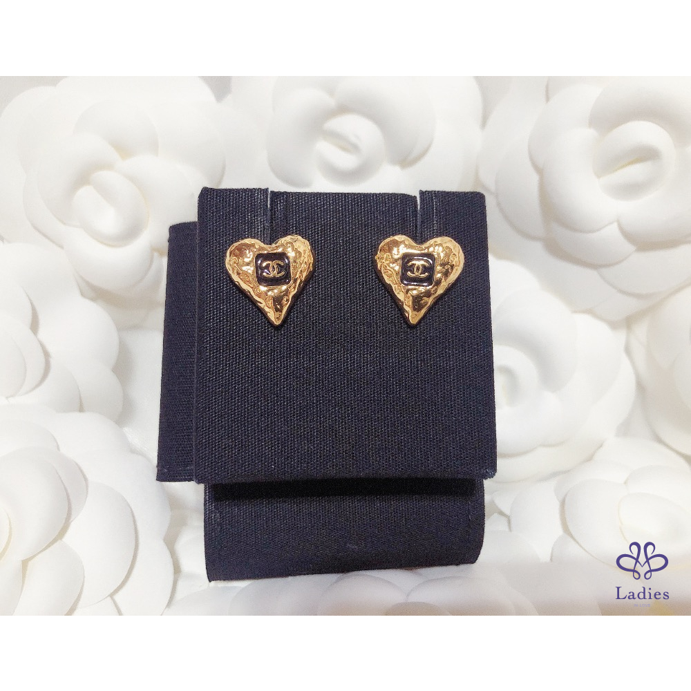 首頁 精品手錶 CHANEL 香奈兒 小香 23k 新款 金色 不規則紋路 愛心 黑色琺瑯 針式耳環 全新✨