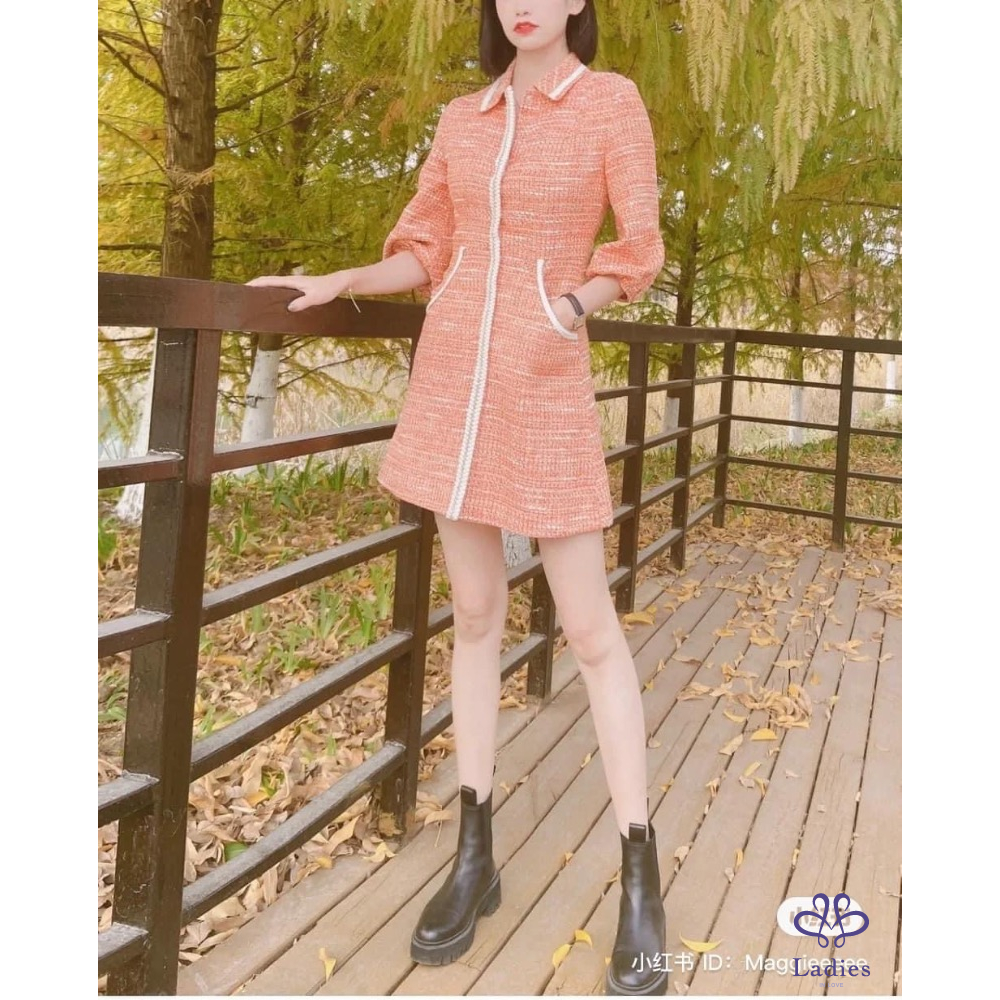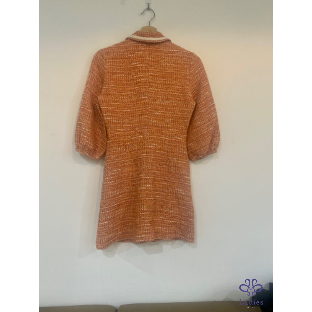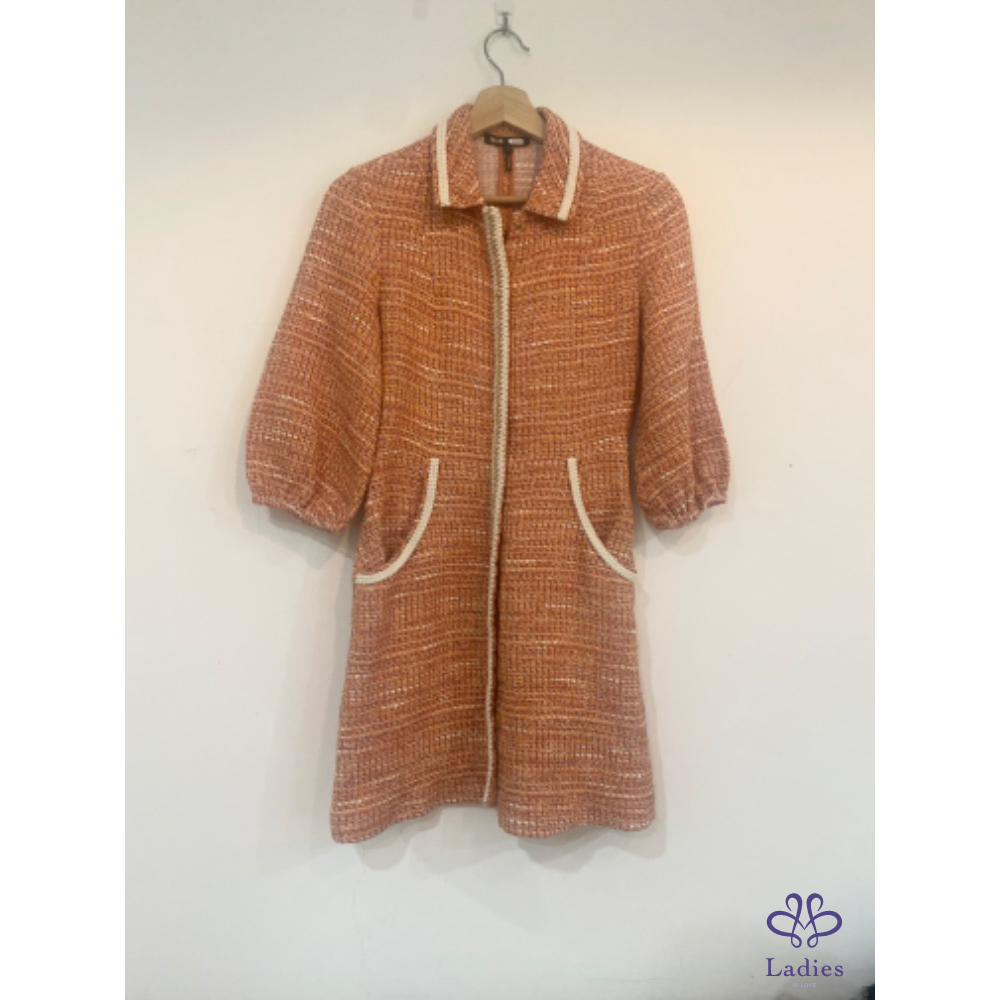 首頁 精品服飾 Maje 水蜜桃粉橘泡泡袖毛呢洋裝