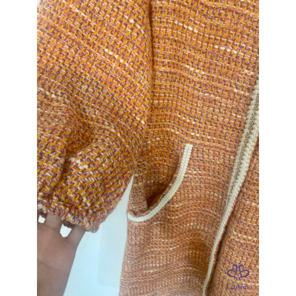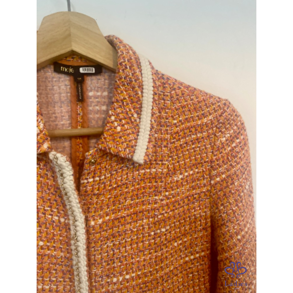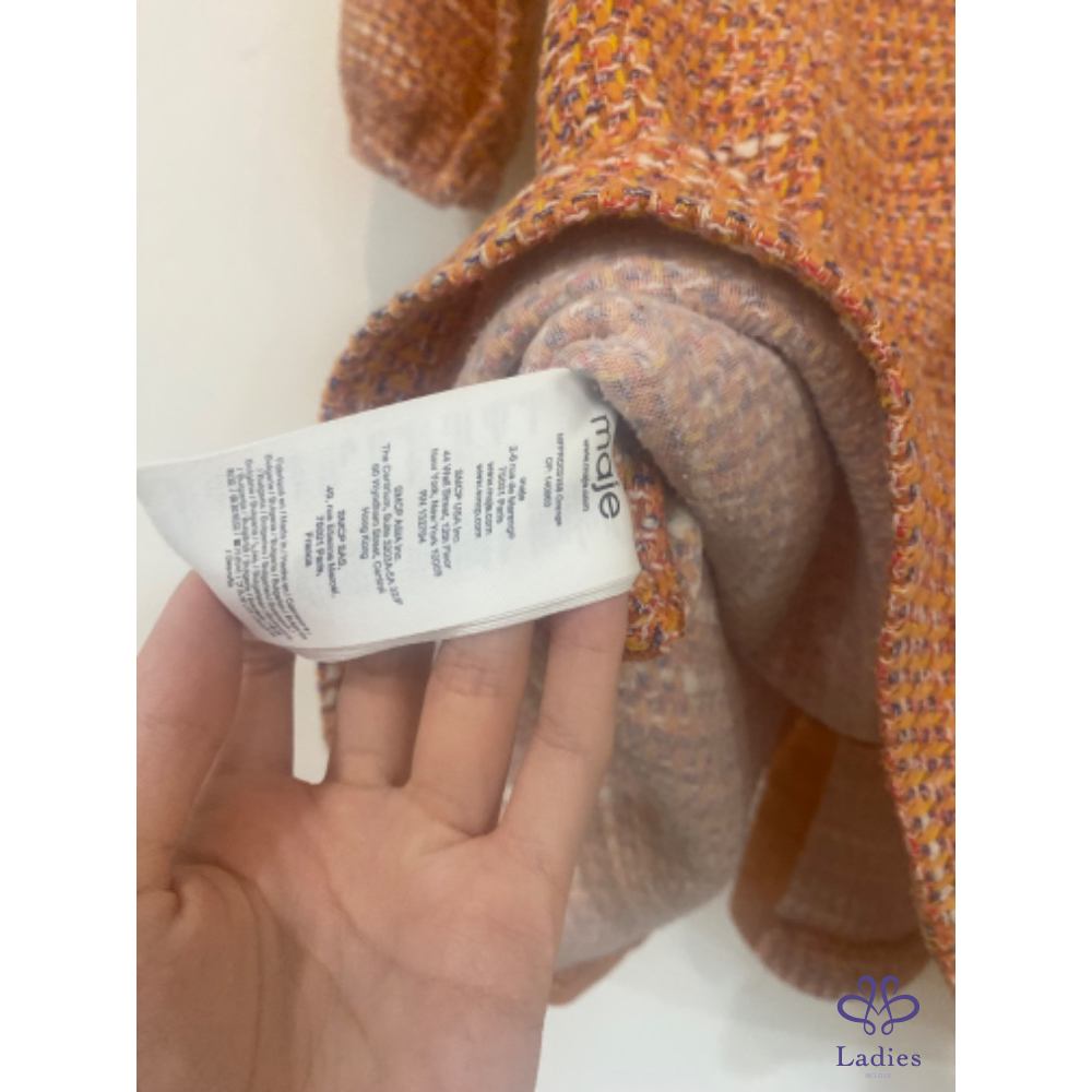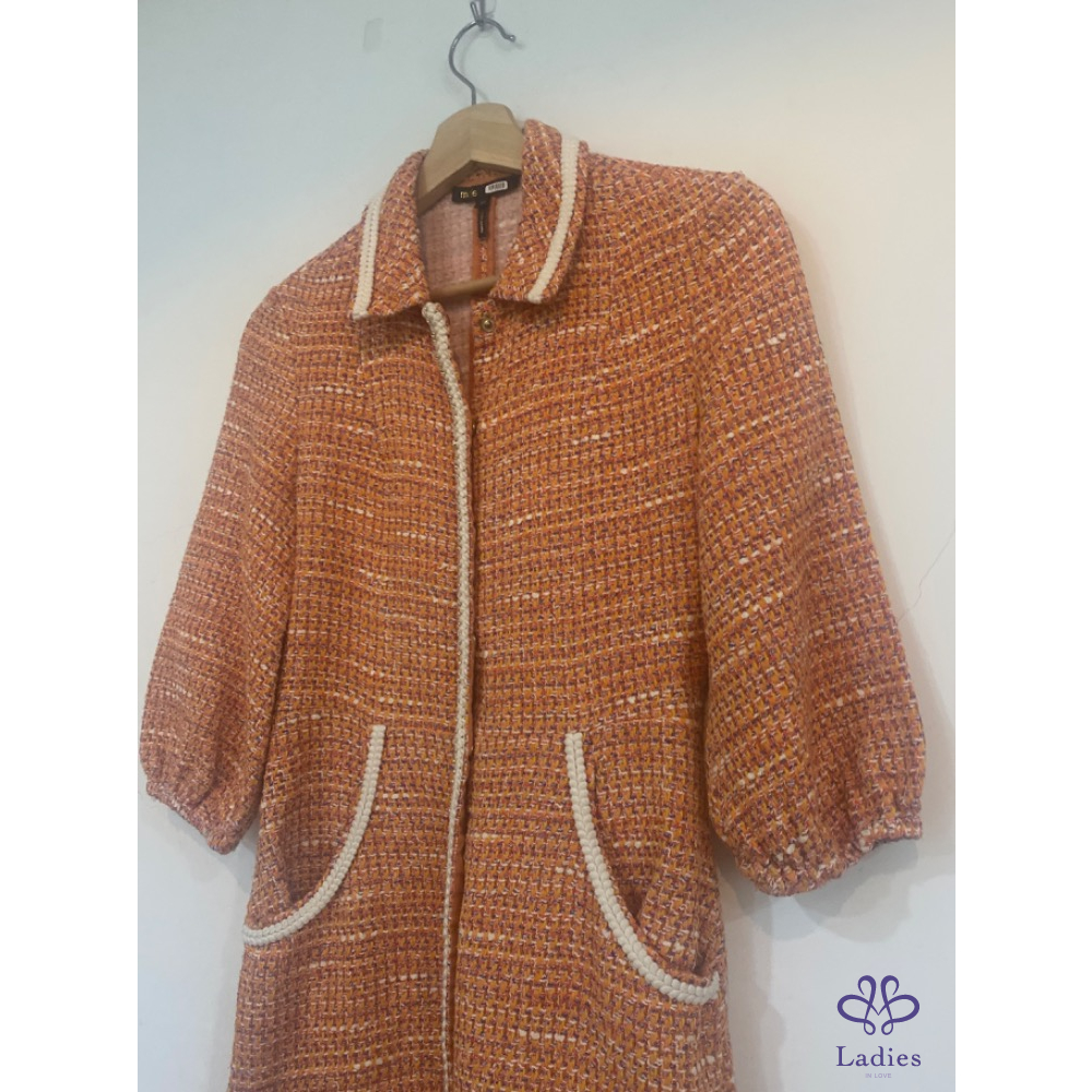 首頁 精品服飾 Maje 水蜜桃粉橘泡泡袖毛呢洋裝