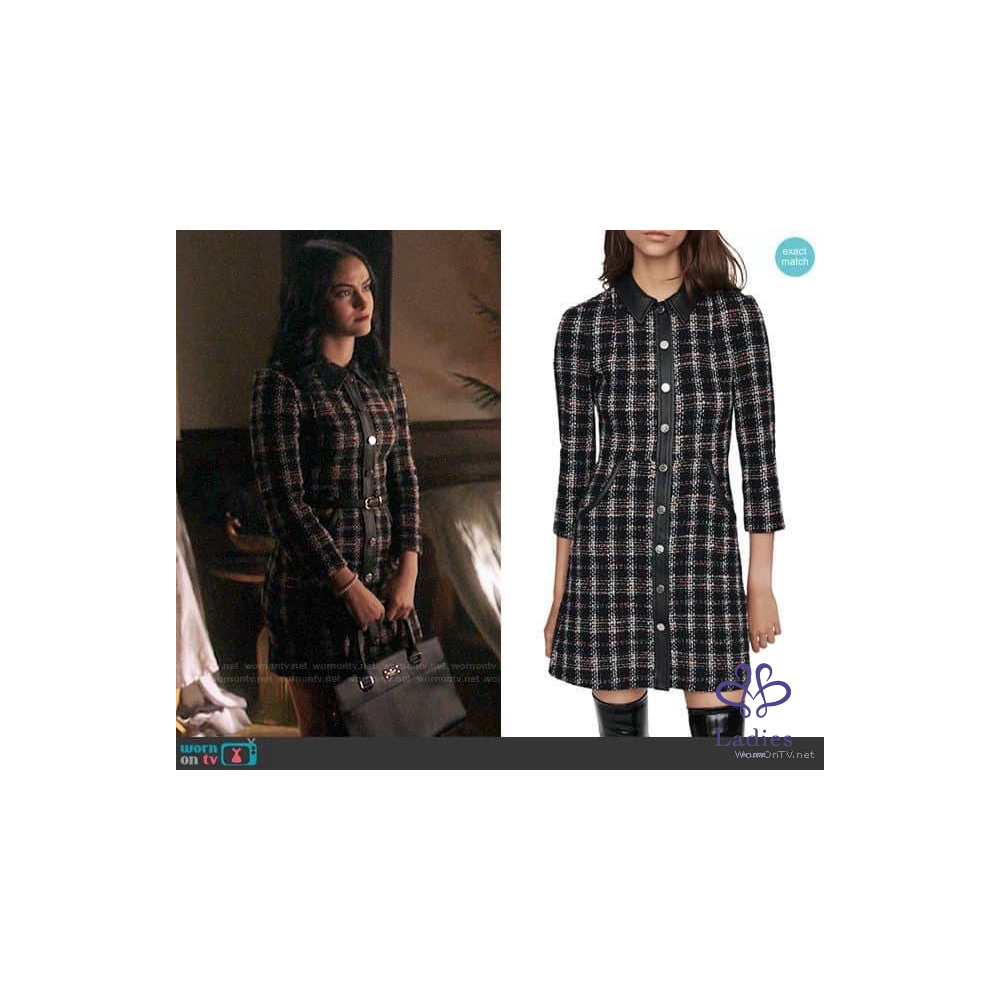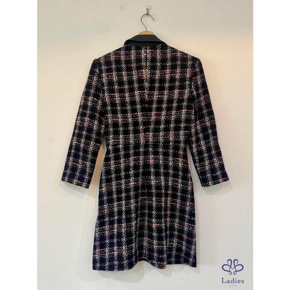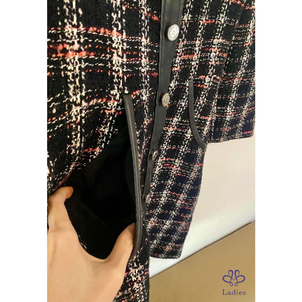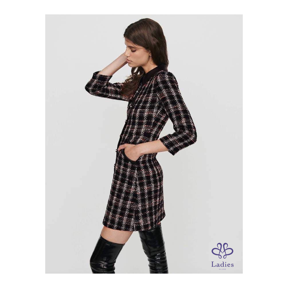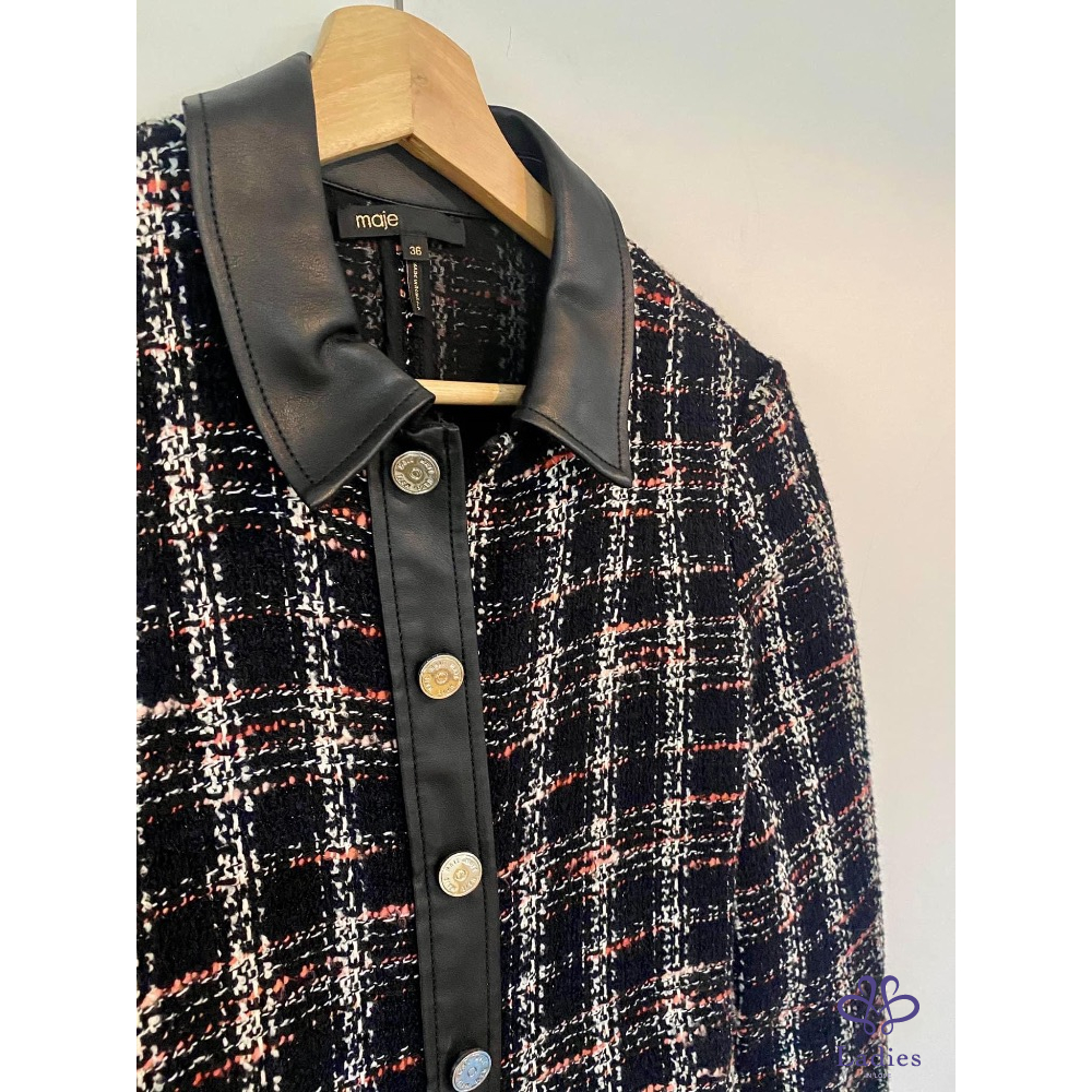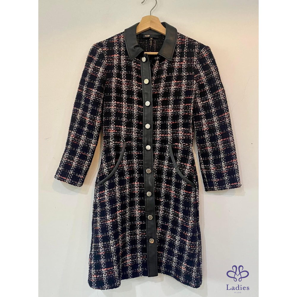 首頁 精品服飾 Maje 黑色皮革小香毛呢拼接洋裝