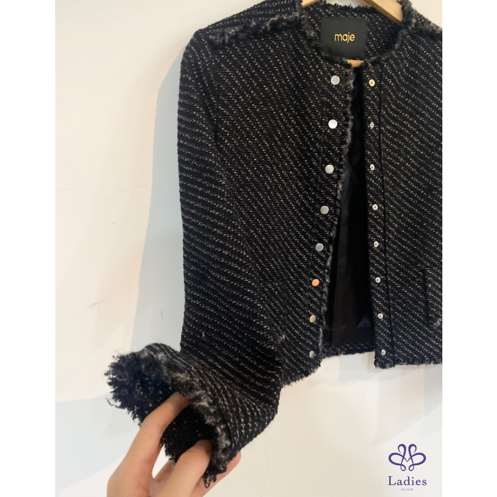 首頁 精品服飾 Maje 小香經典黑灰粗毛呢外套