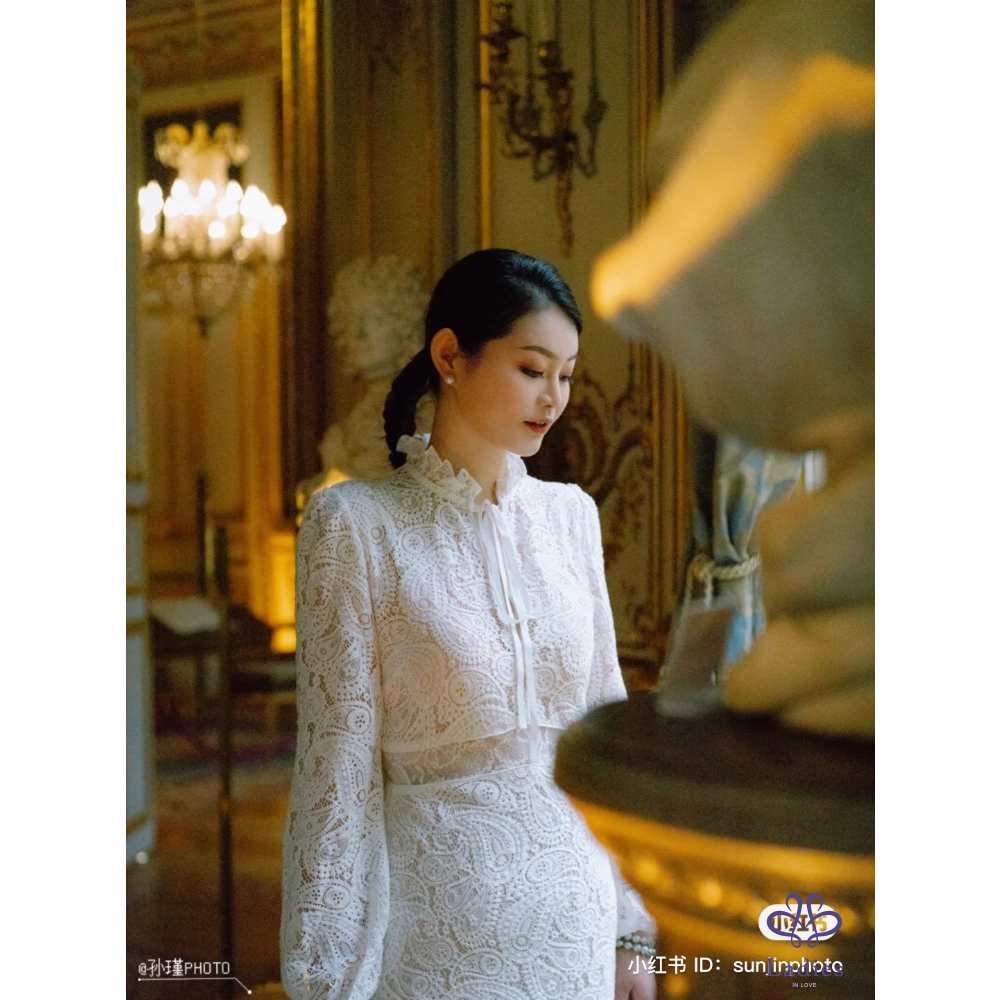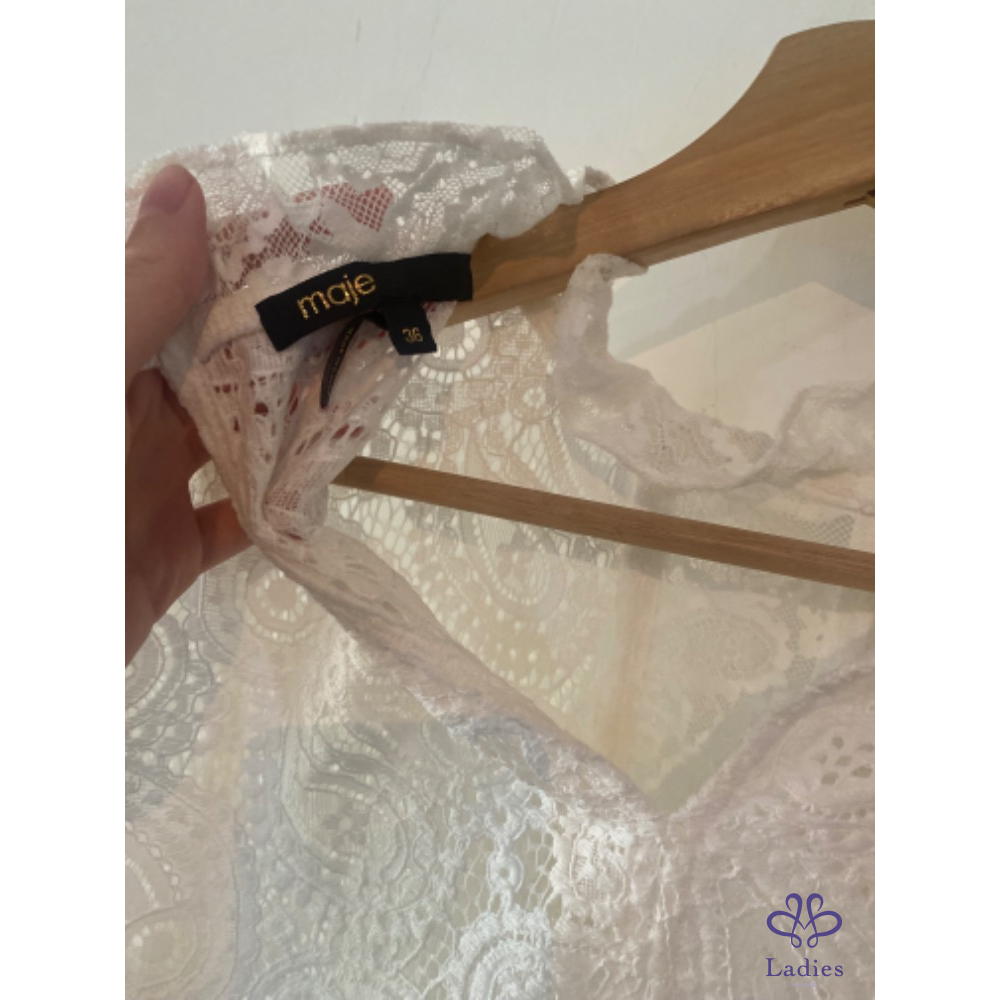 巴黎輕奢品牌 Maje 古典白色重工蕾絲洋裝