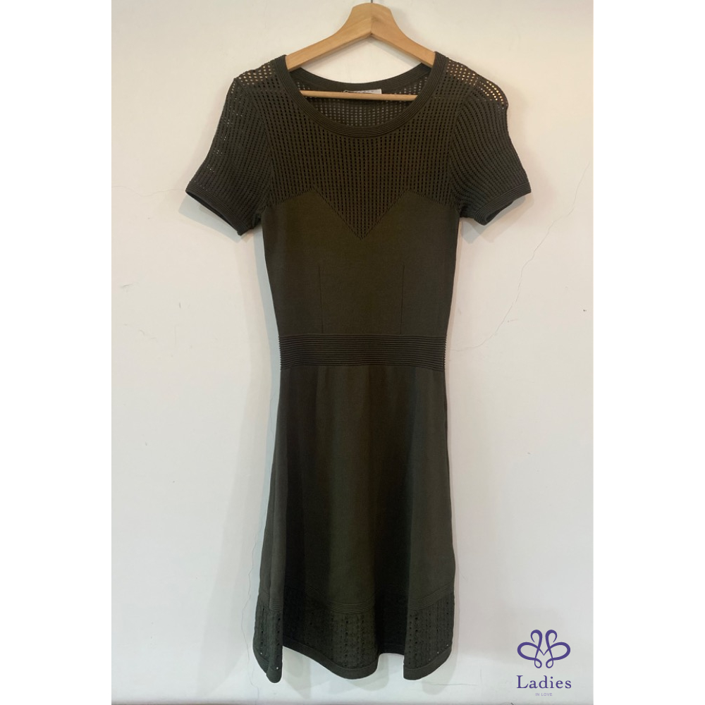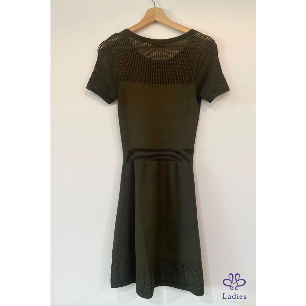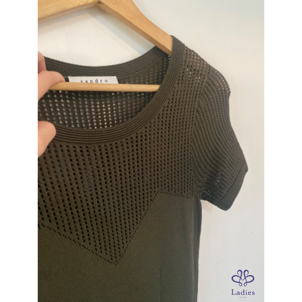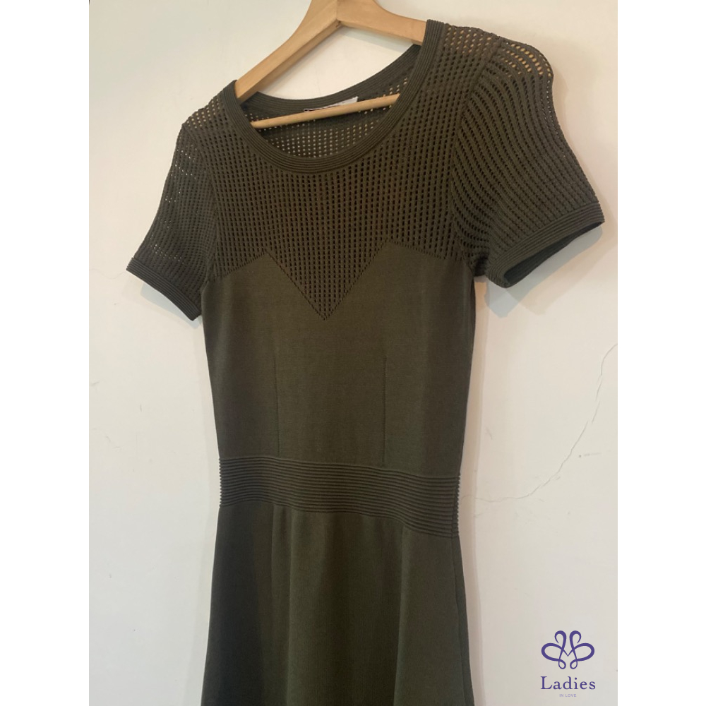Sandro 軍綠透實簍空針織洋裝