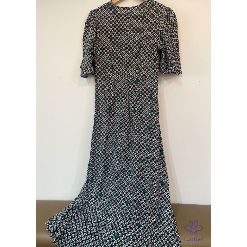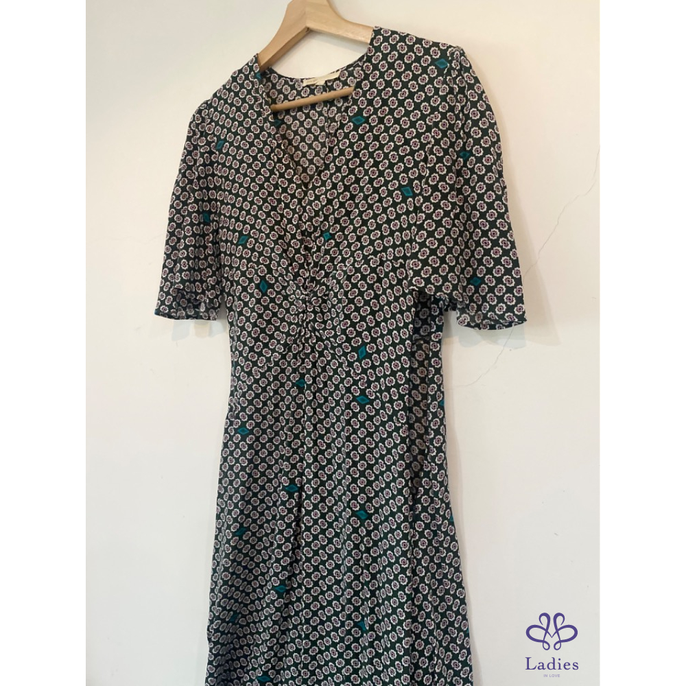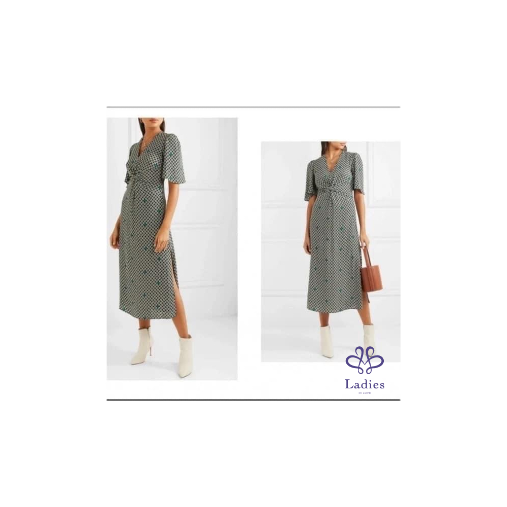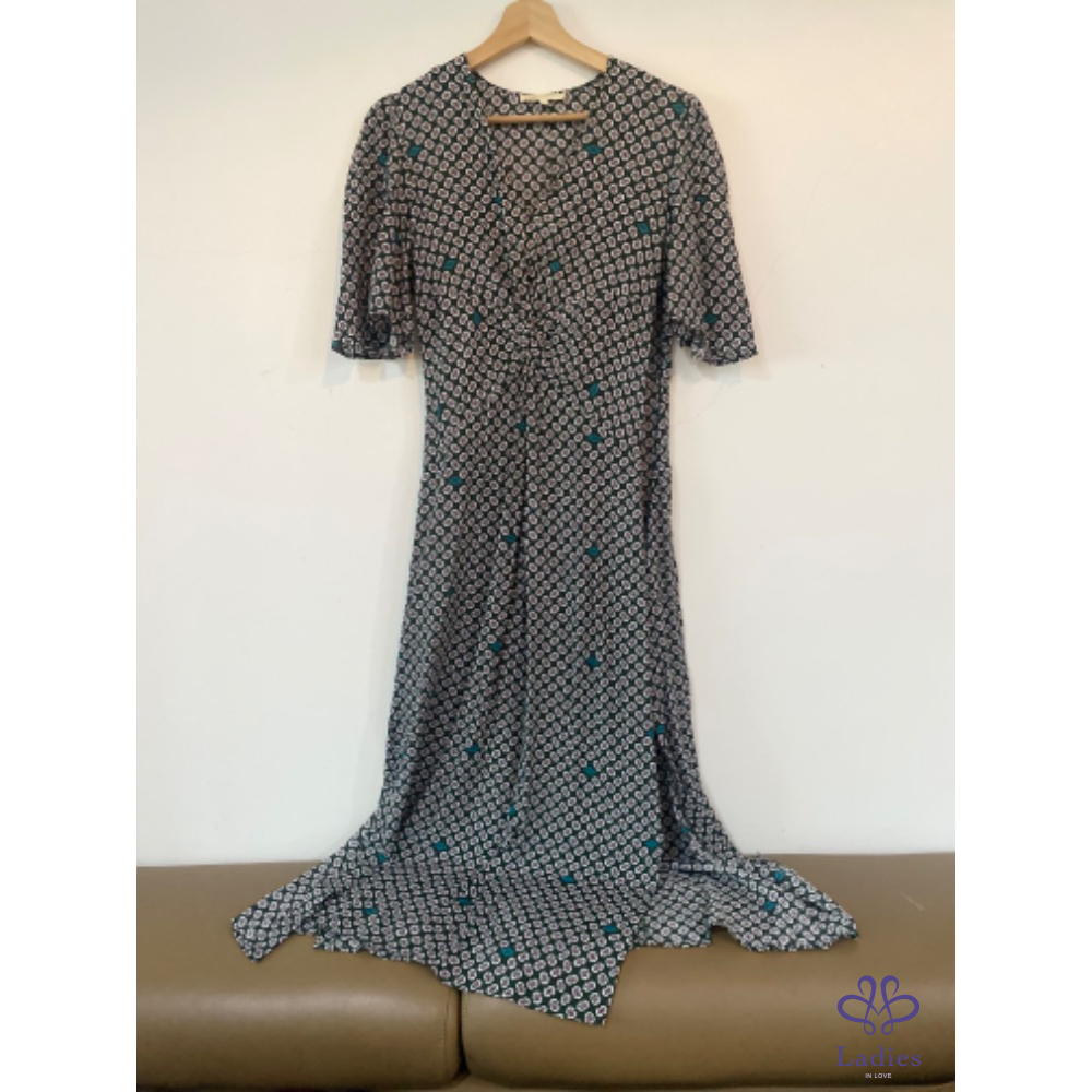 Maje 抹茶綠類真絲印花扭結長版洋裝
