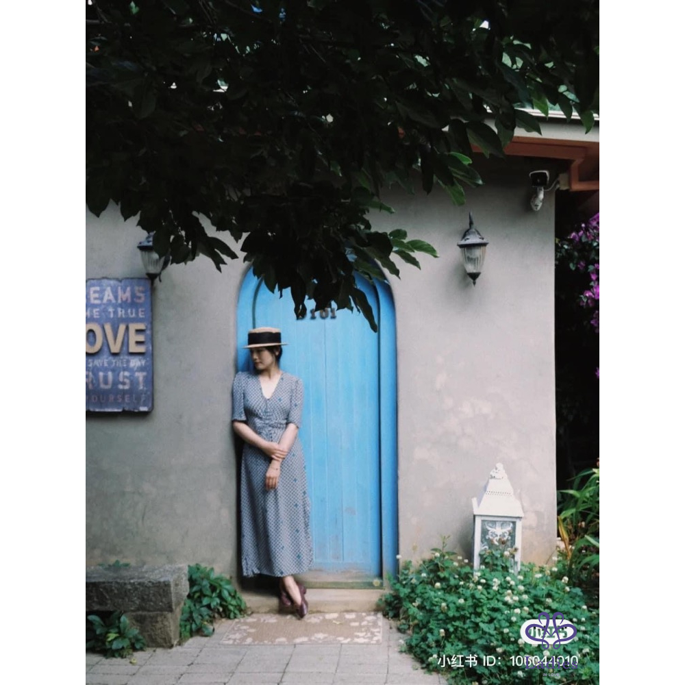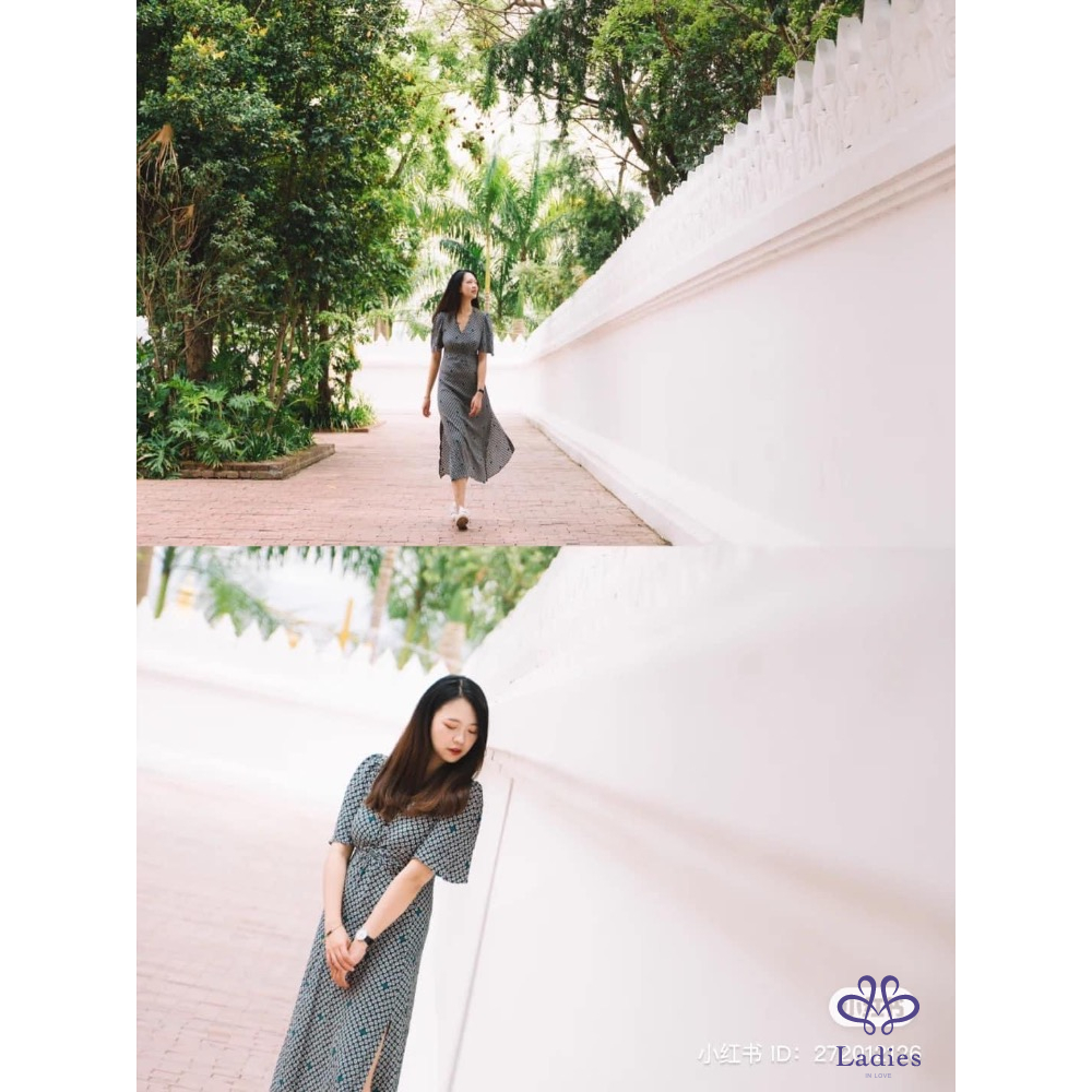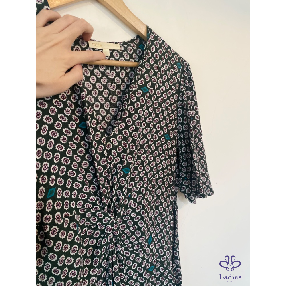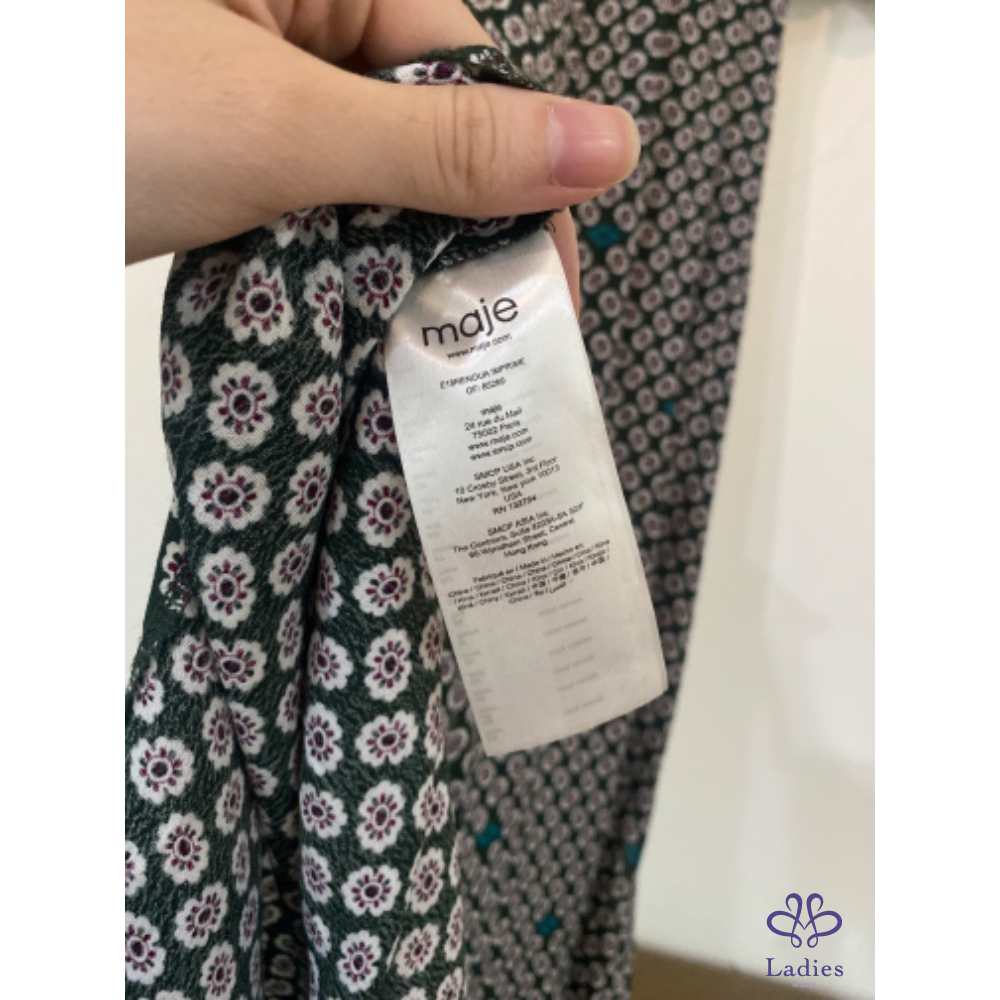 首頁 精品服飾 Maje 抹茶綠類真絲印花扭結長版洋裝