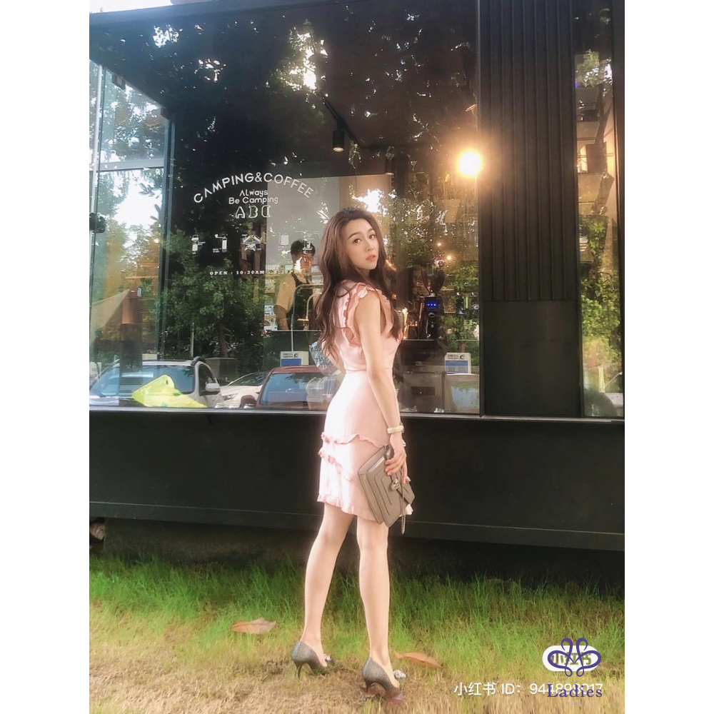 Sandro 純慾系蜜桃粉木耳邊洋裝