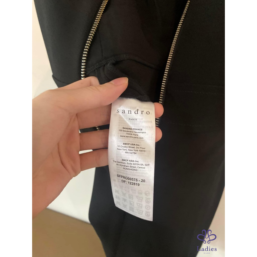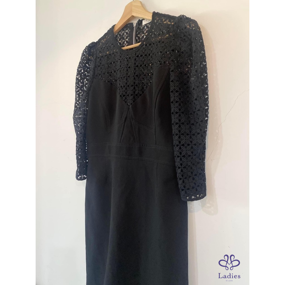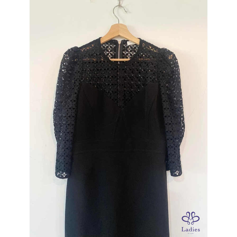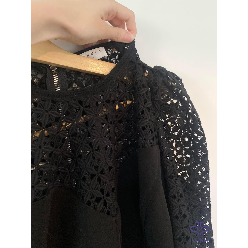 Sandro 泡泡袖菱格幾何簍空洋裝