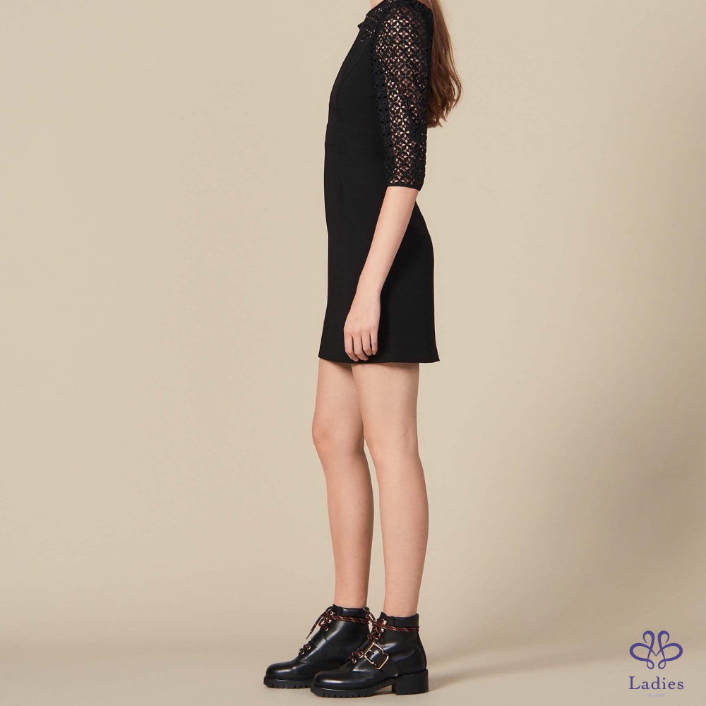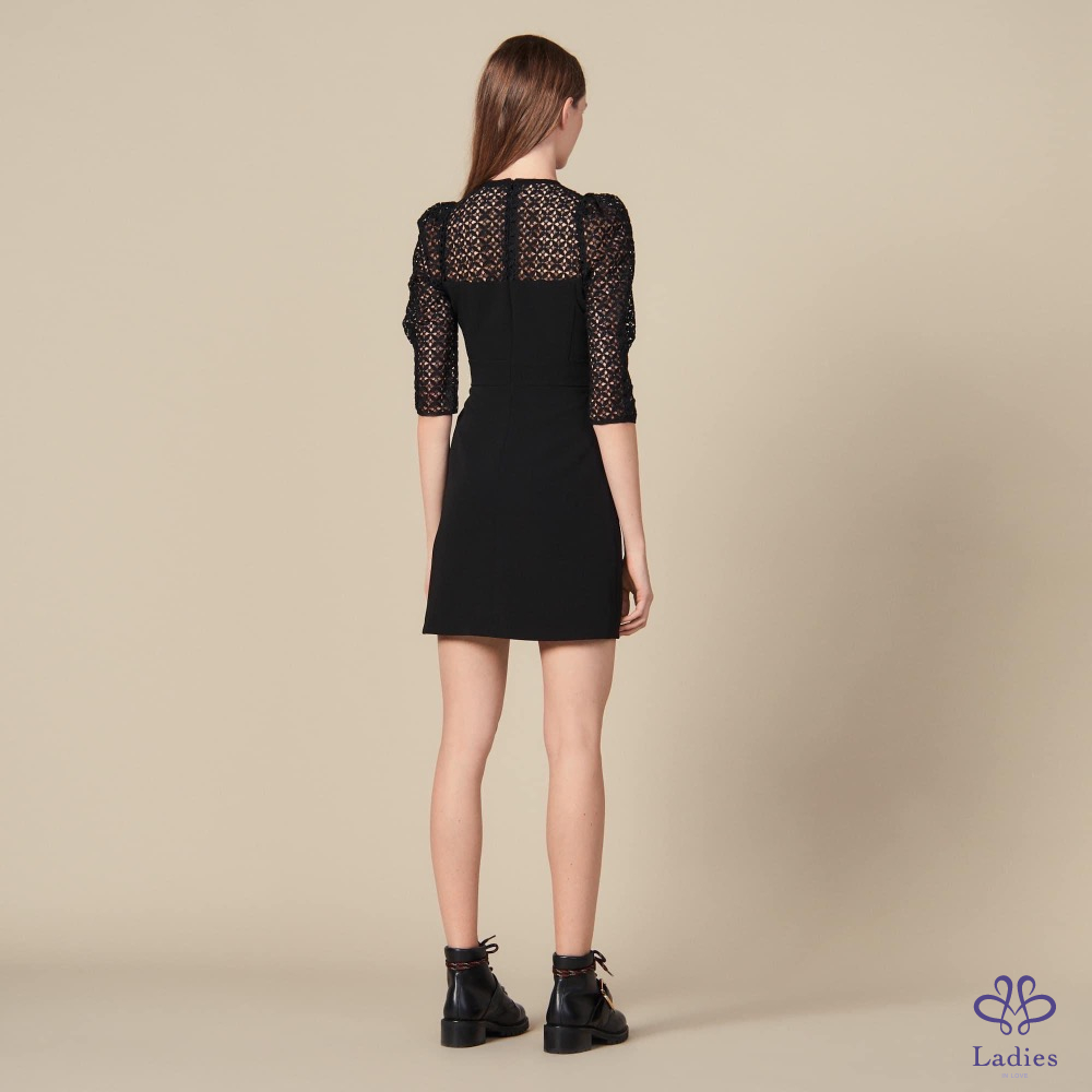 首頁 精品服飾 Sandro 泡泡袖菱格幾何簍空洋裝