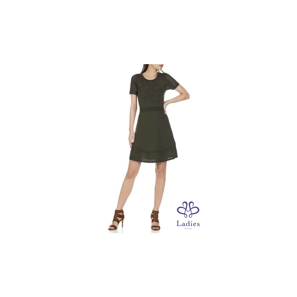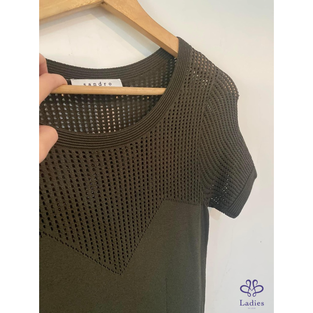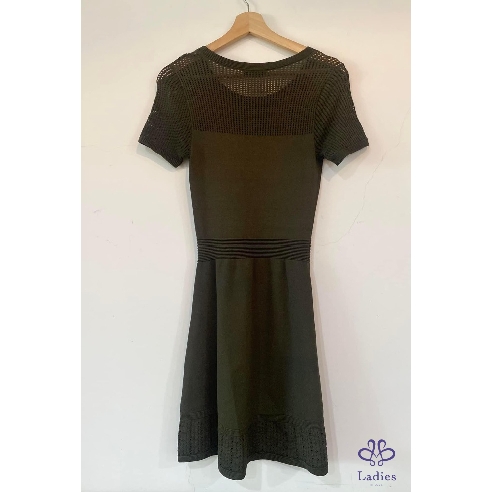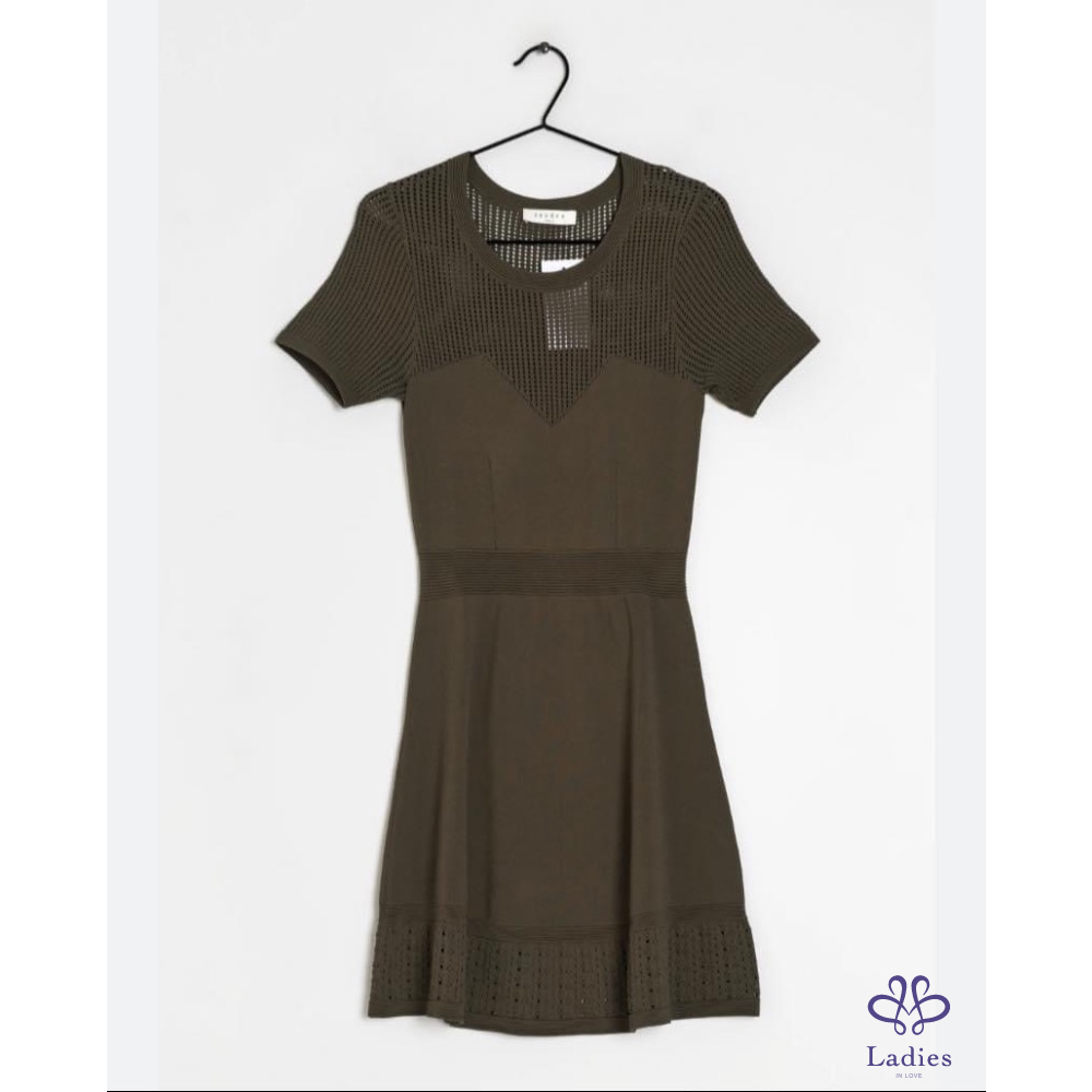 首頁 精品服飾 Sandro 軍綠透實簍空針織洋裝