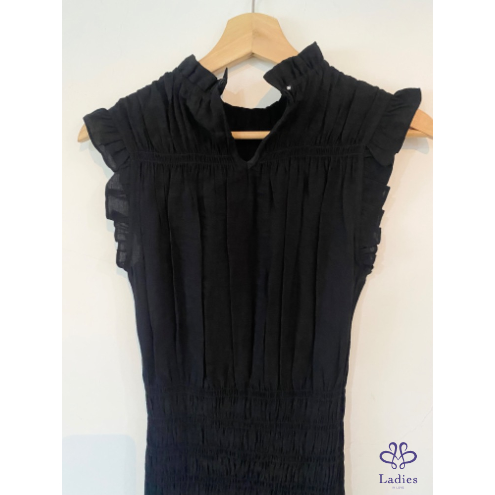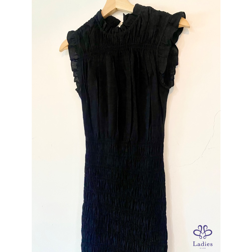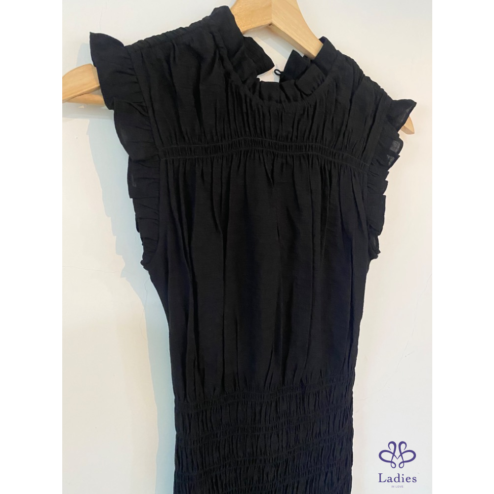首頁 精品服飾 Maje 黑色荷葉邊褶皺洋裝