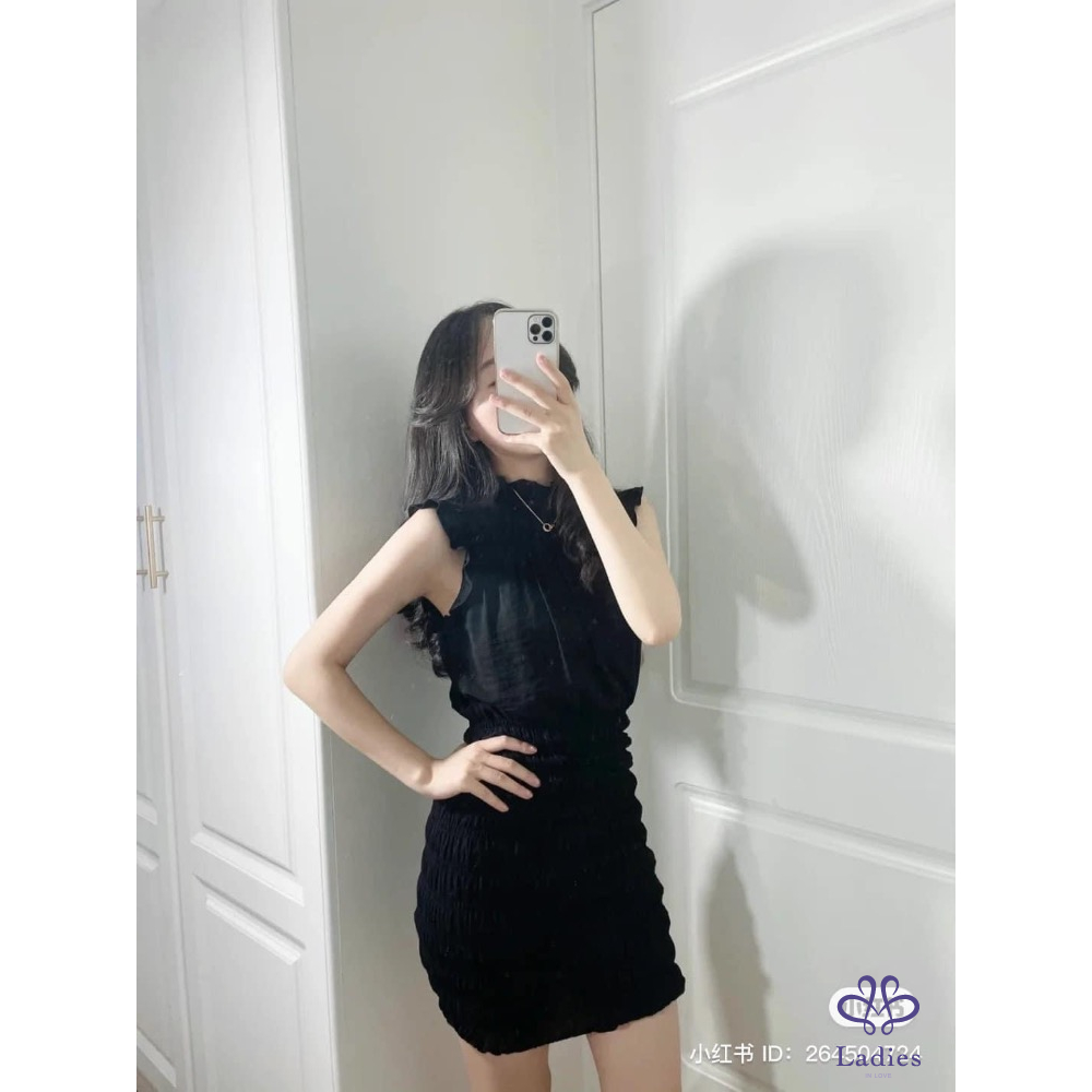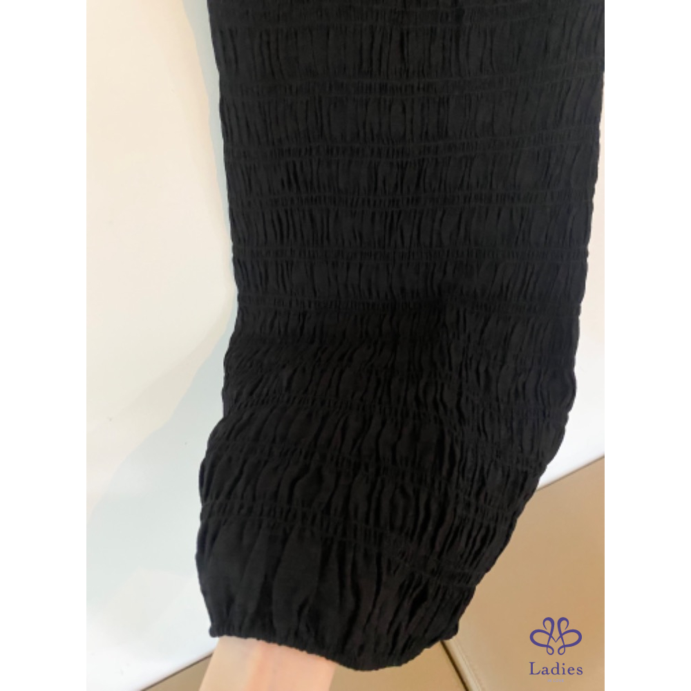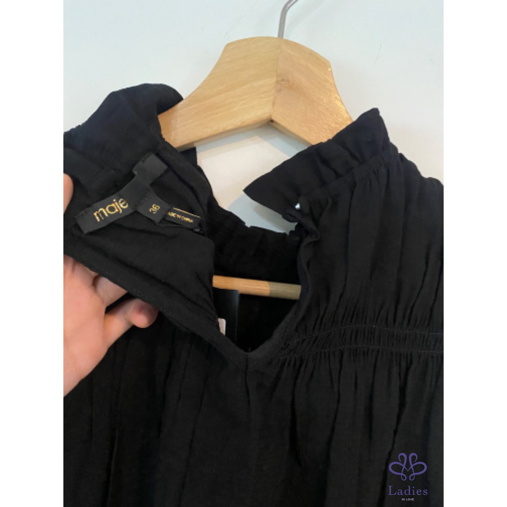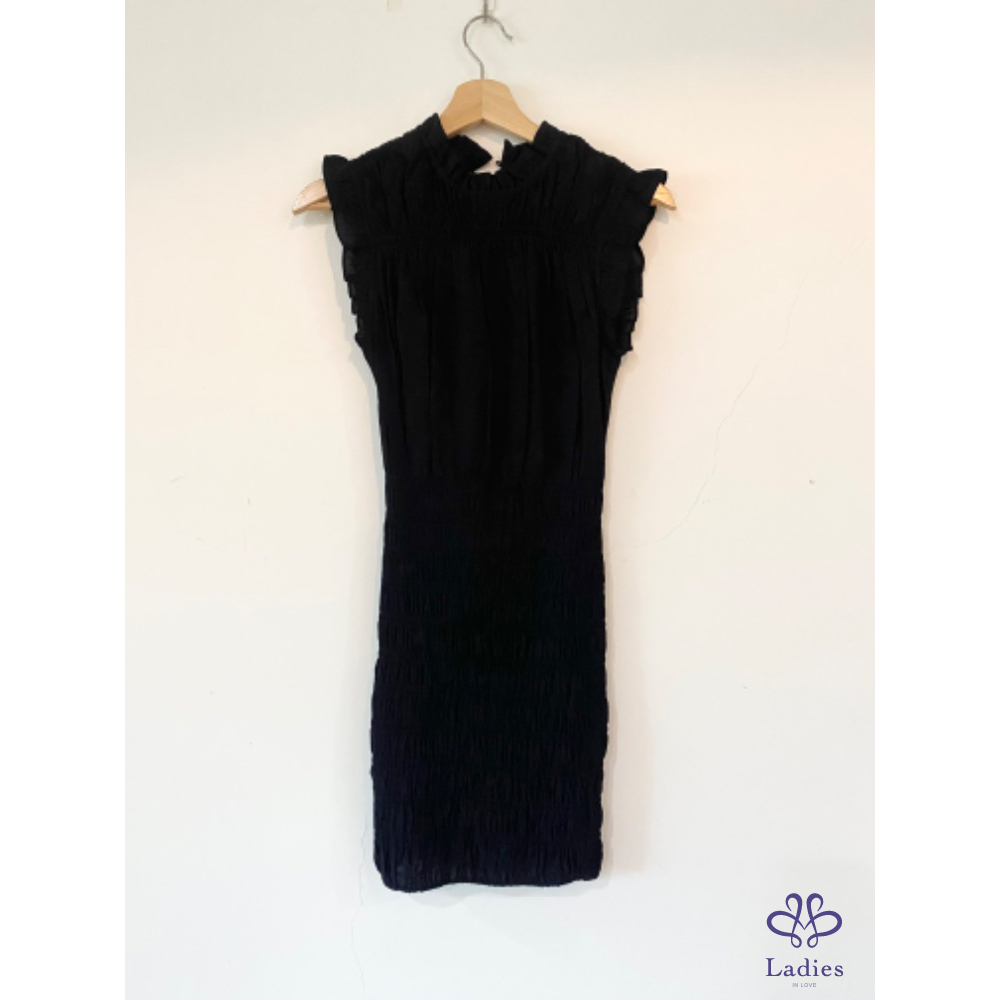 首頁 精品服飾 Maje 黑色荷葉邊褶皺洋裝