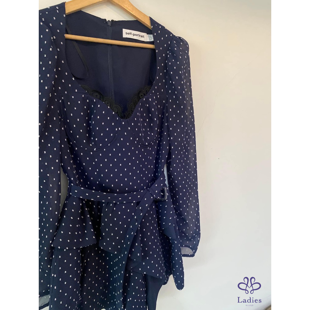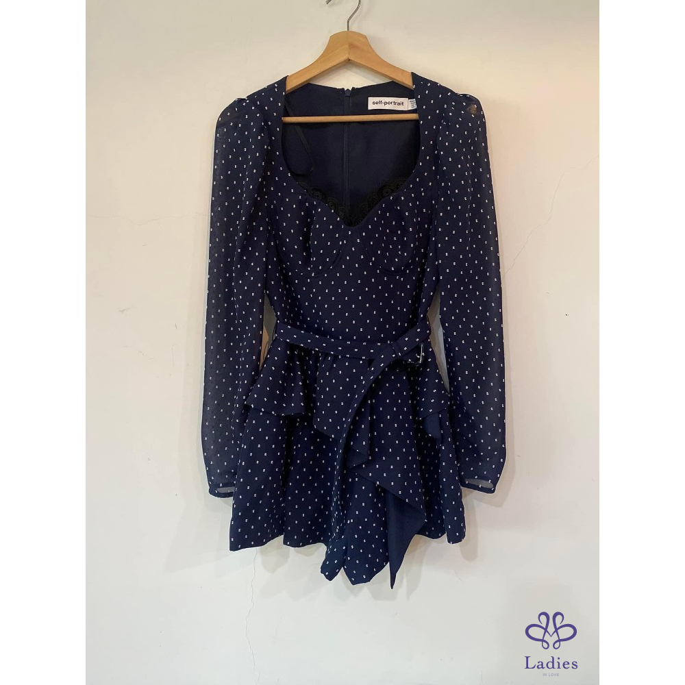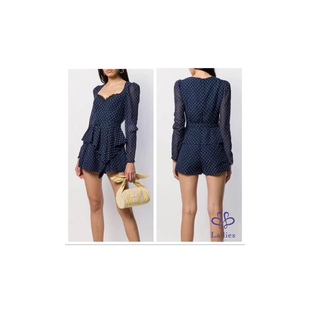 首頁 精品服飾 Self portrait桃心領深藍蕾絲點點連身褲