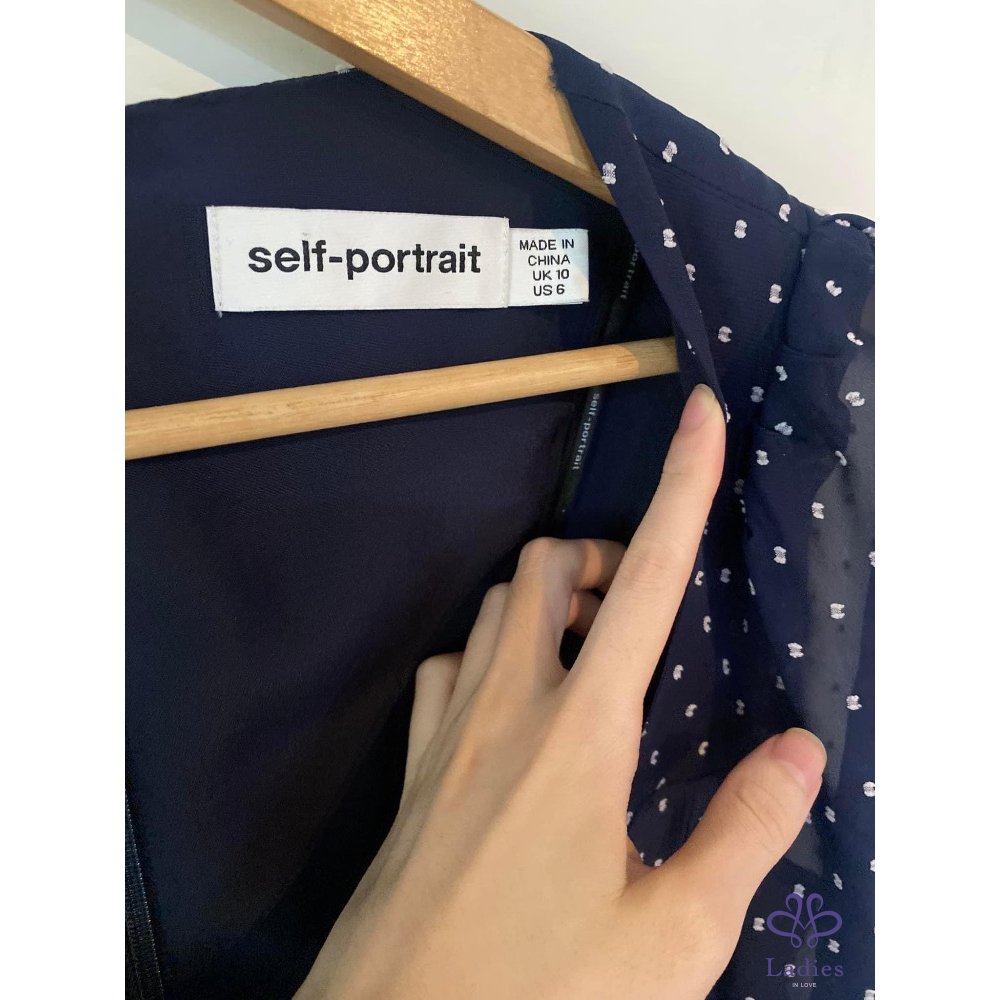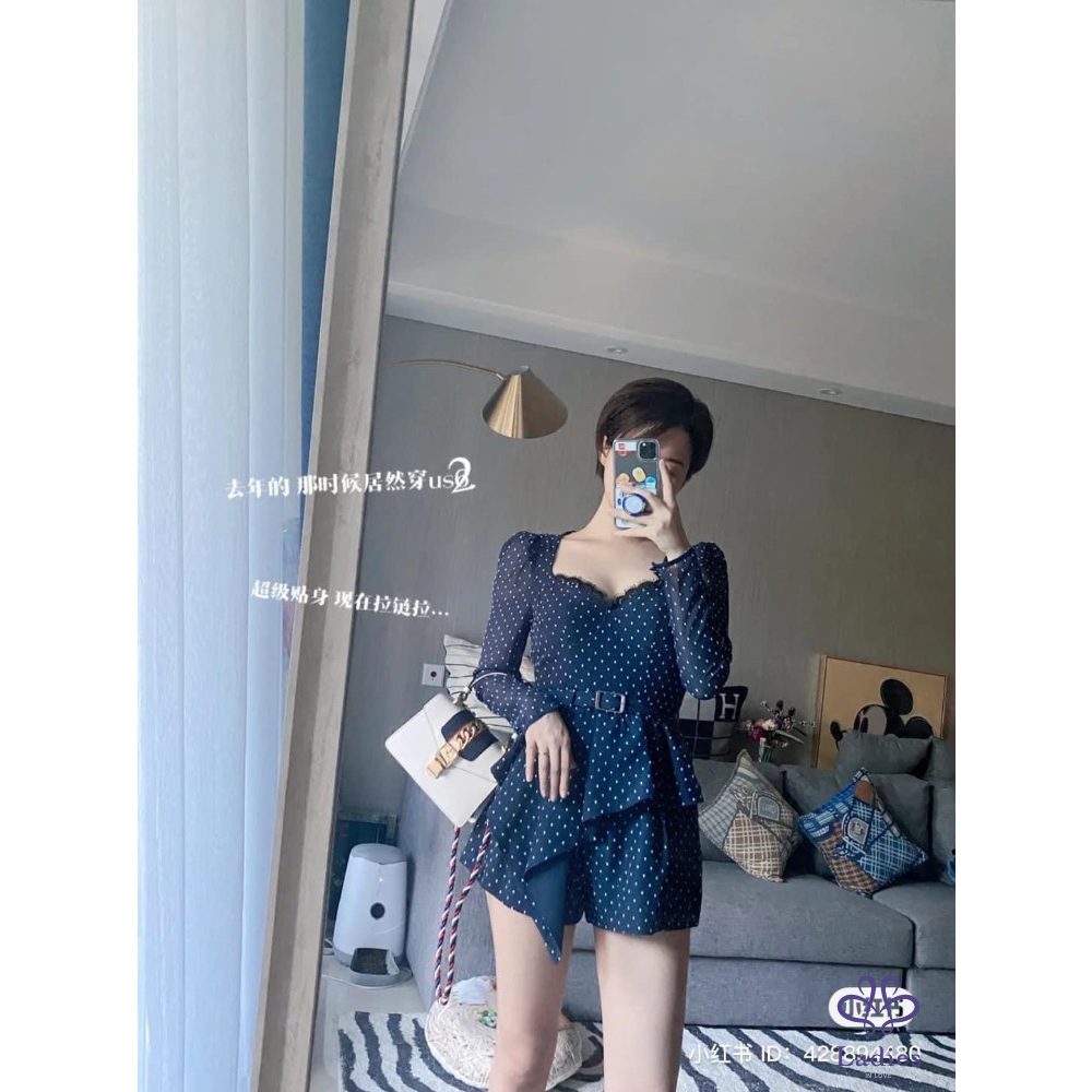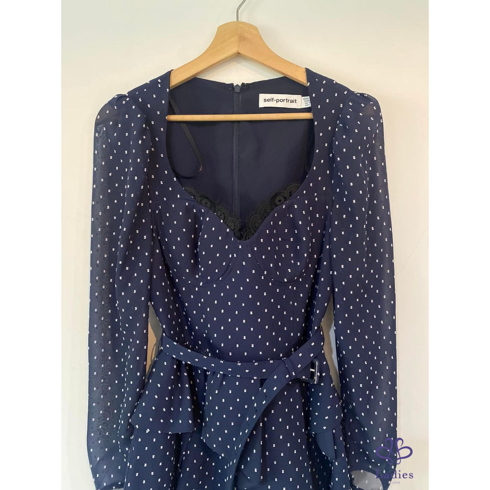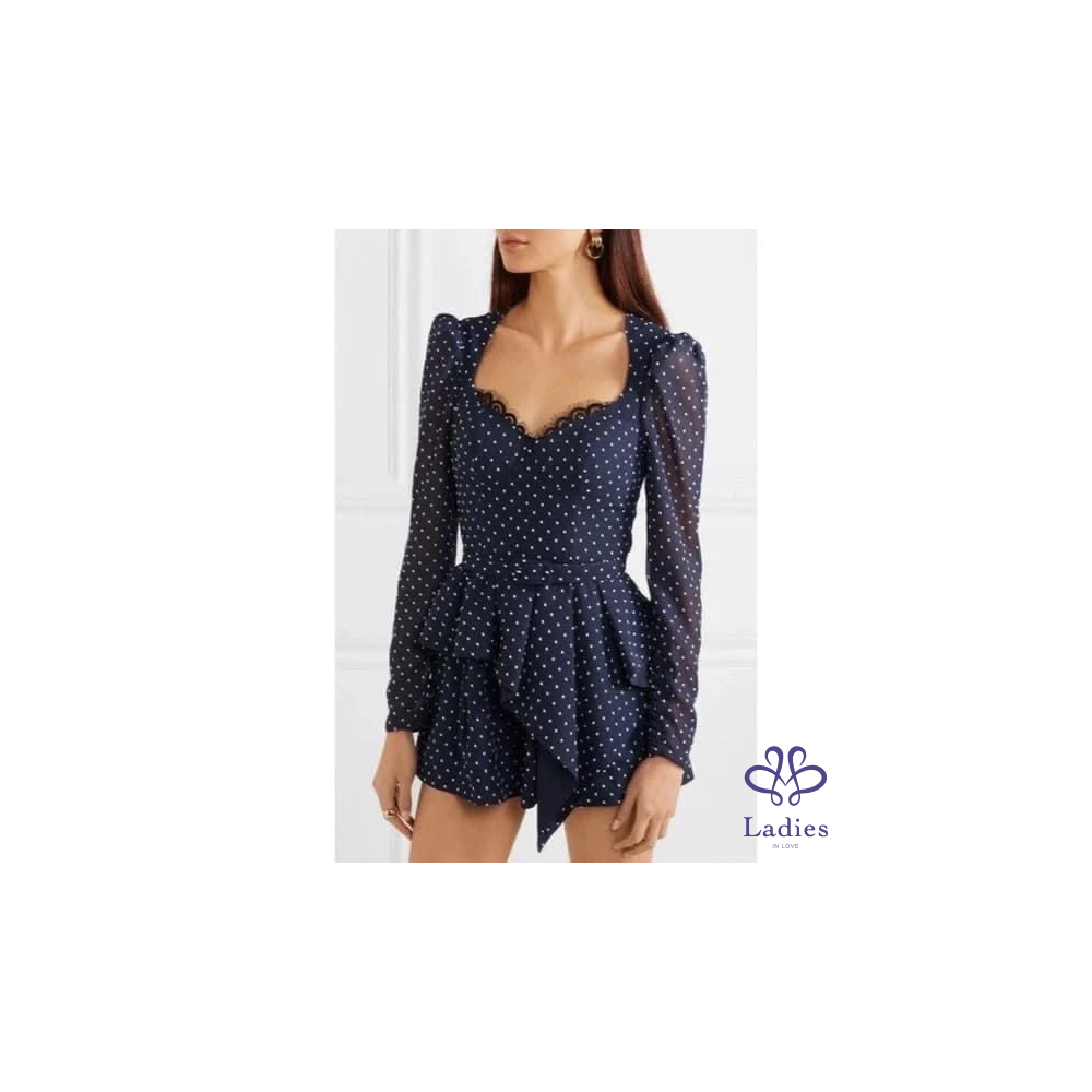 首頁 精品服飾 Self portrait桃心領深藍蕾絲點點連身褲