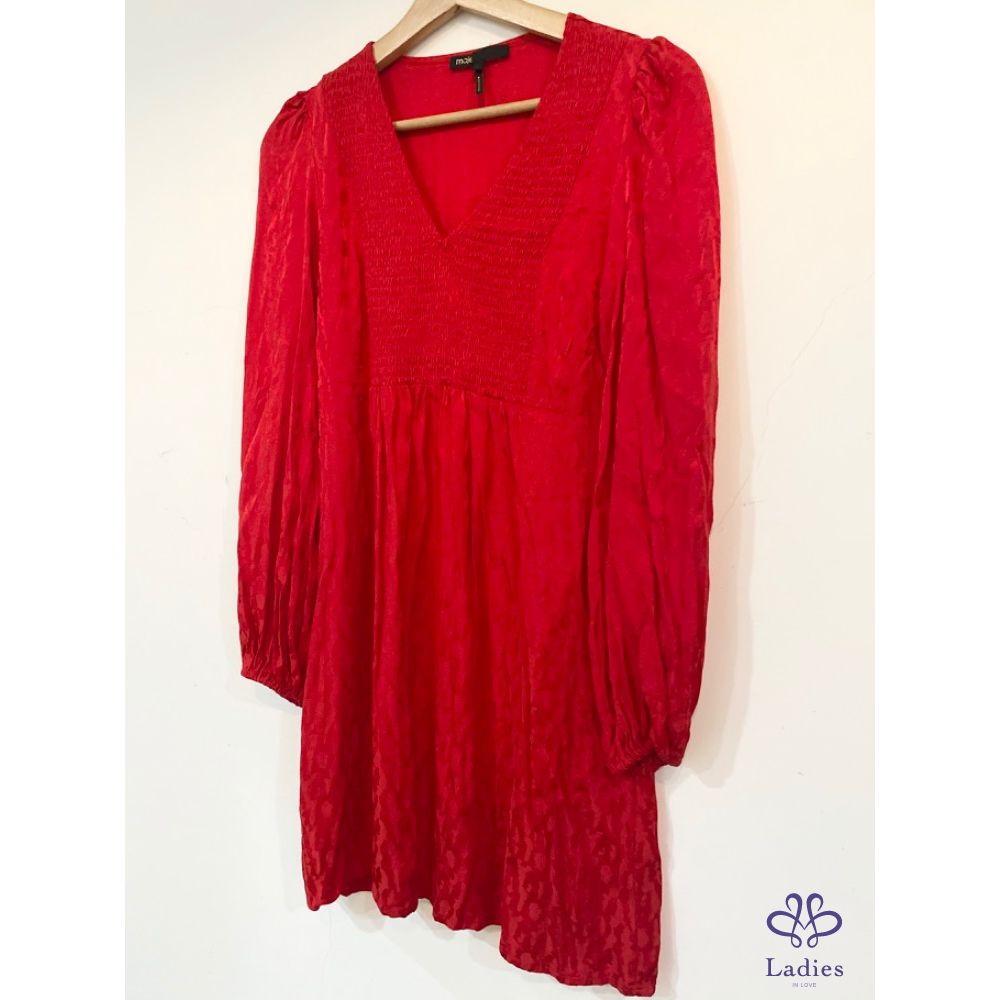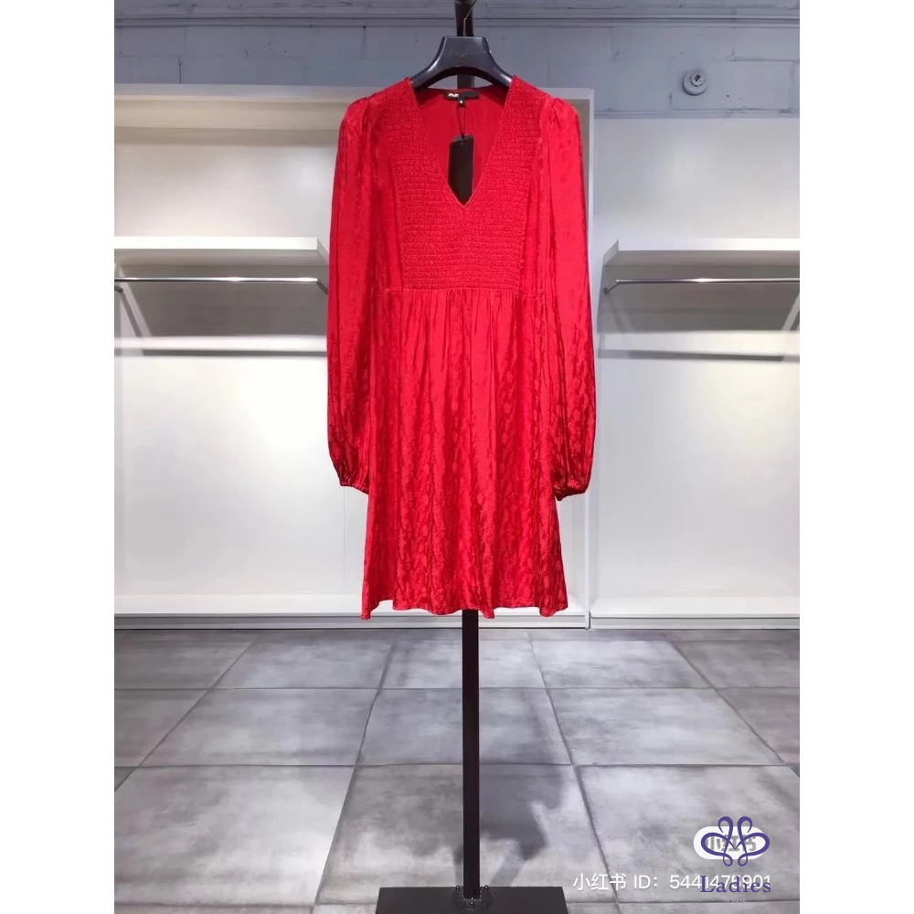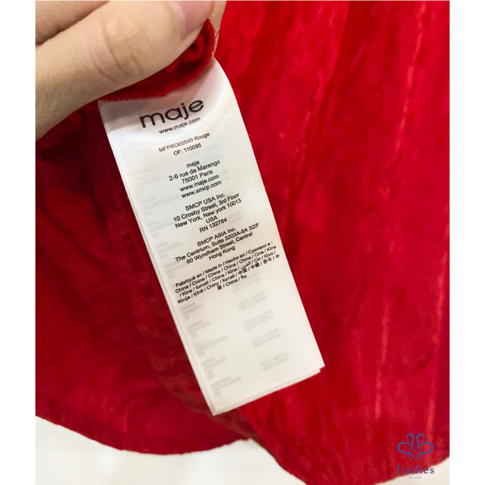 首頁 精品服飾 Maje 正紅V領暗紋公主袖垂墜洋裝