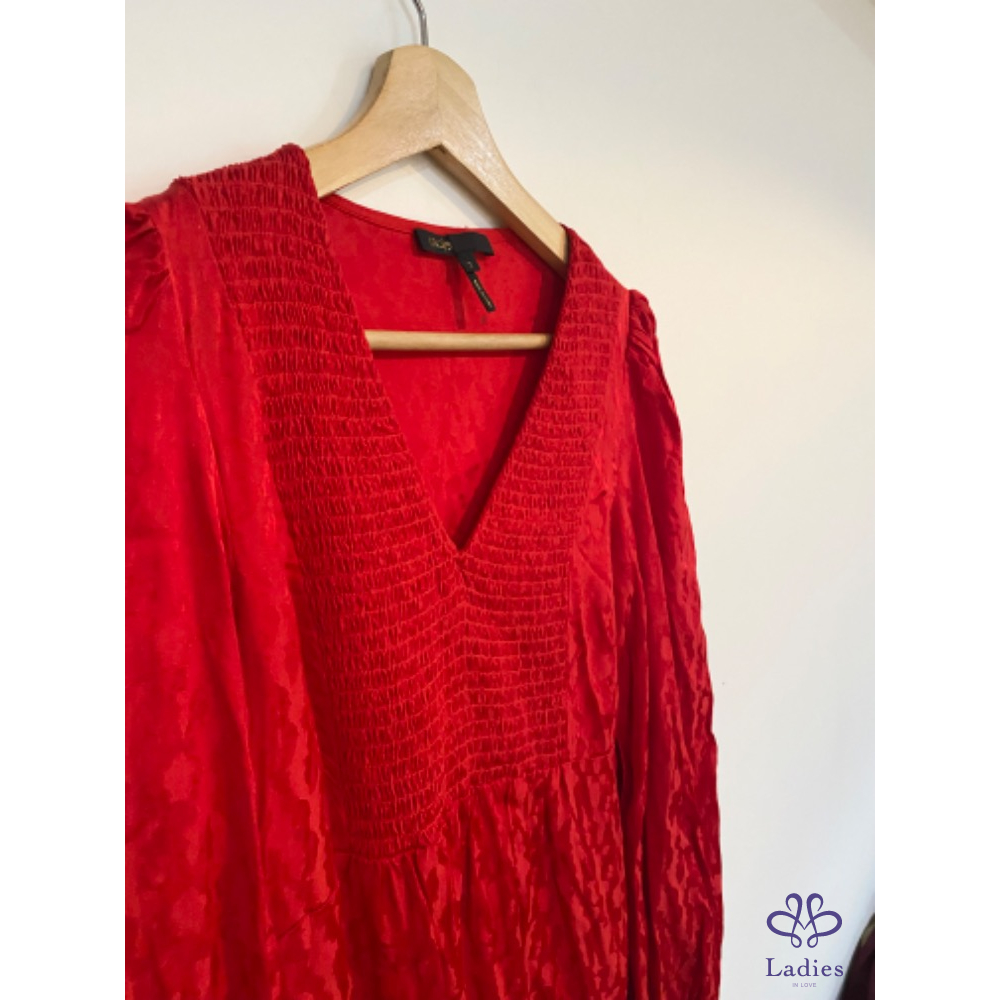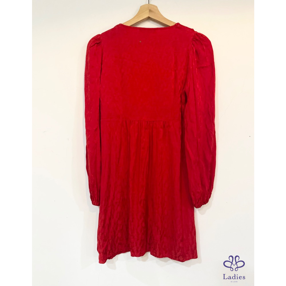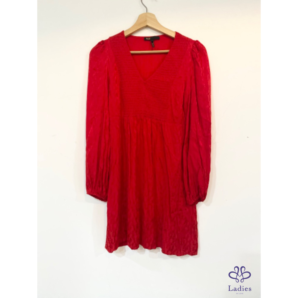 Maje 正紅V領暗紋公主袖垂墜洋裝
