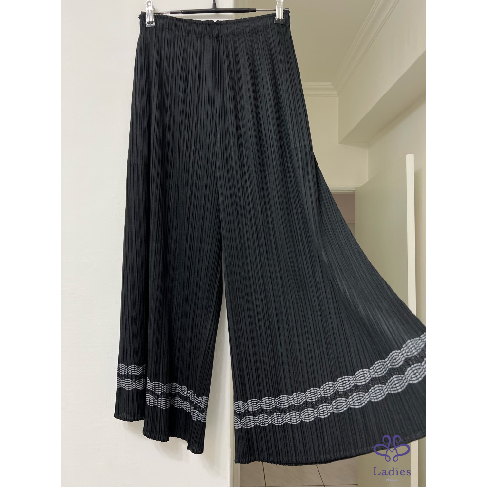 代家人售三宅一生Pleats Please黑色皺褶雷射雕花造型褲,經典款,好看不可缺的單品,