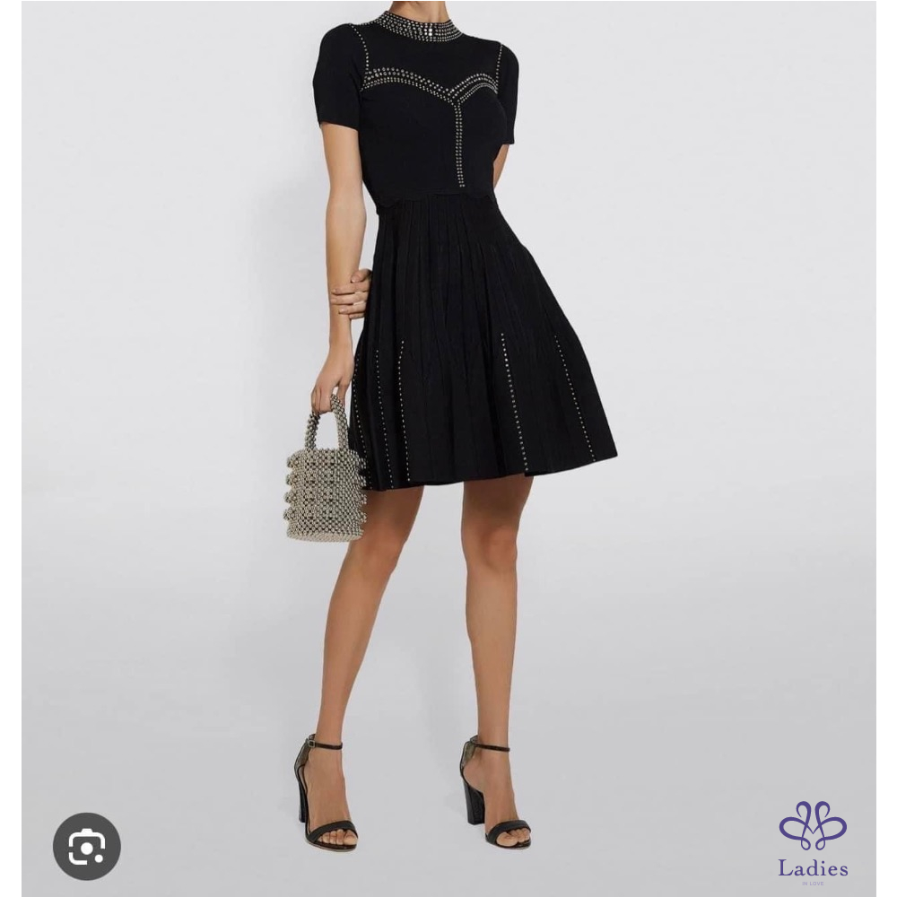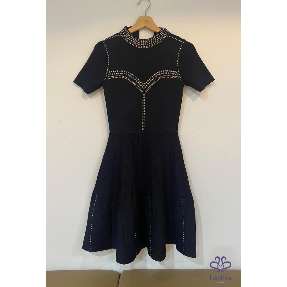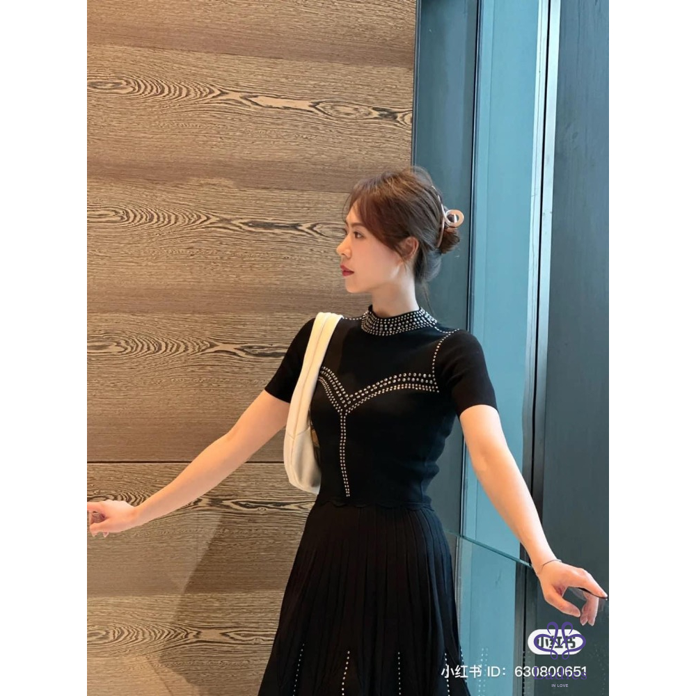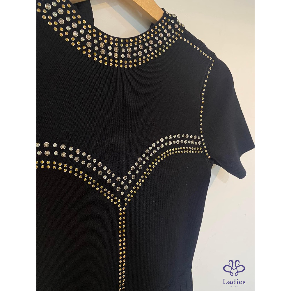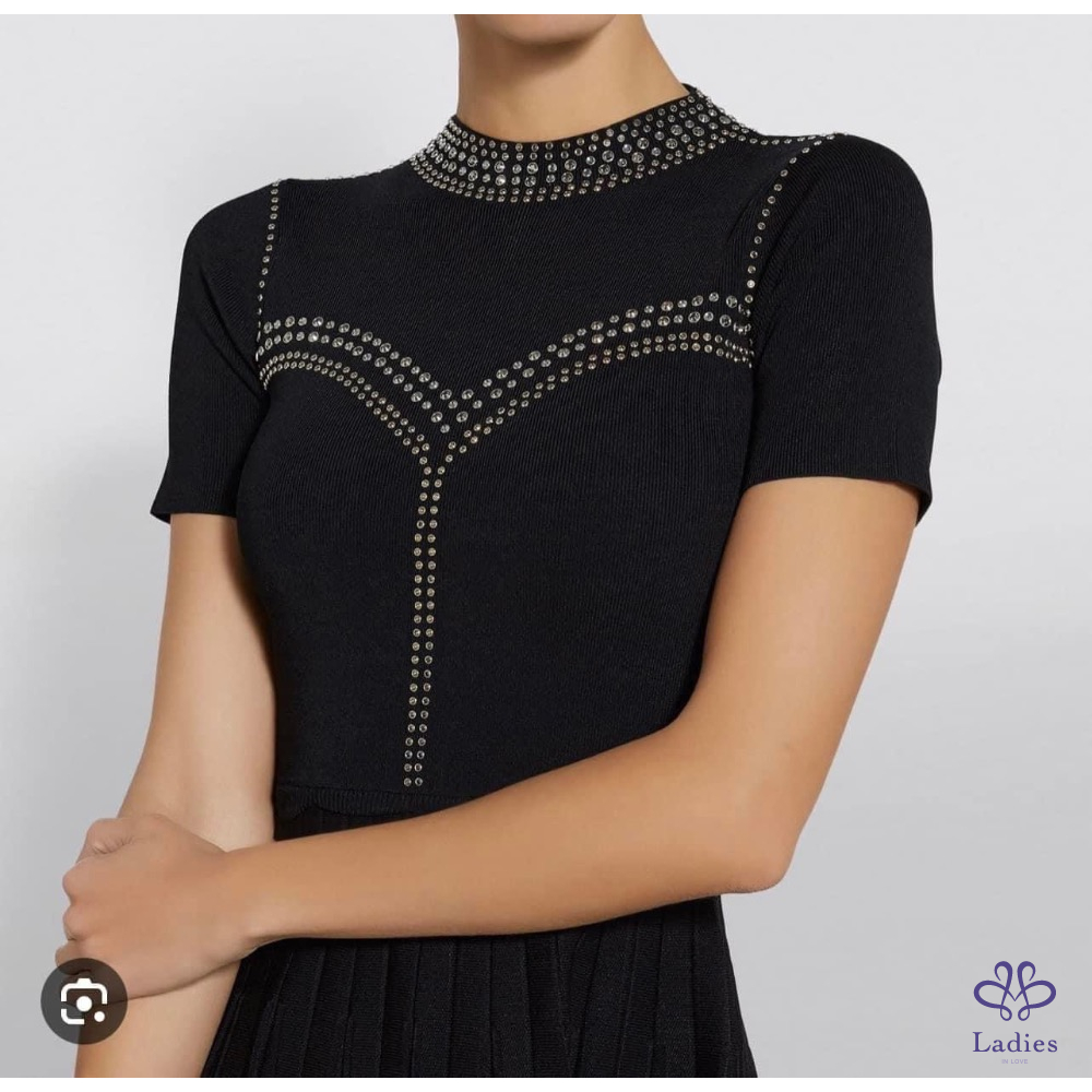 首頁 精品服飾 Sandro 黃白寶石綴飾重磅褶皺針織洋裝