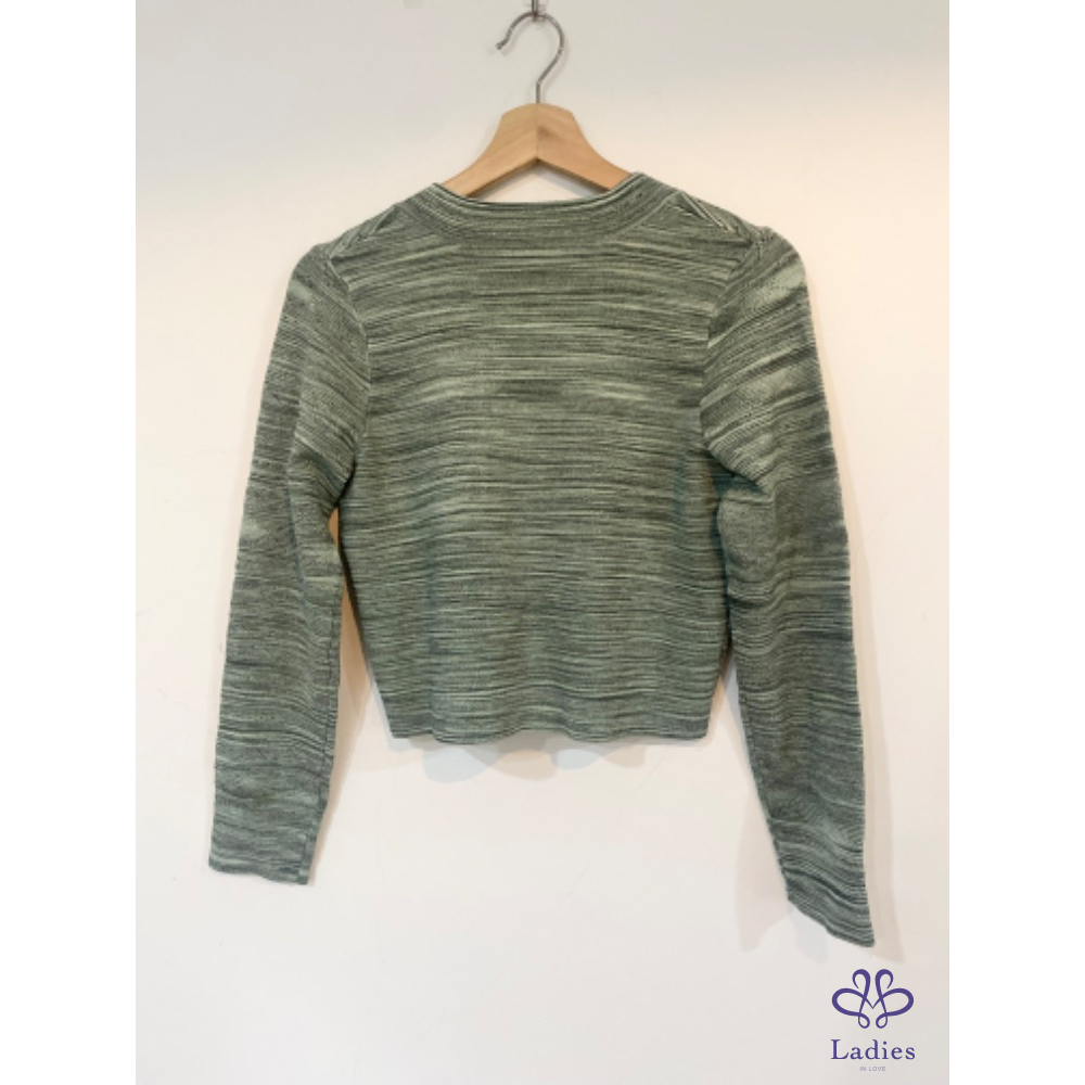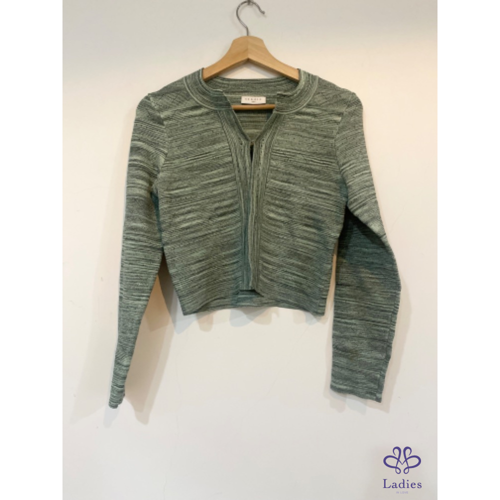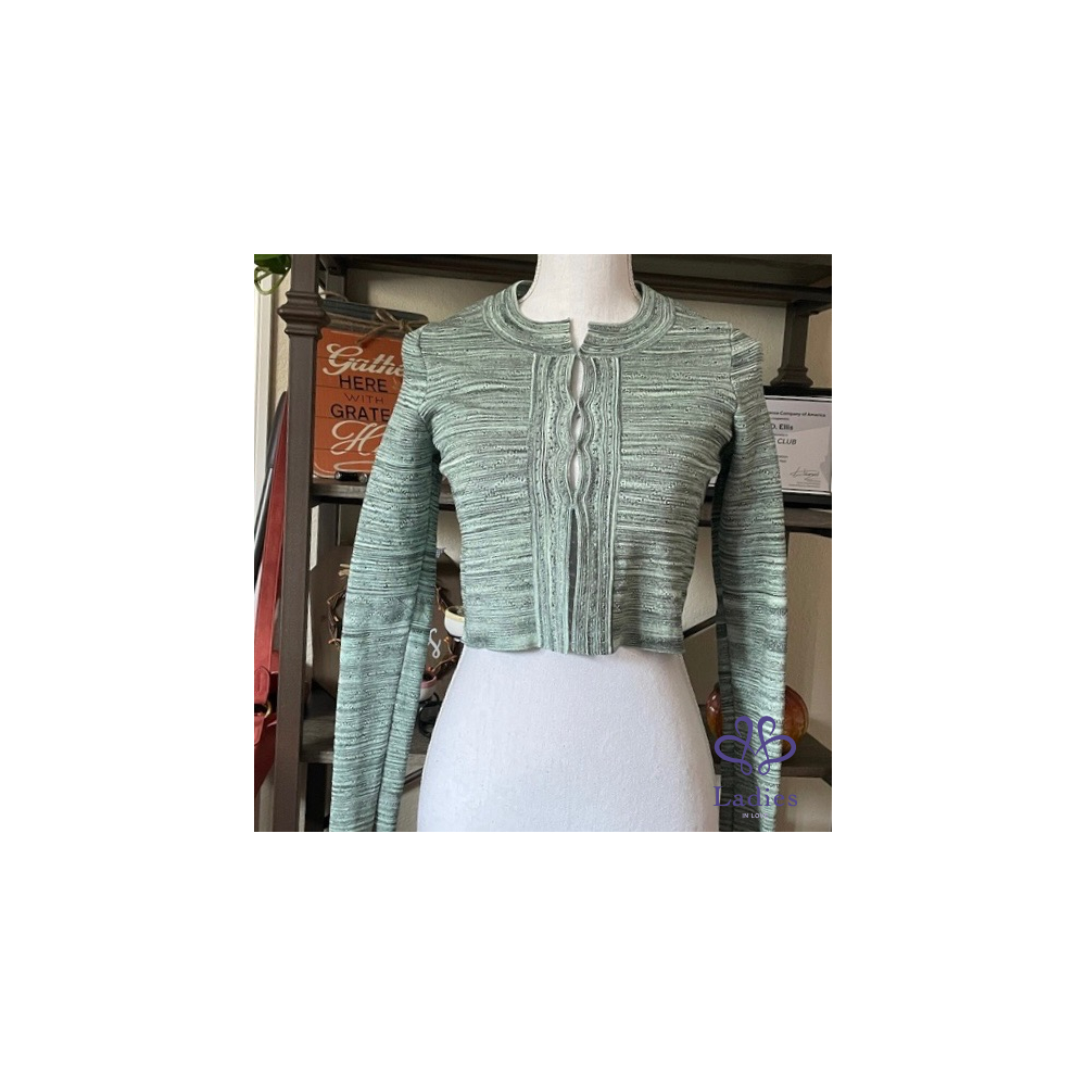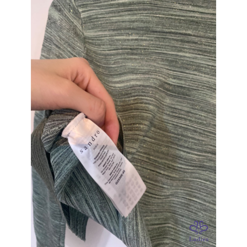 Sandro 仙女綠閃亮亮幾何簍空高密度針織外套
