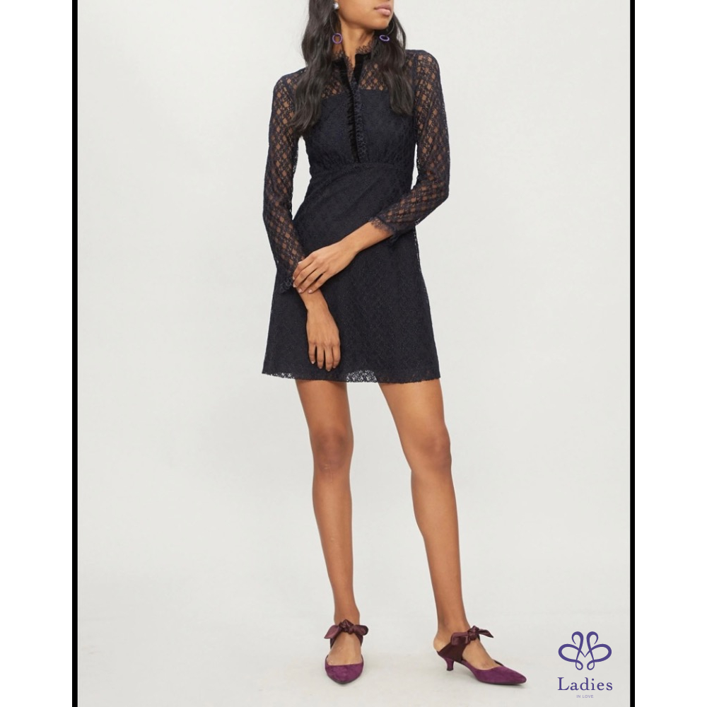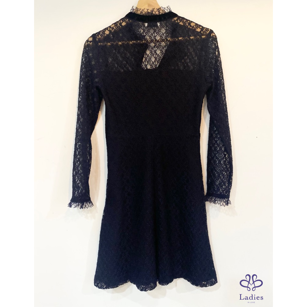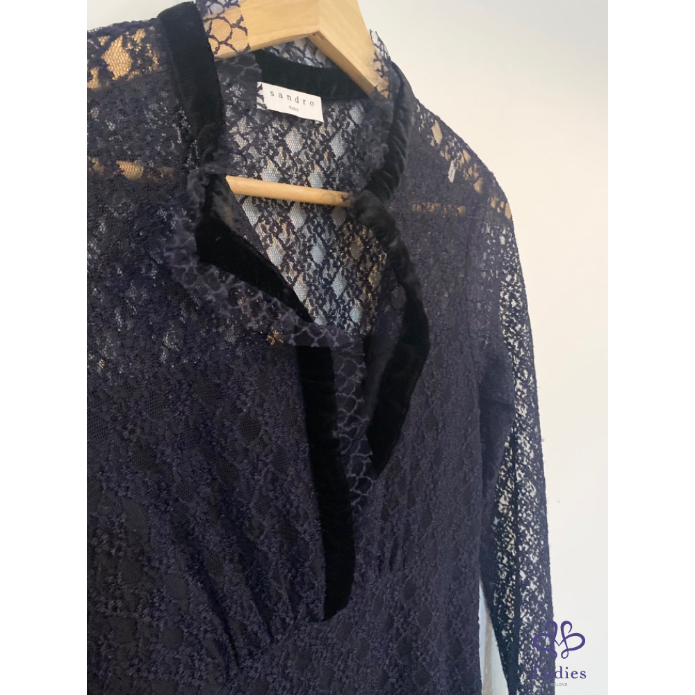Sandro 黑色絲絨網紗燒花蕾絲蕾絲洋裝