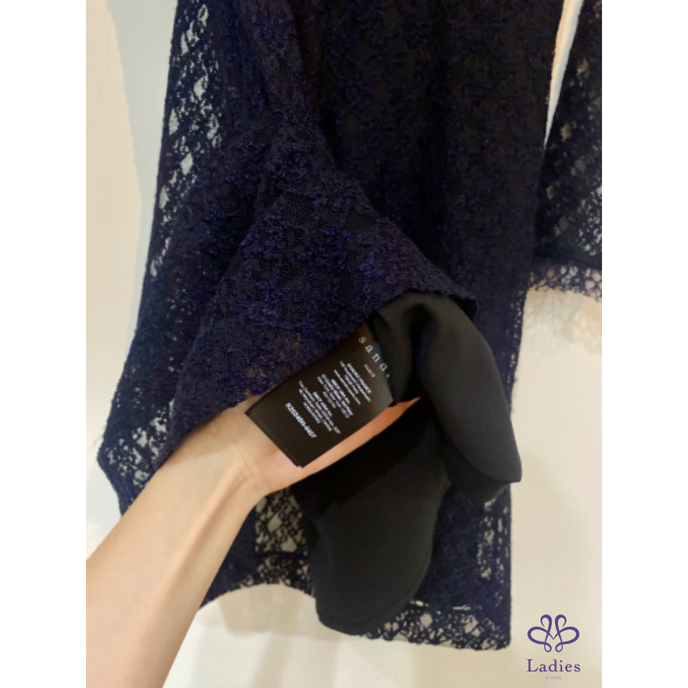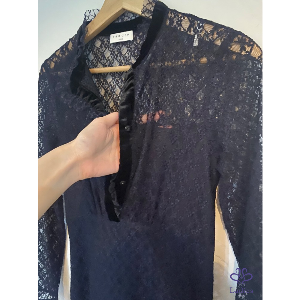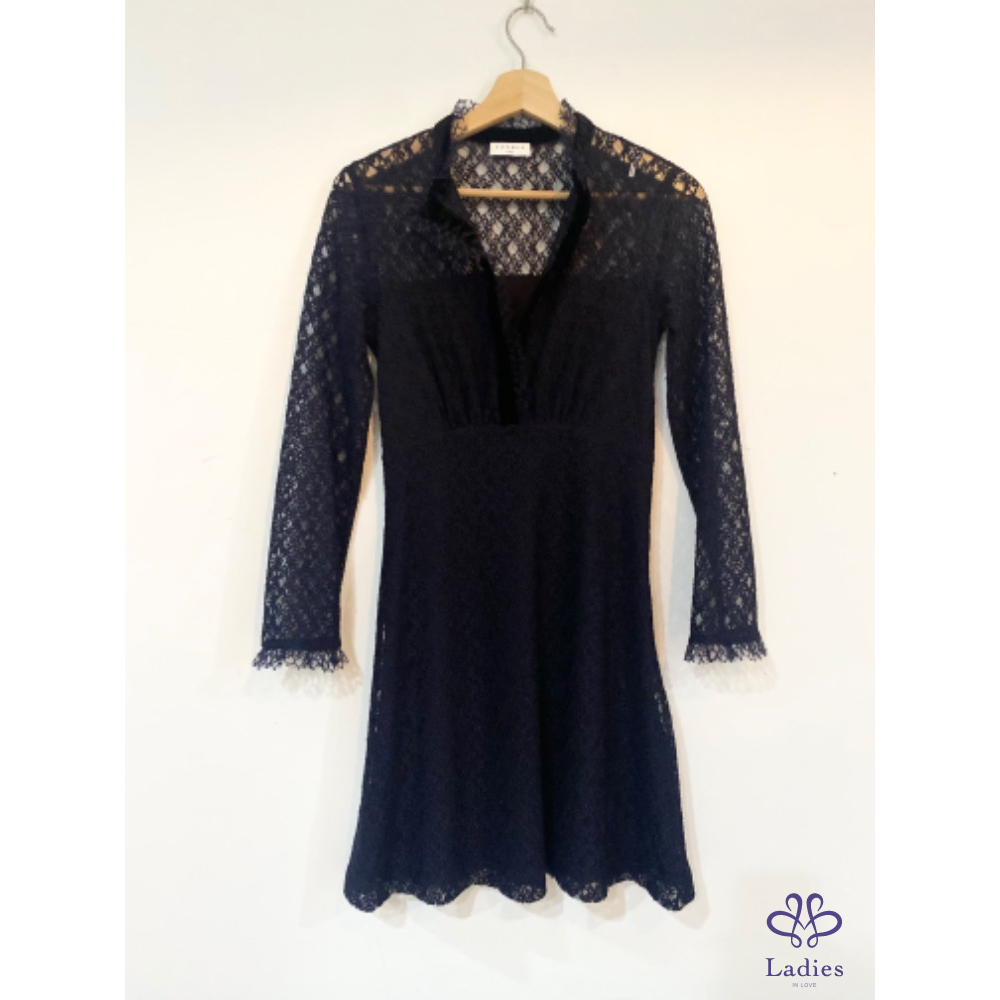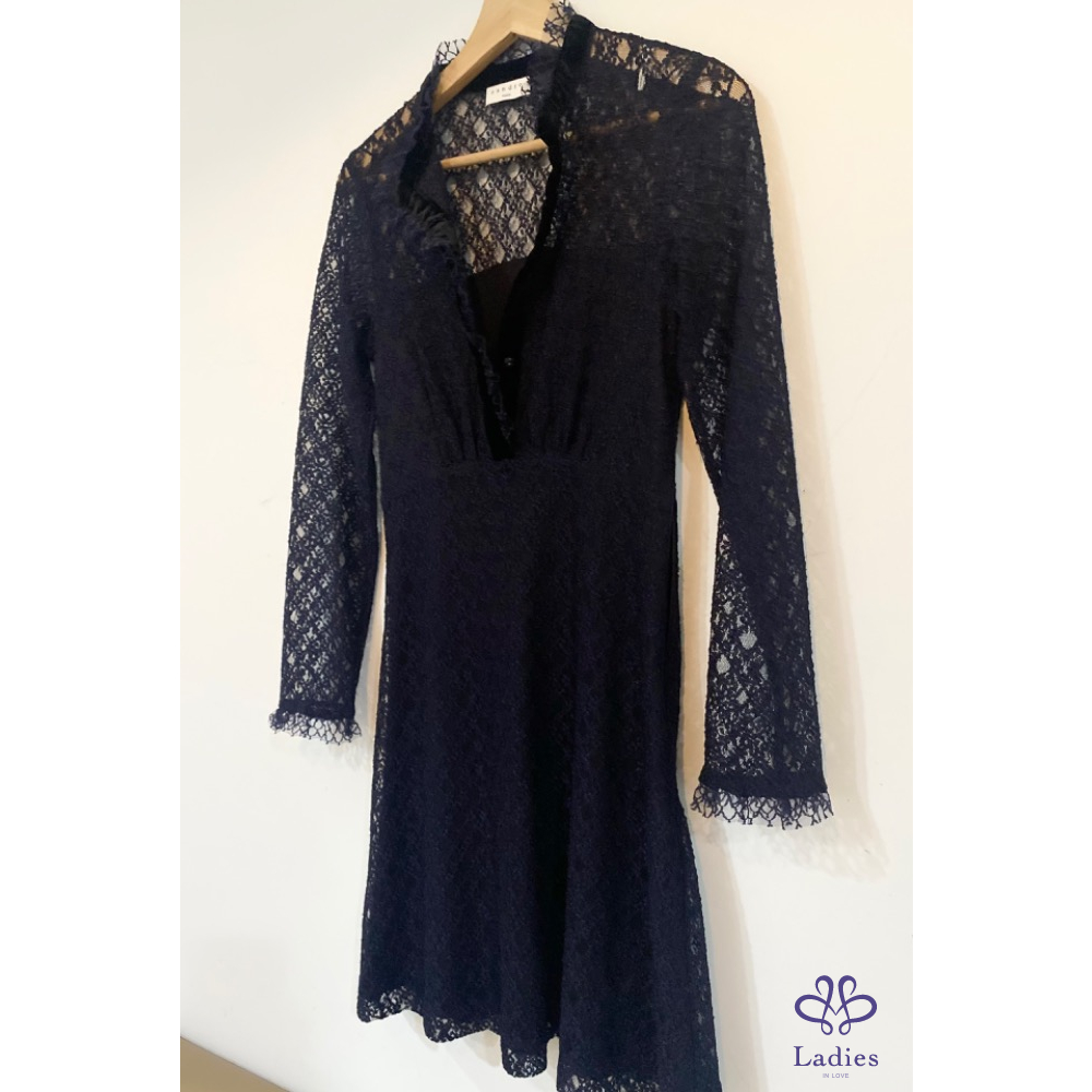 Sandro 黑色絲絨網紗燒花蕾絲蕾絲洋裝