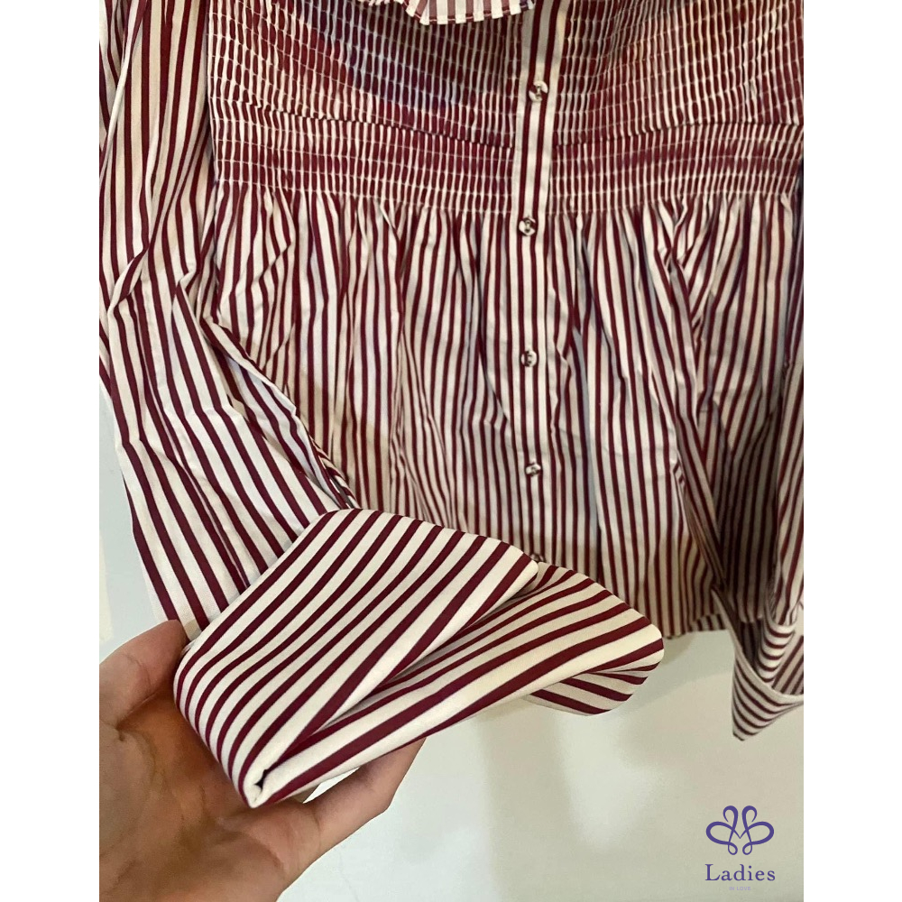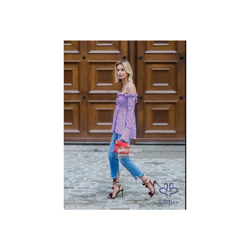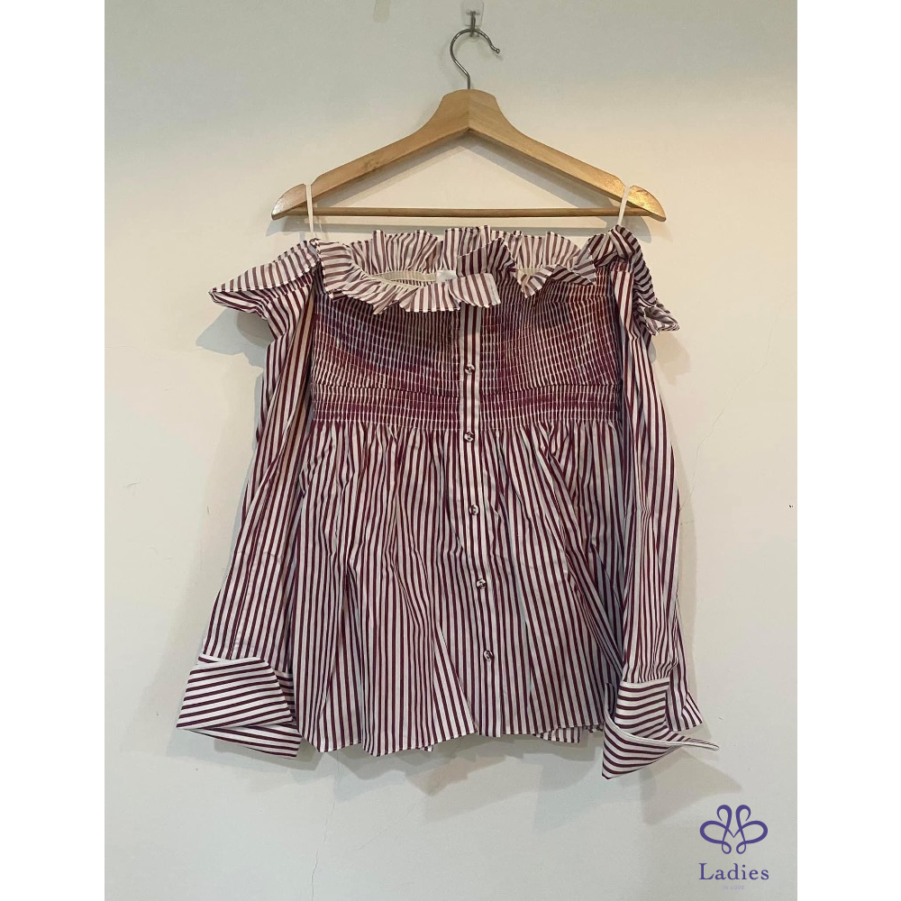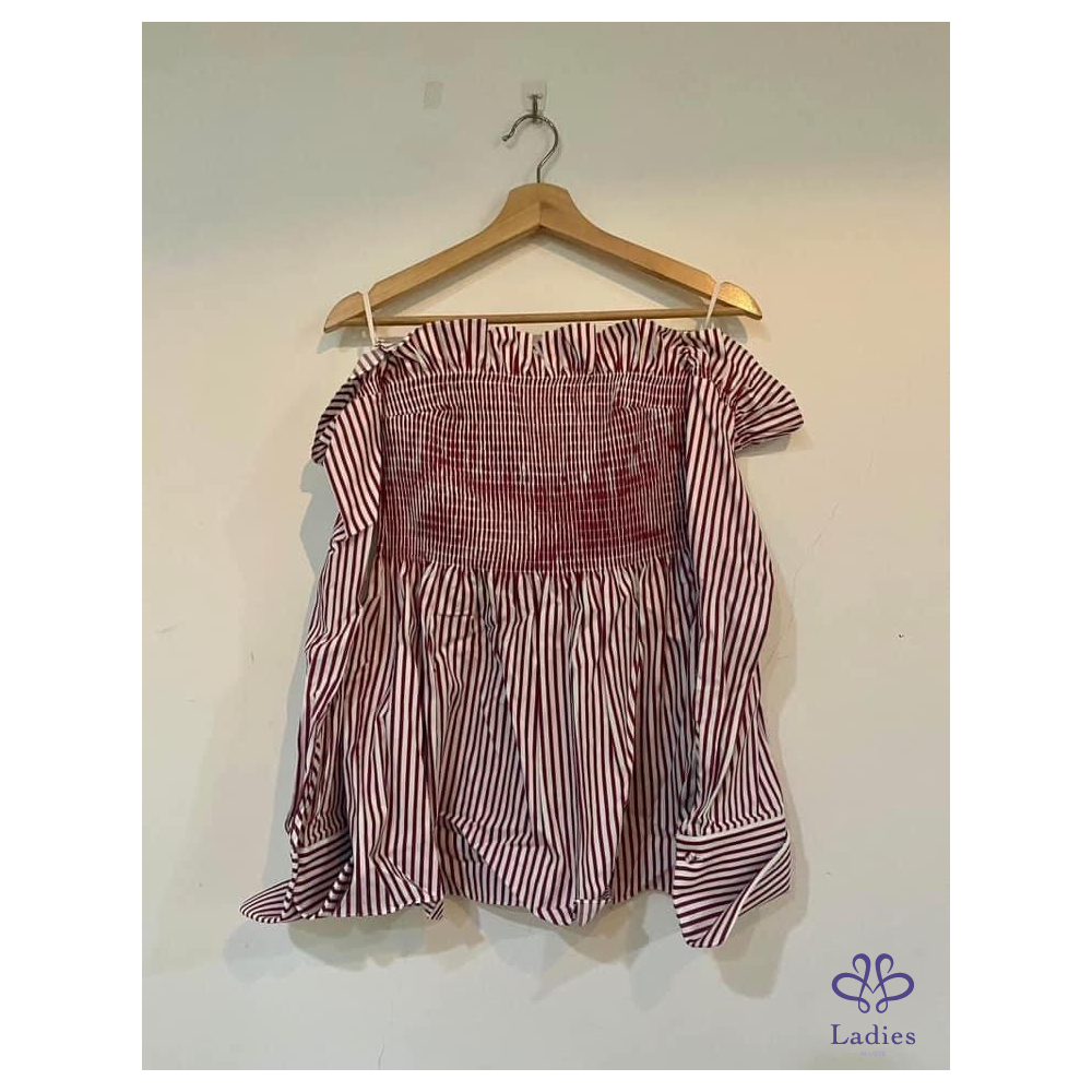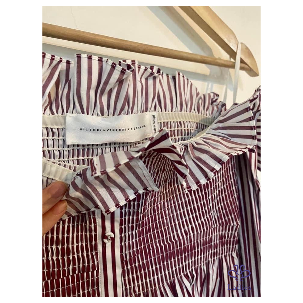Victoria Beckham 設計感紅白條紋露肩上衣