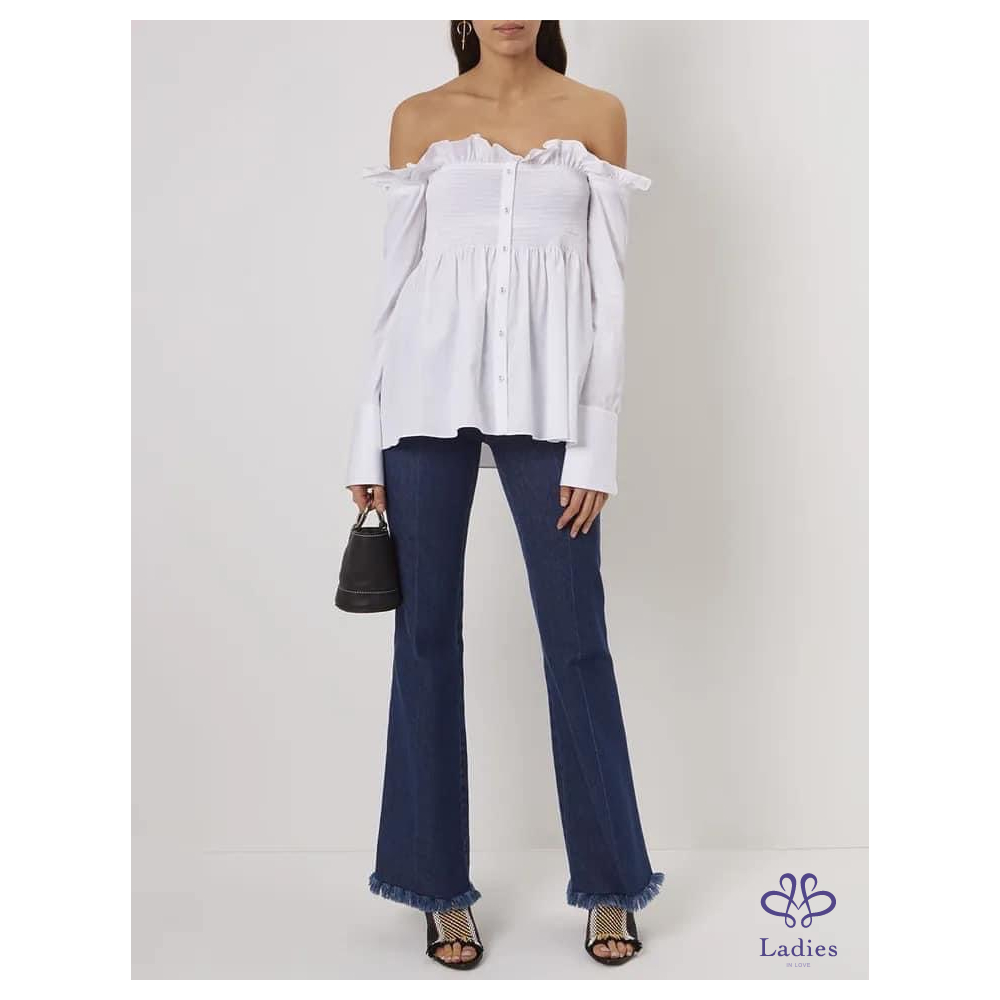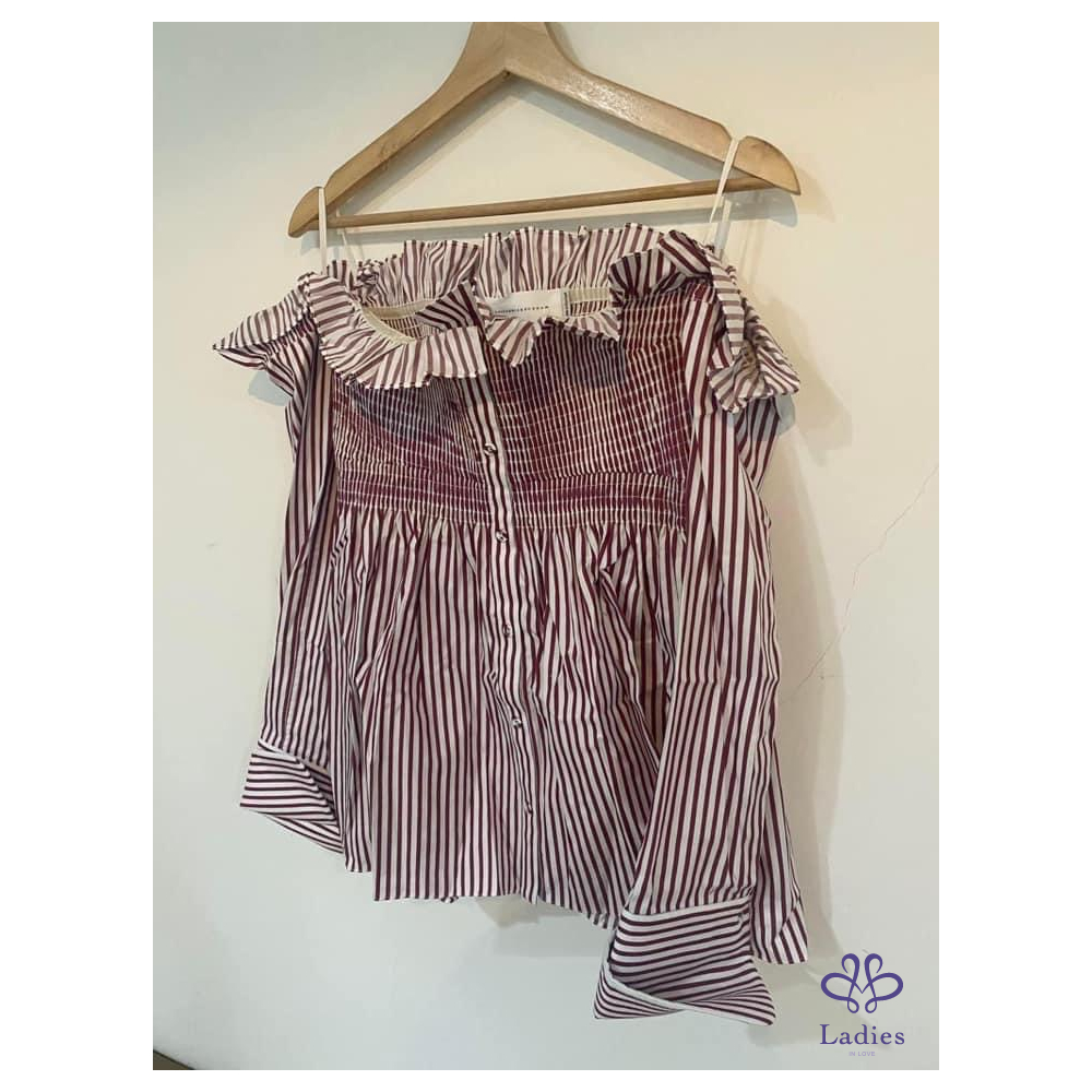 首頁 精品服飾 Victoria Beckham 設計感紅白條紋露肩上衣