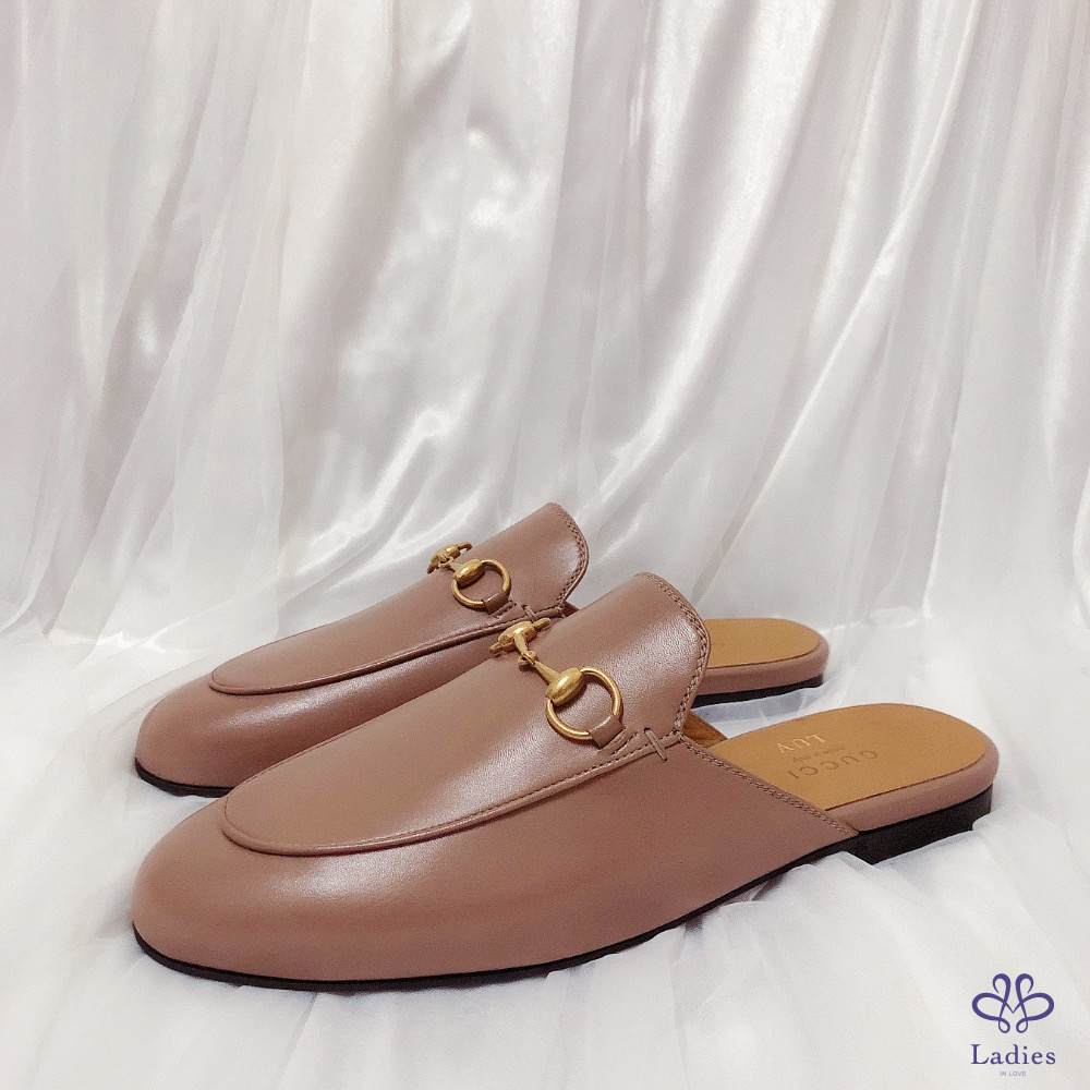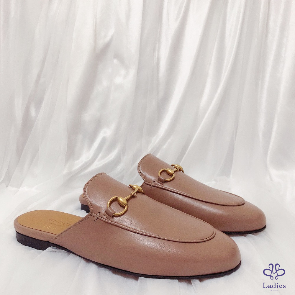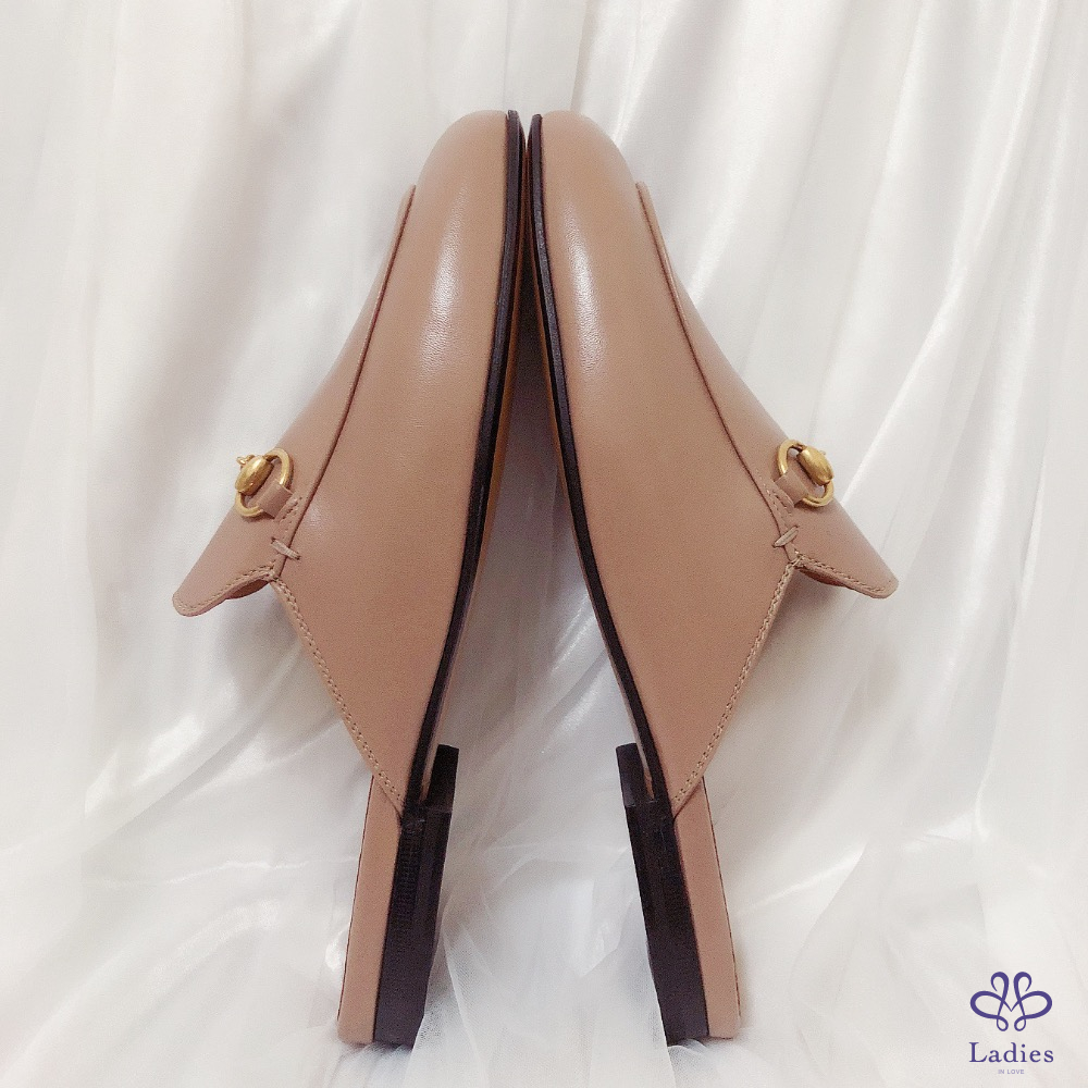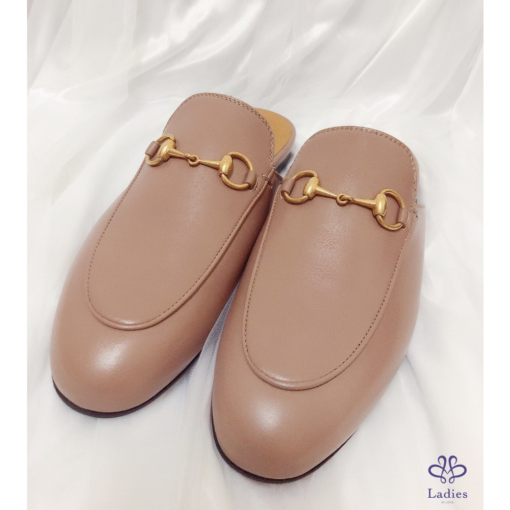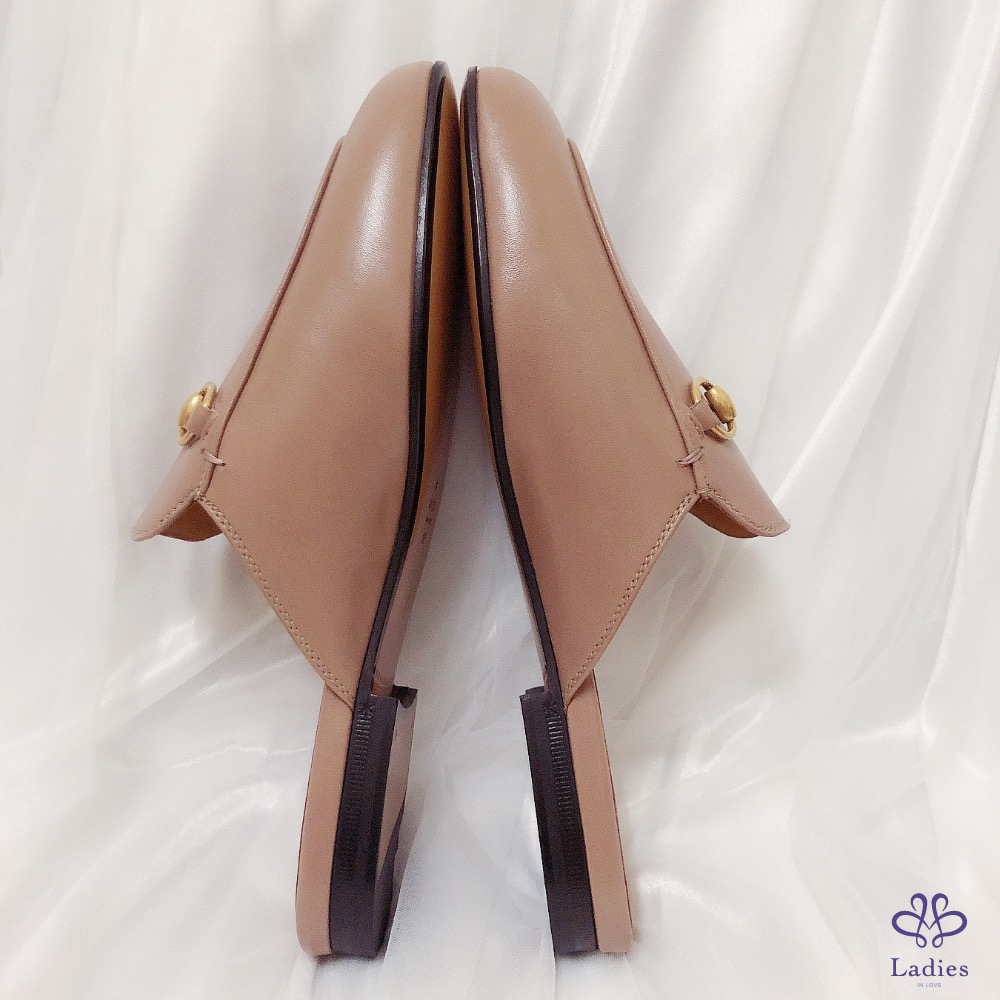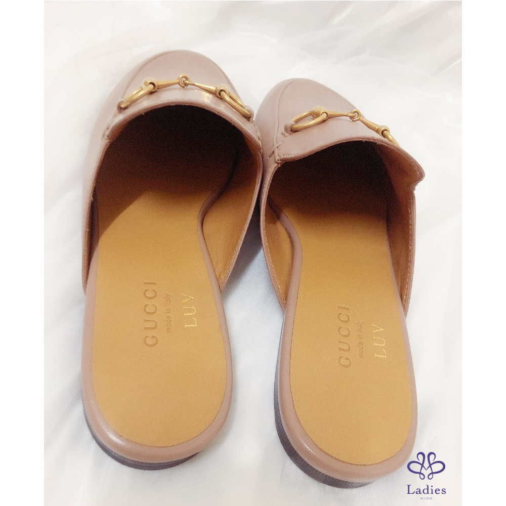 Gucci 古馳 訂製款 經典 奶茶色牛皮 復古金扣 1955馬銜扣 穆勒 拖鞋 37號 全新✨