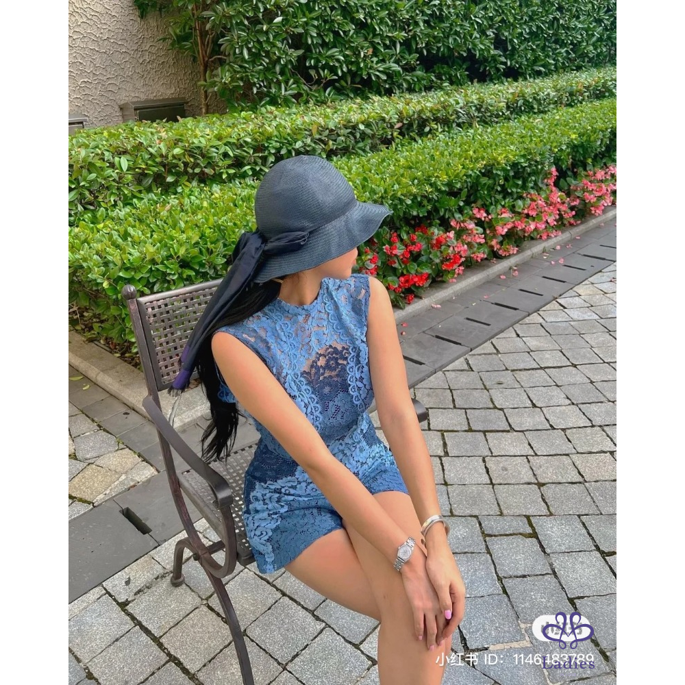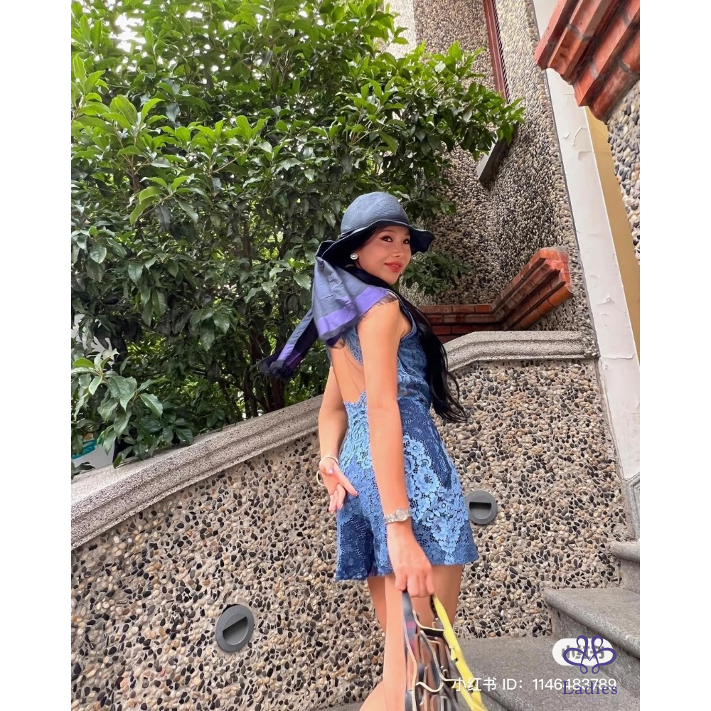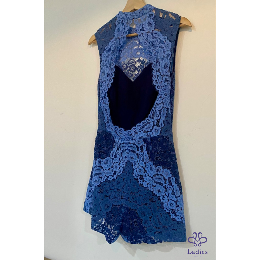 Sandro 漸層藍睫毛蕾絲美背連身褲