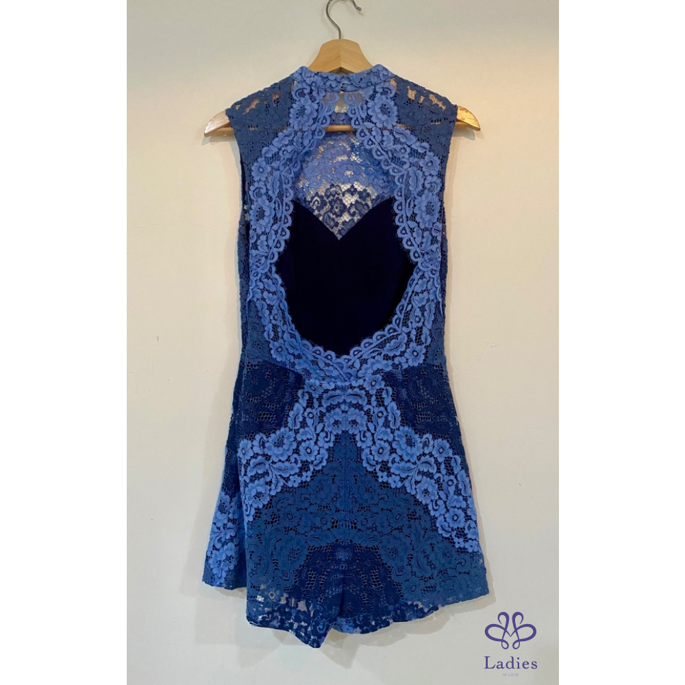 首頁 精品服飾 Sandro 漸層藍睫毛蕾絲美背連身褲