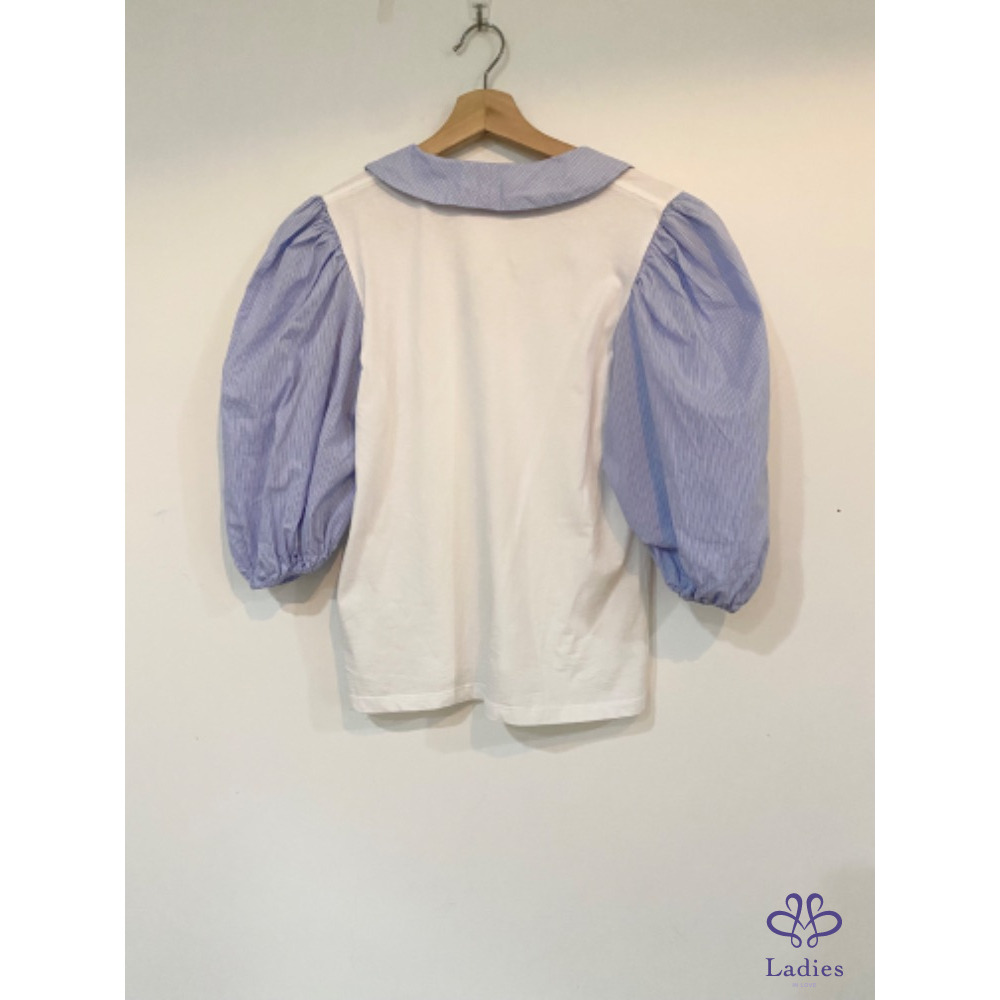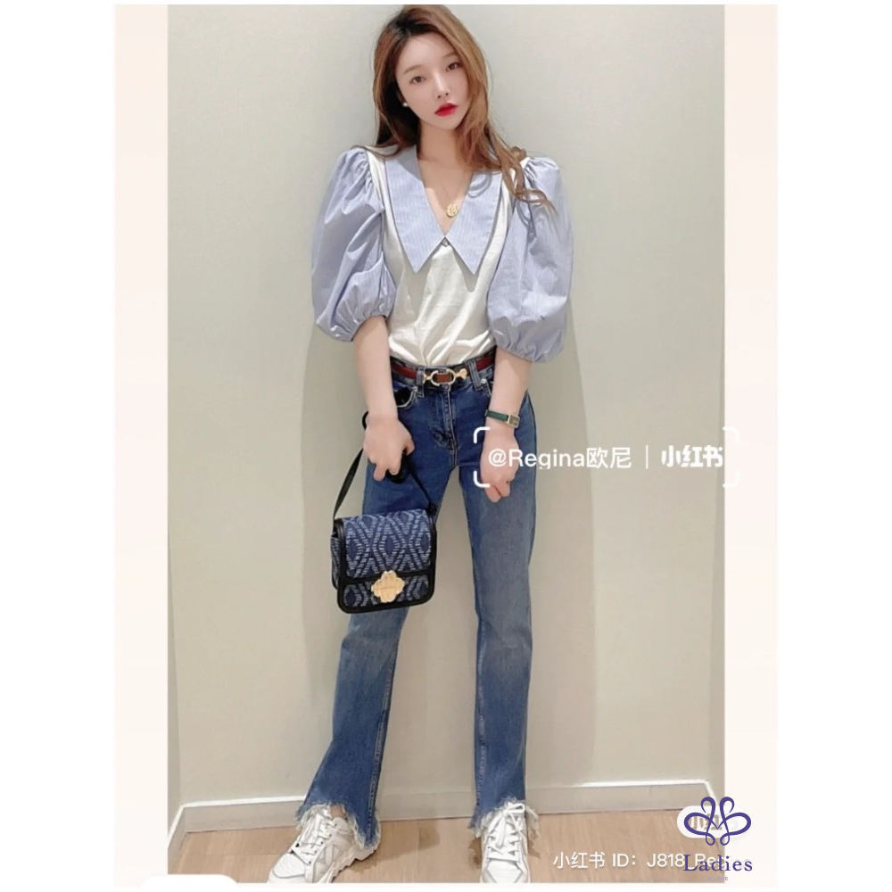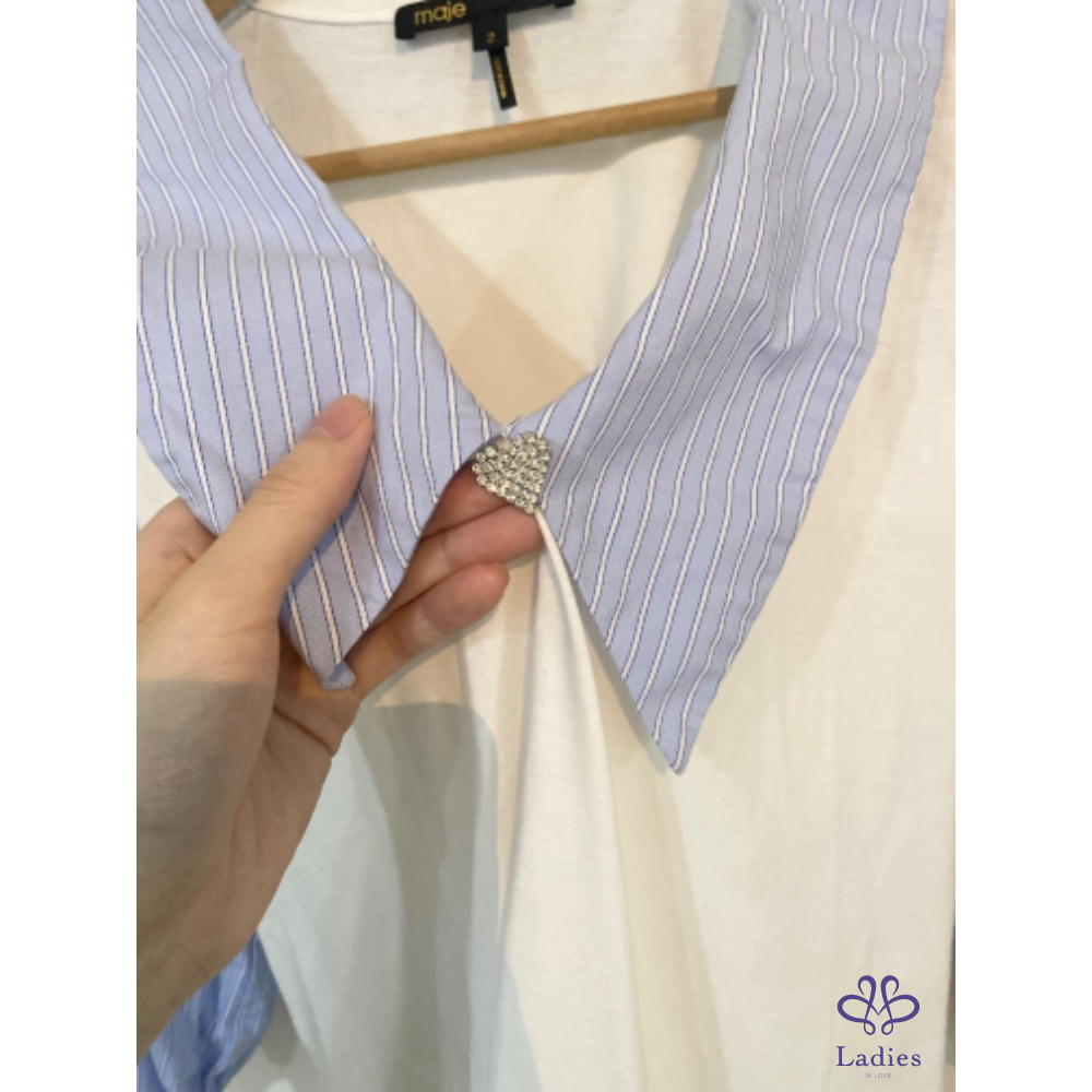 Maje 法式泡泡袖爆款條紋水鑽上衣