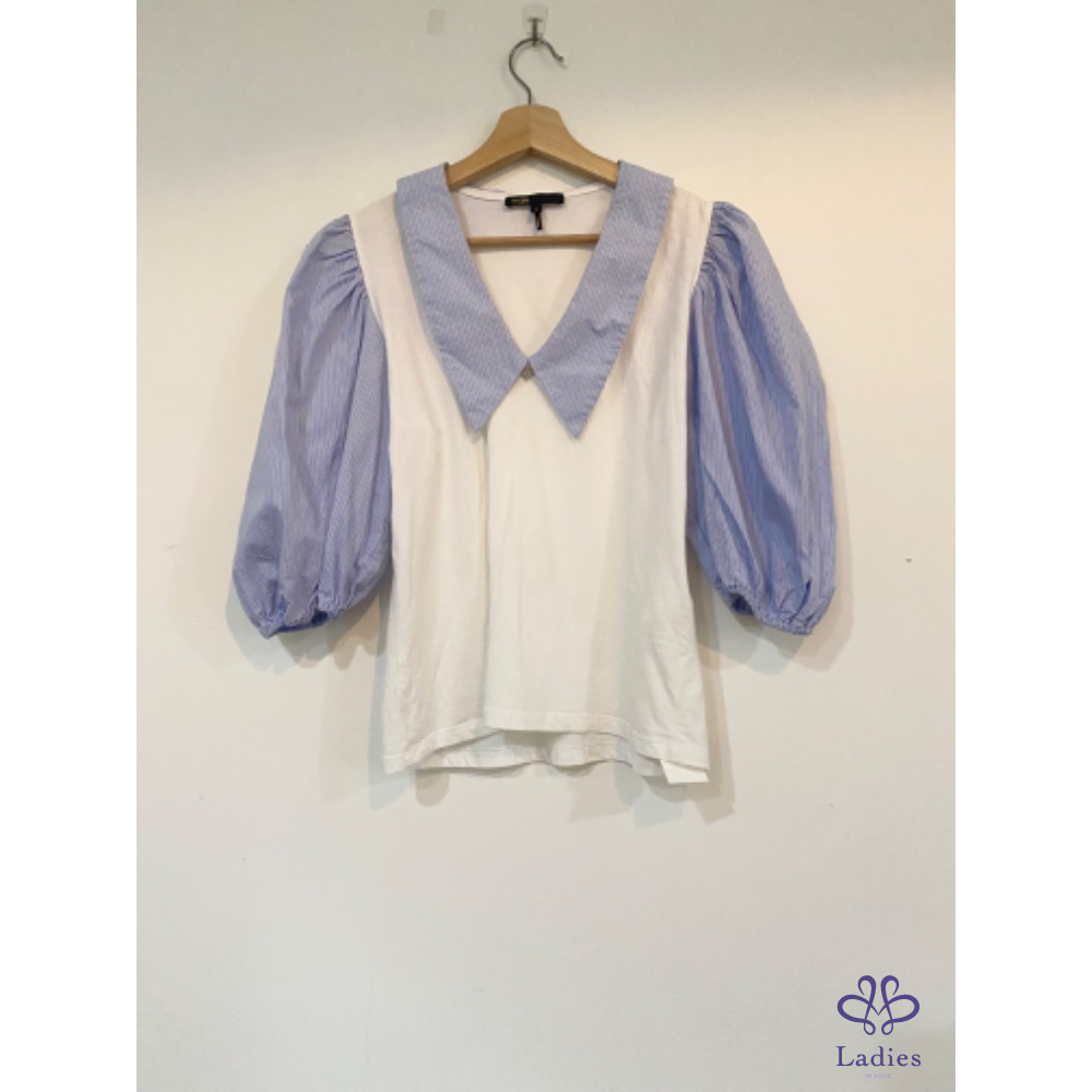 首頁 精品服飾 Maje 法式泡泡袖爆款條紋水鑽上衣
