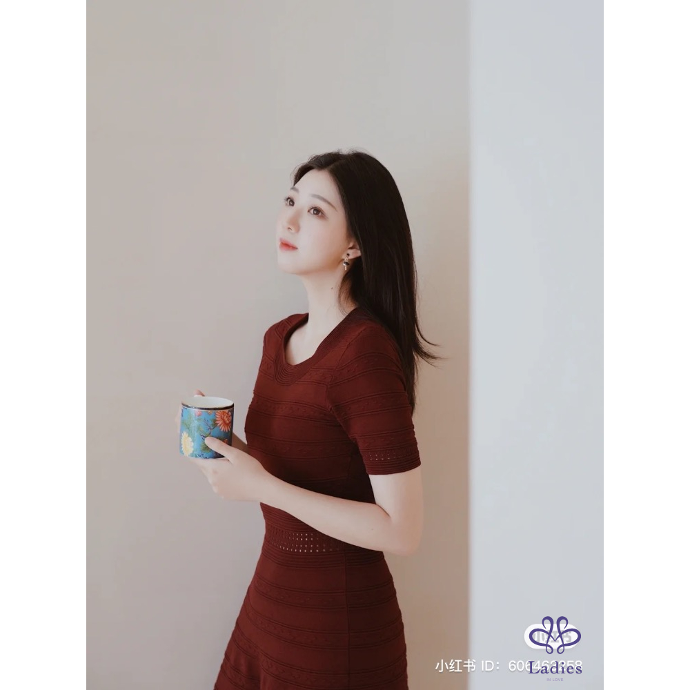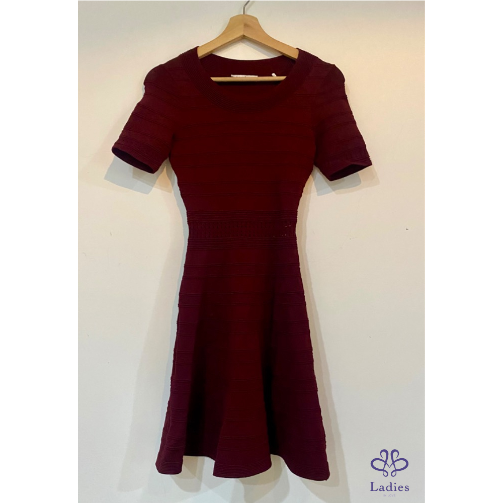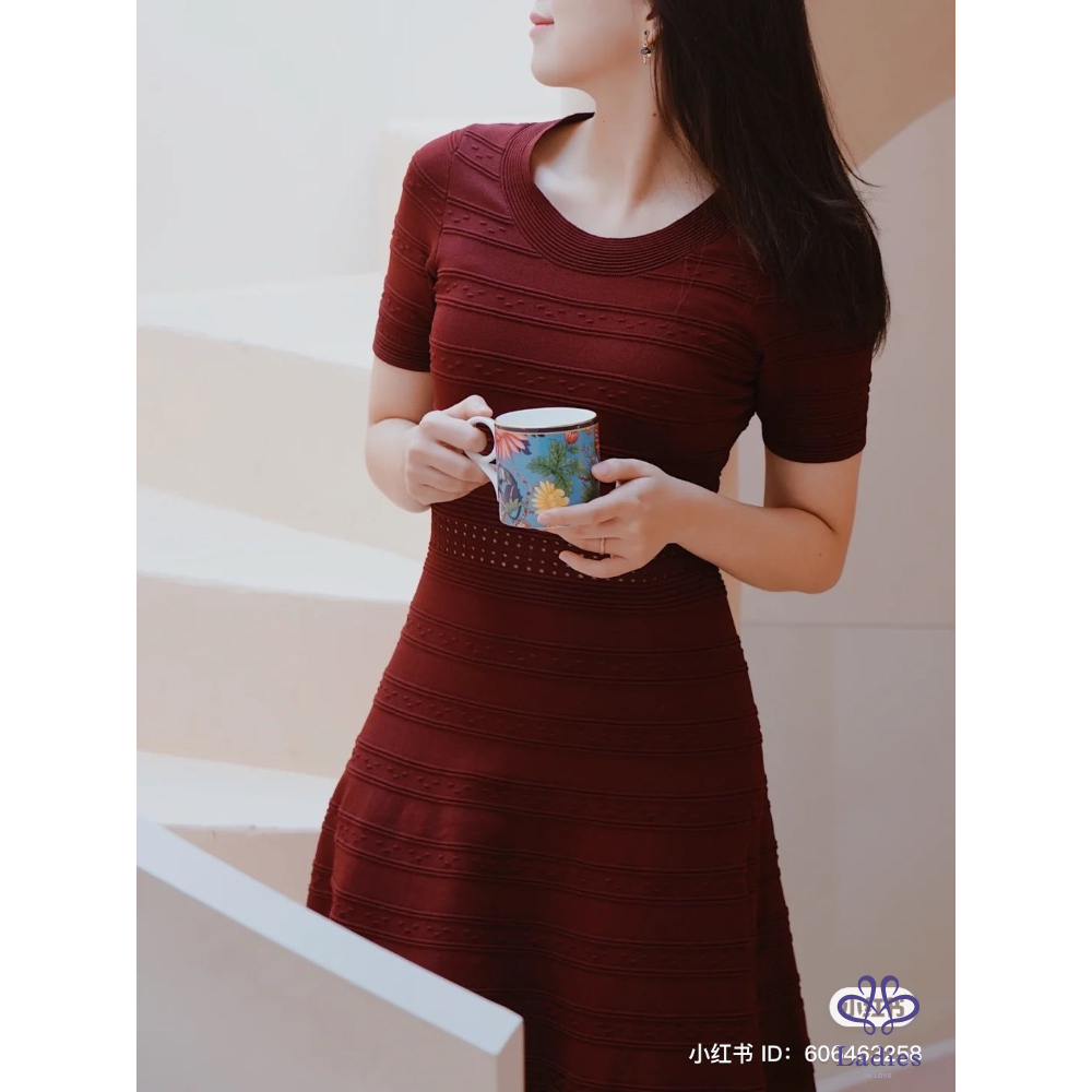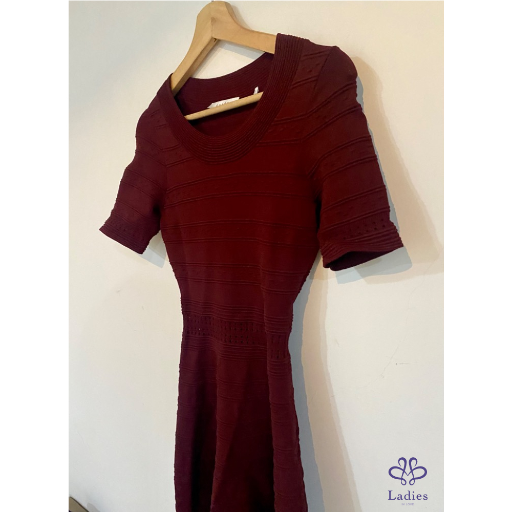 首頁 精品服飾 Sandro 酒紅圓領簍空針織洋裝