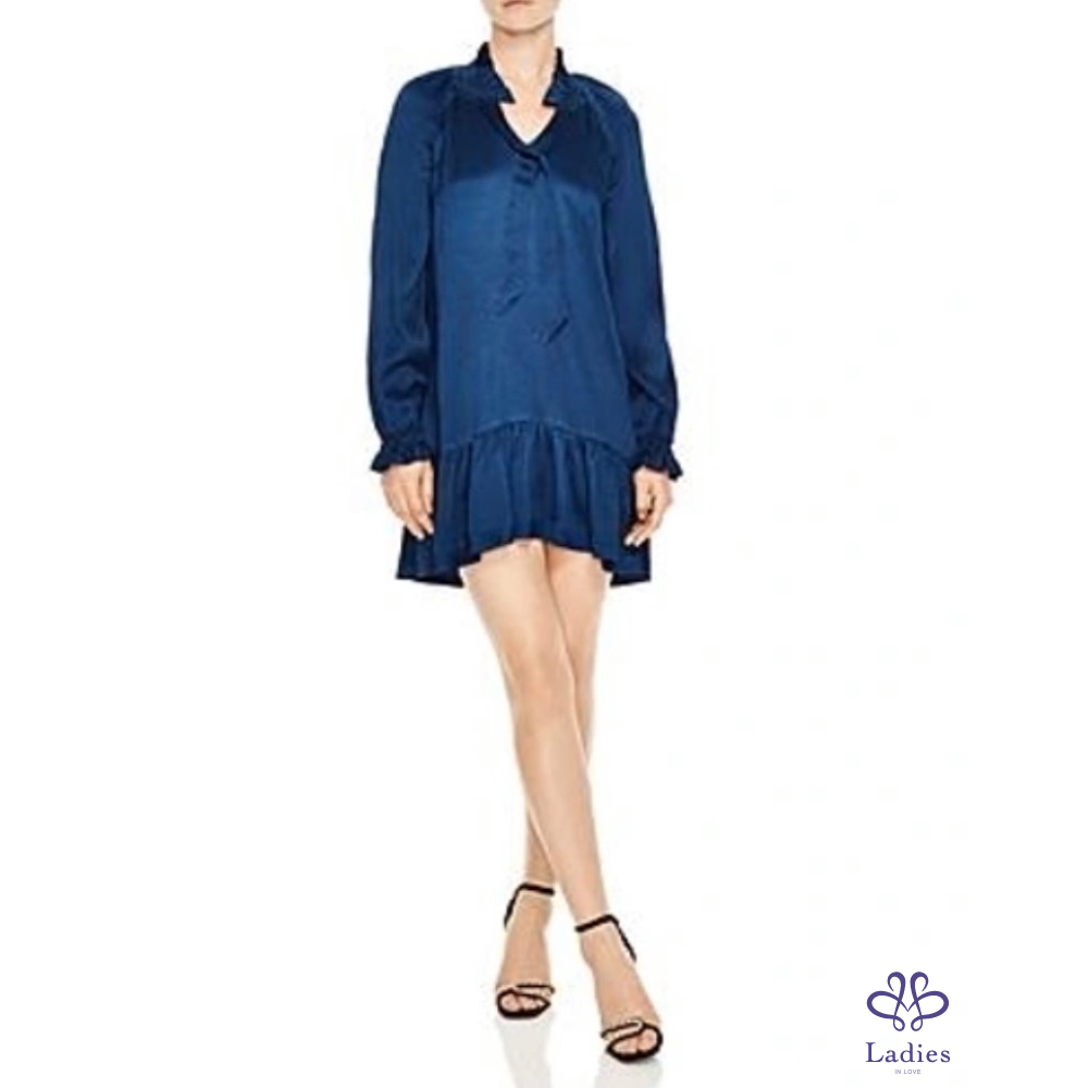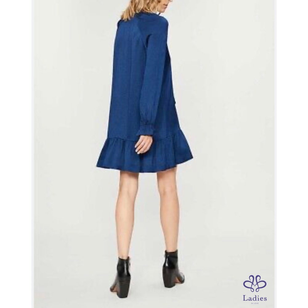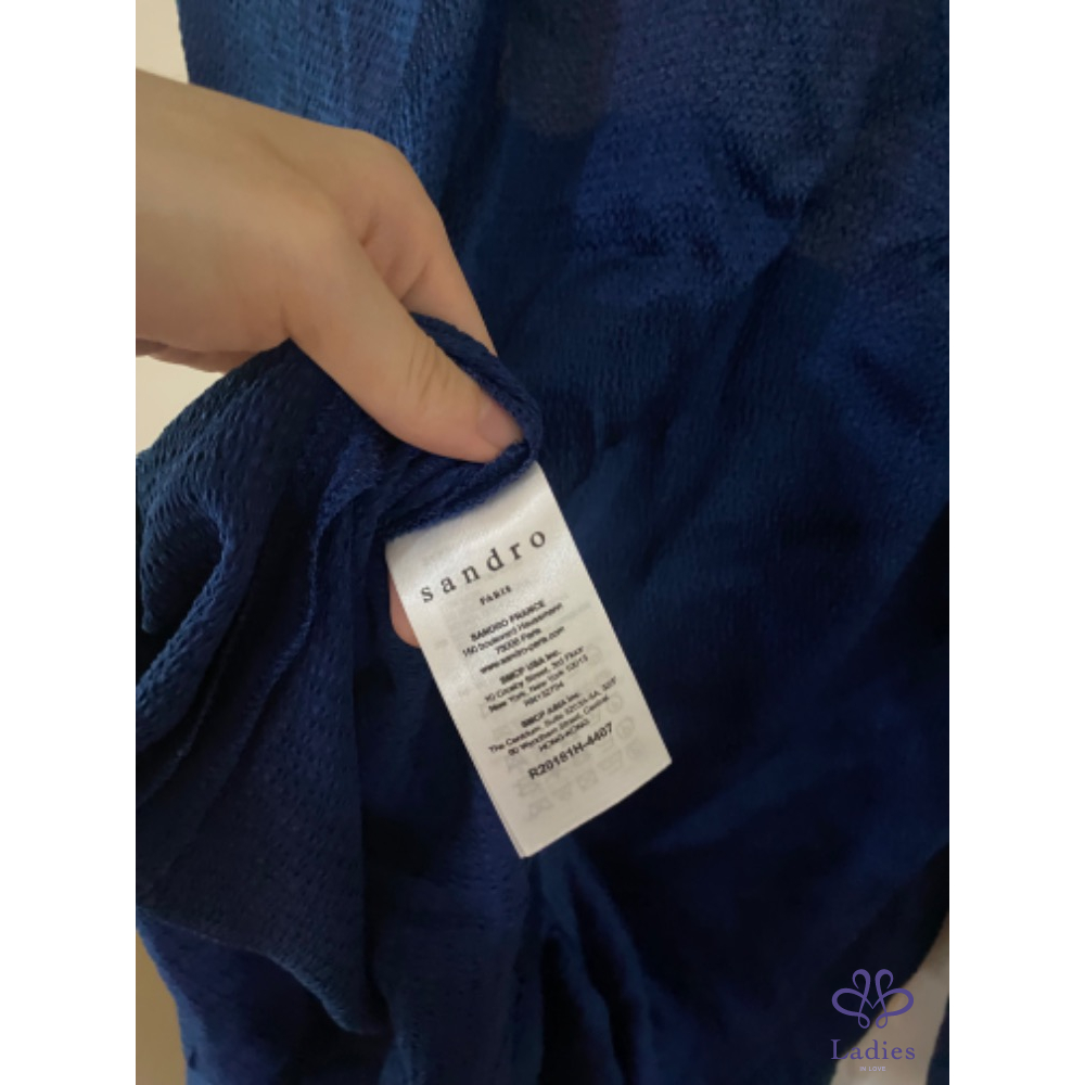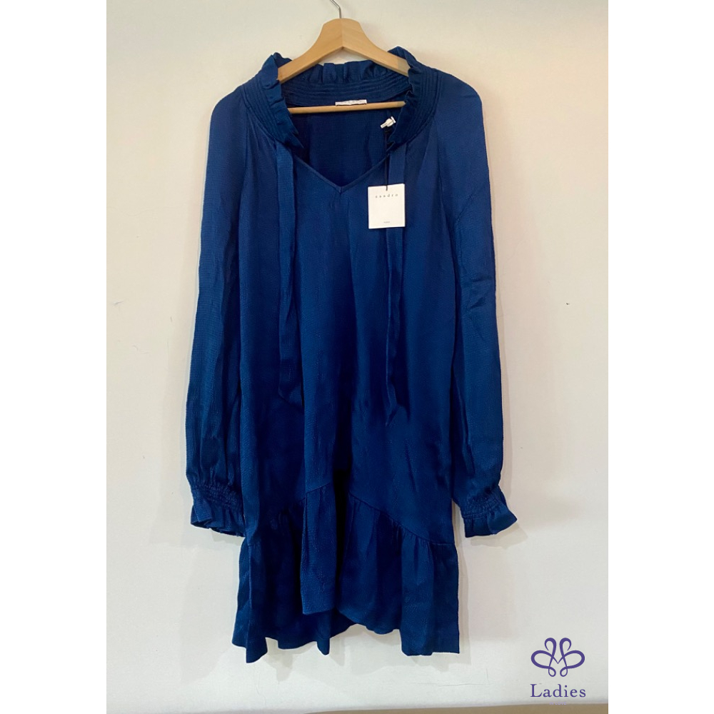 Sandro 皇家藍絲滑前短後長小立領蝶型洋裝