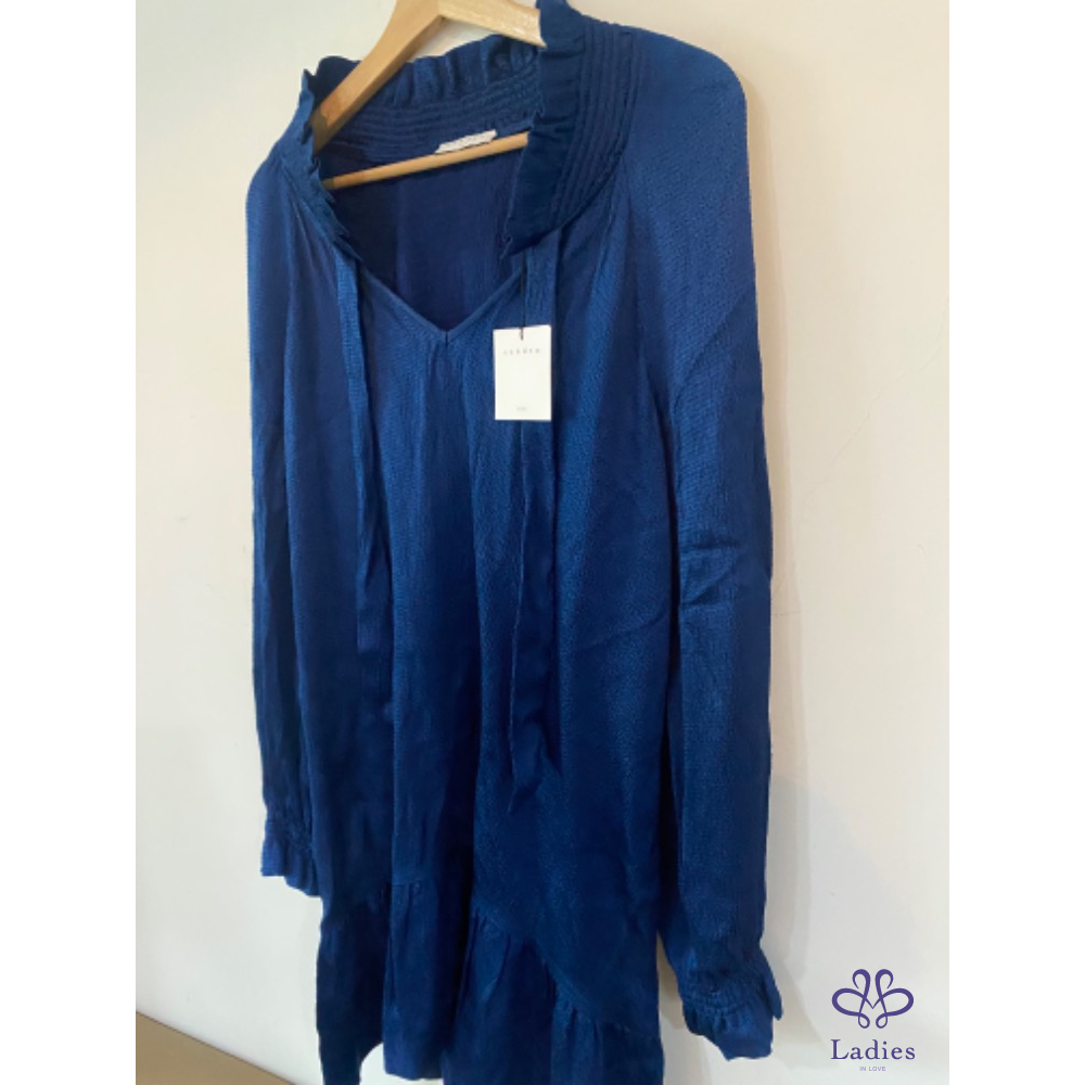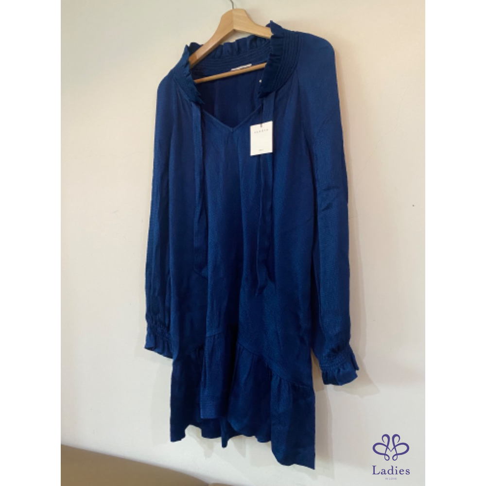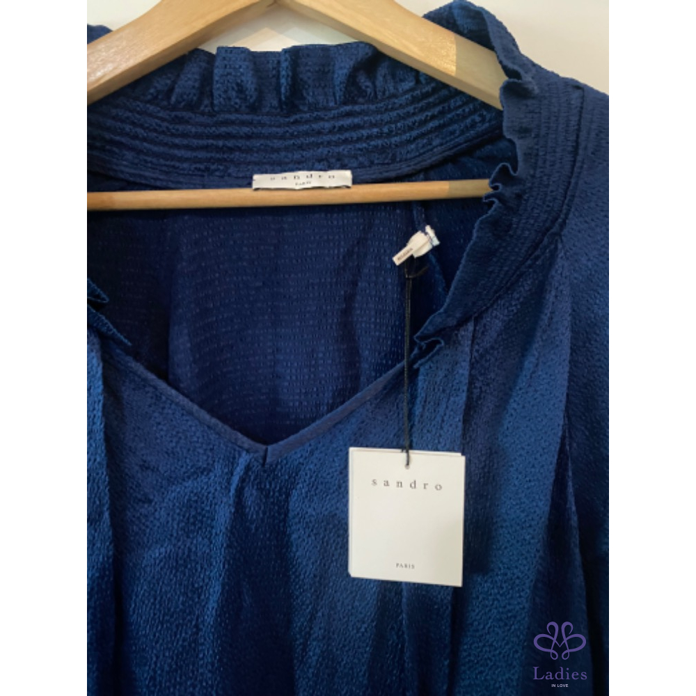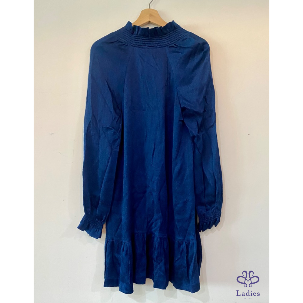 Sandro 皇家藍絲滑前短後長小立領蝶型洋裝