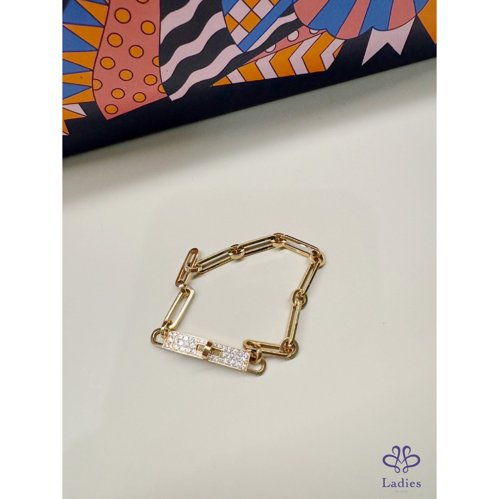 Hermès Kelly手環玫瑰金  4顆鑽石0.2ct