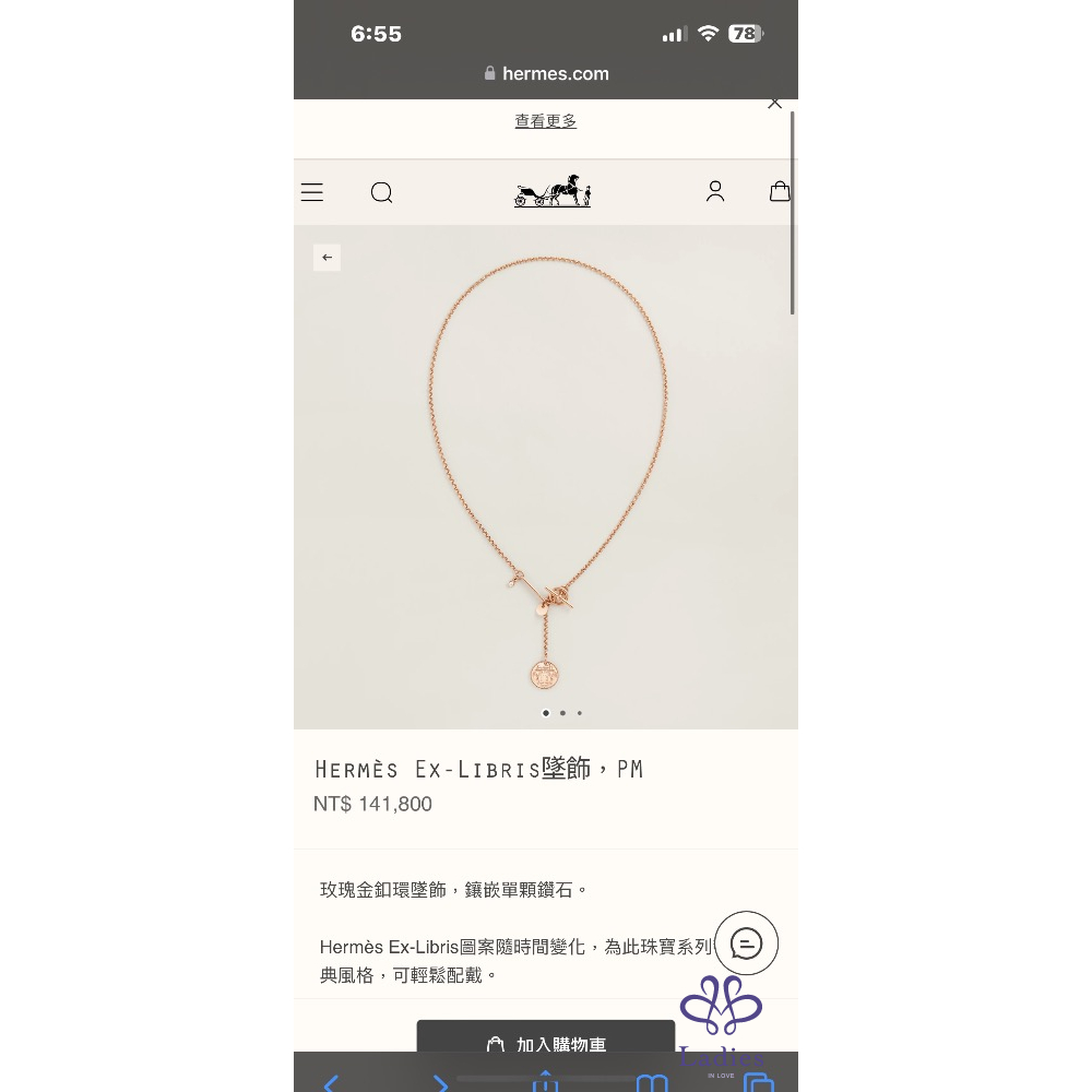 首頁 珠寶 Hermès Kelly手環玫瑰金  4顆鑽石0.2ct