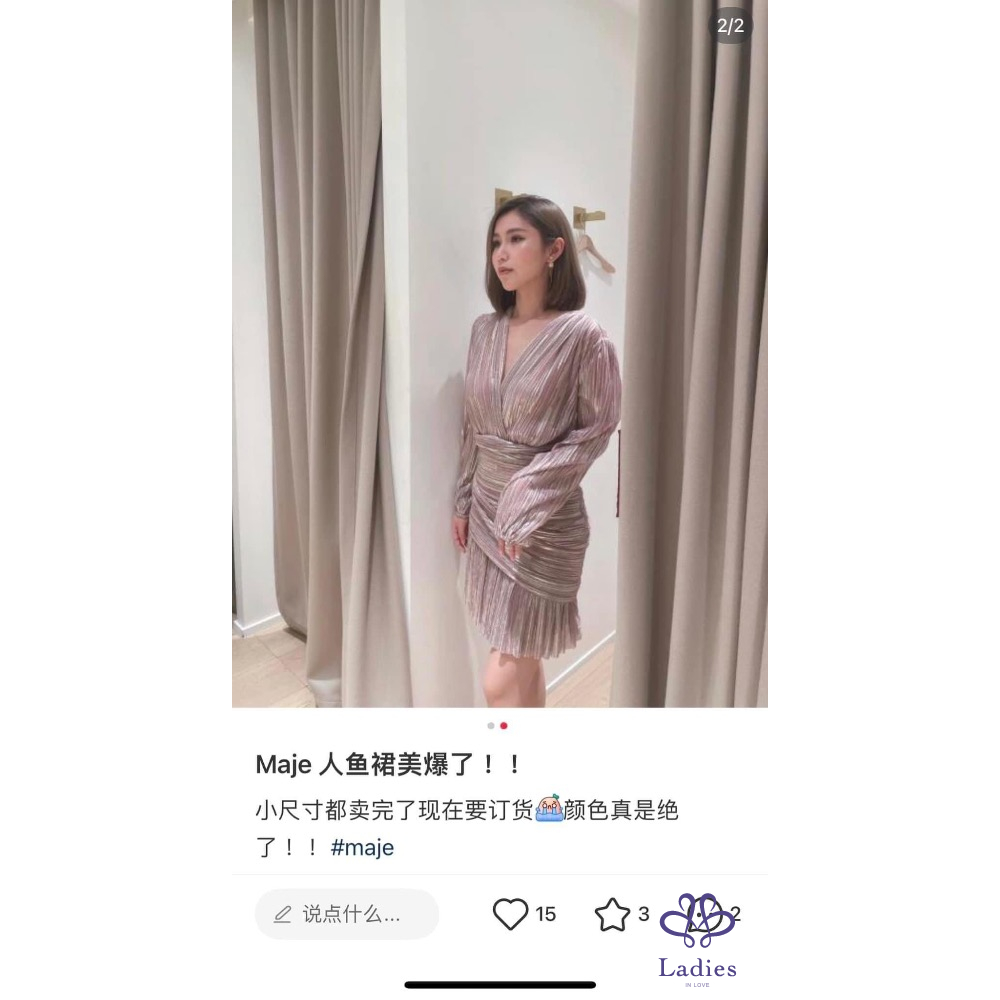 巴黎輕奢品牌 Maje 兩色 夢幻裸粉包臀人魚洋裝