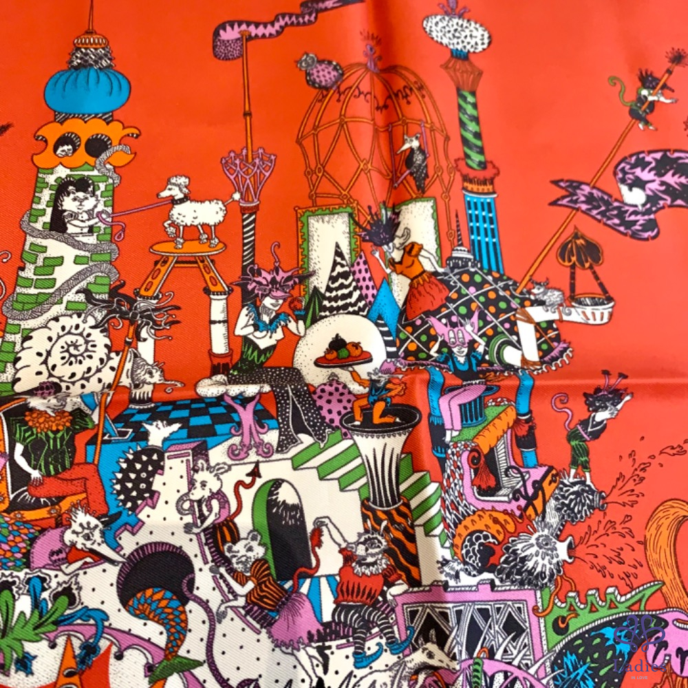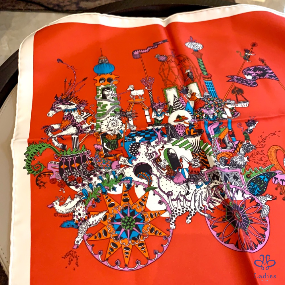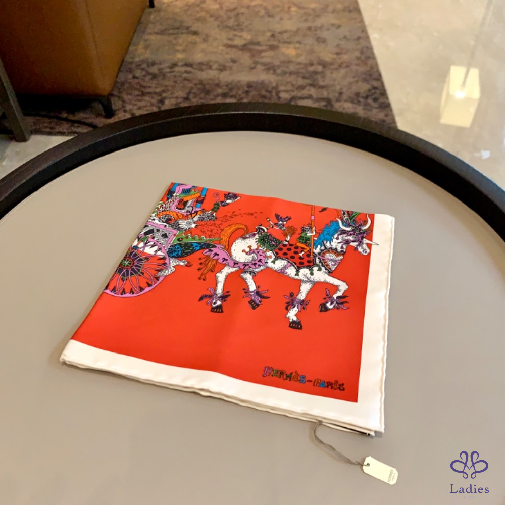 Hermès 45*45方巾 紅色馬車