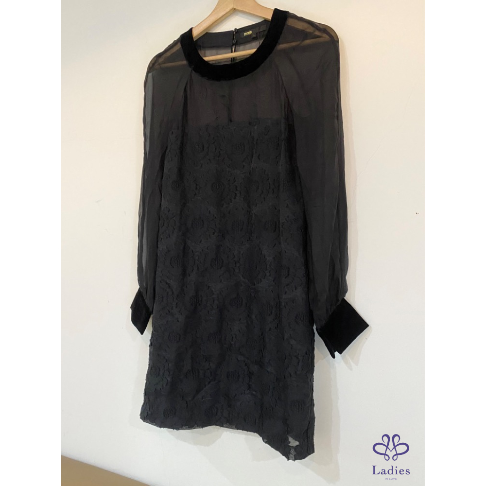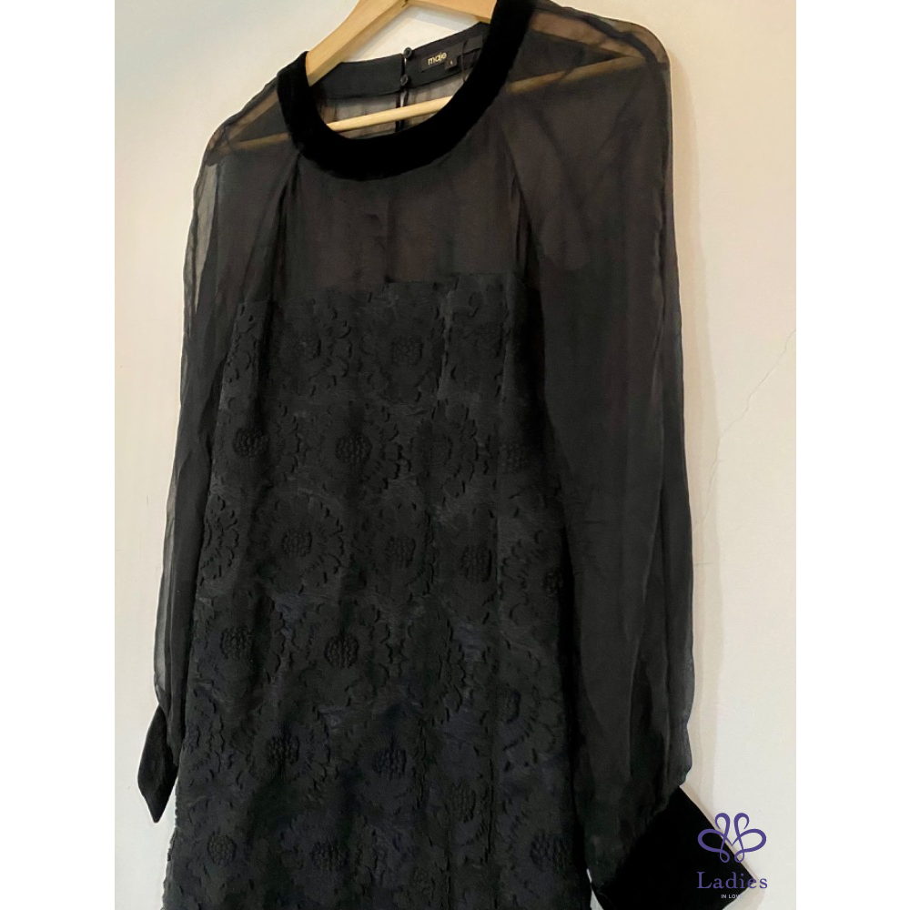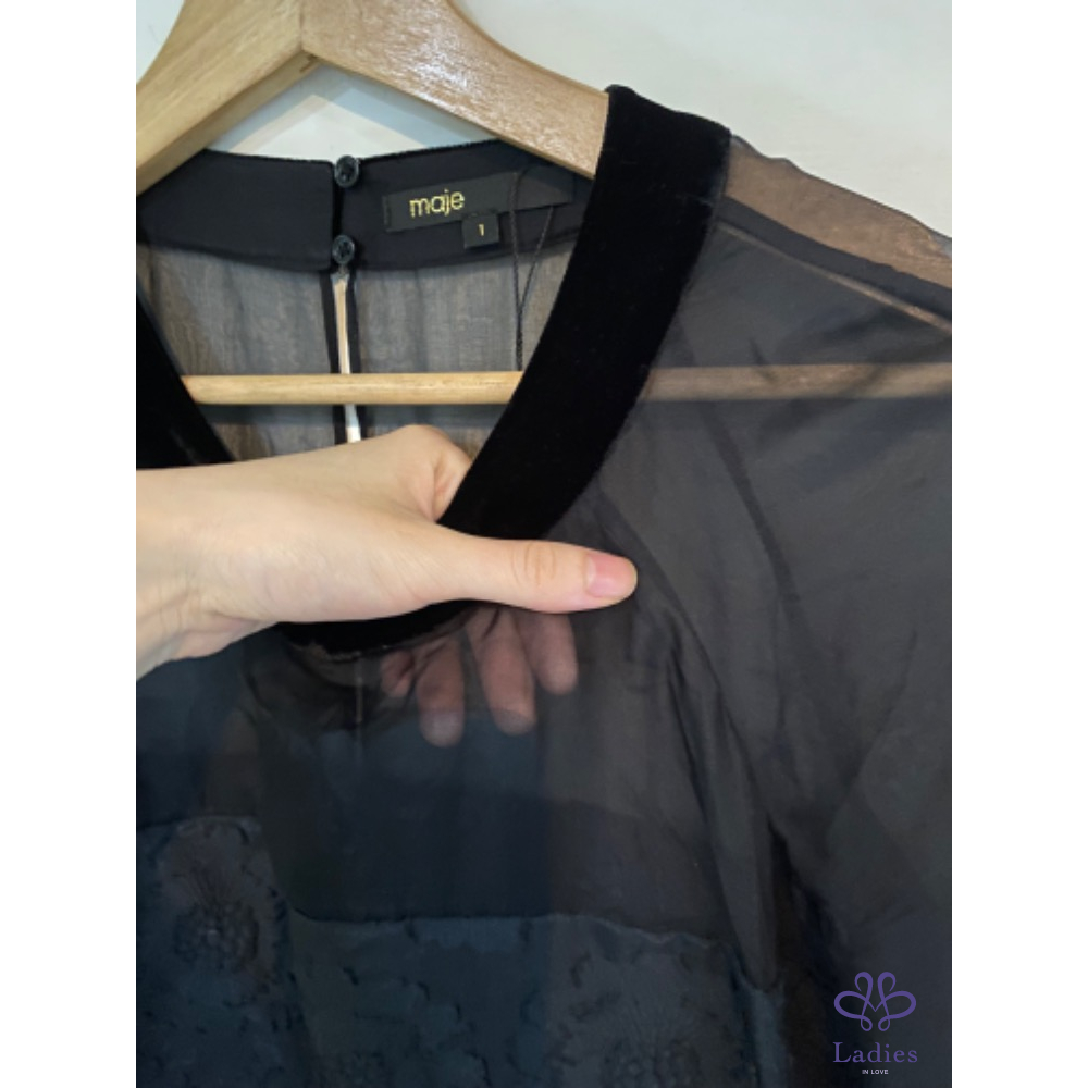 MAJE 100%黑色真絲網紗刺繡洋裝