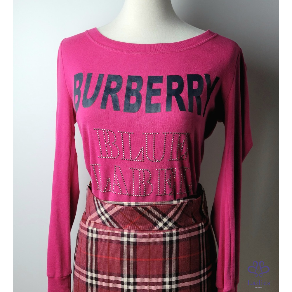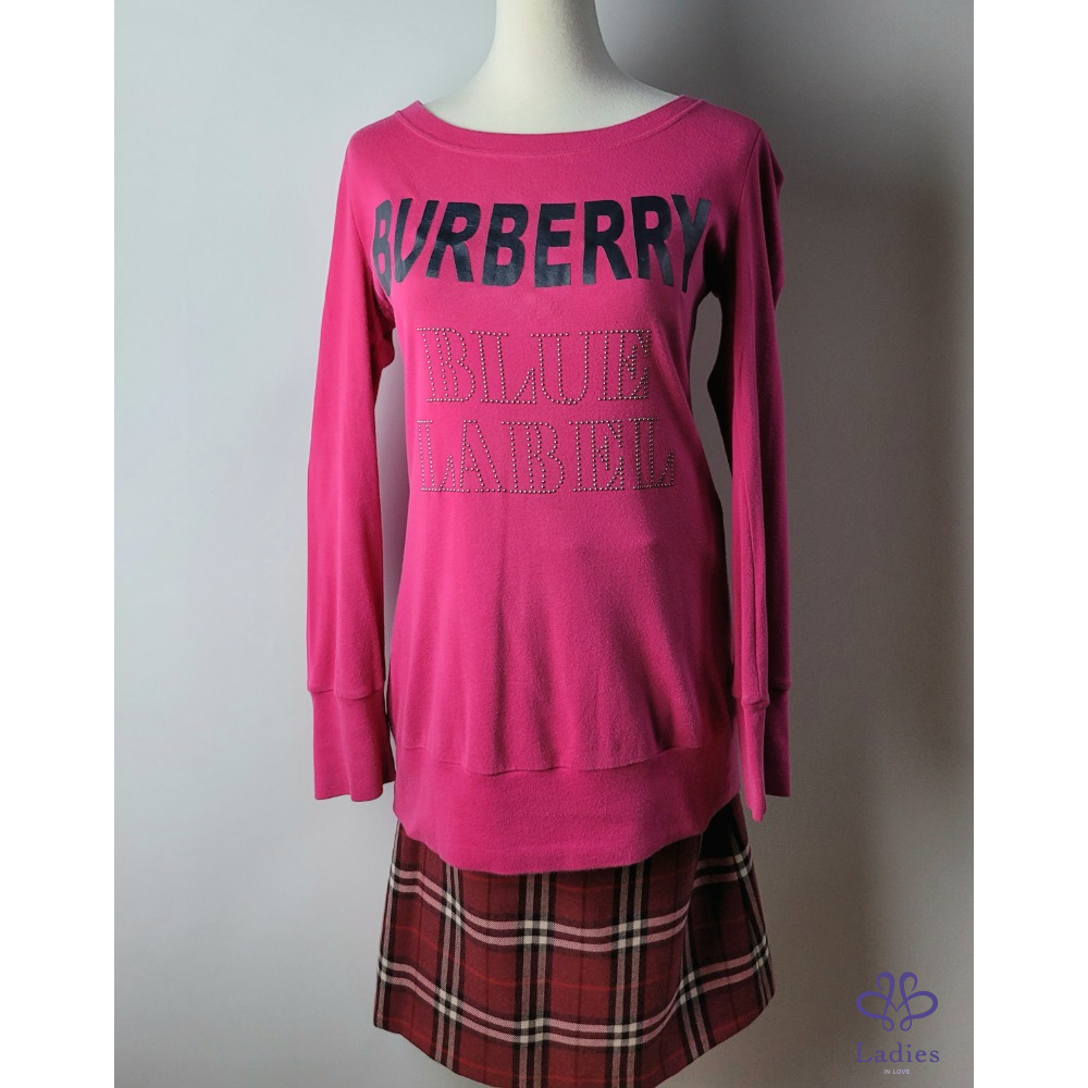 ~BURBERRY 桃色 胸前大LOGO字體 長袖長版上衣38號