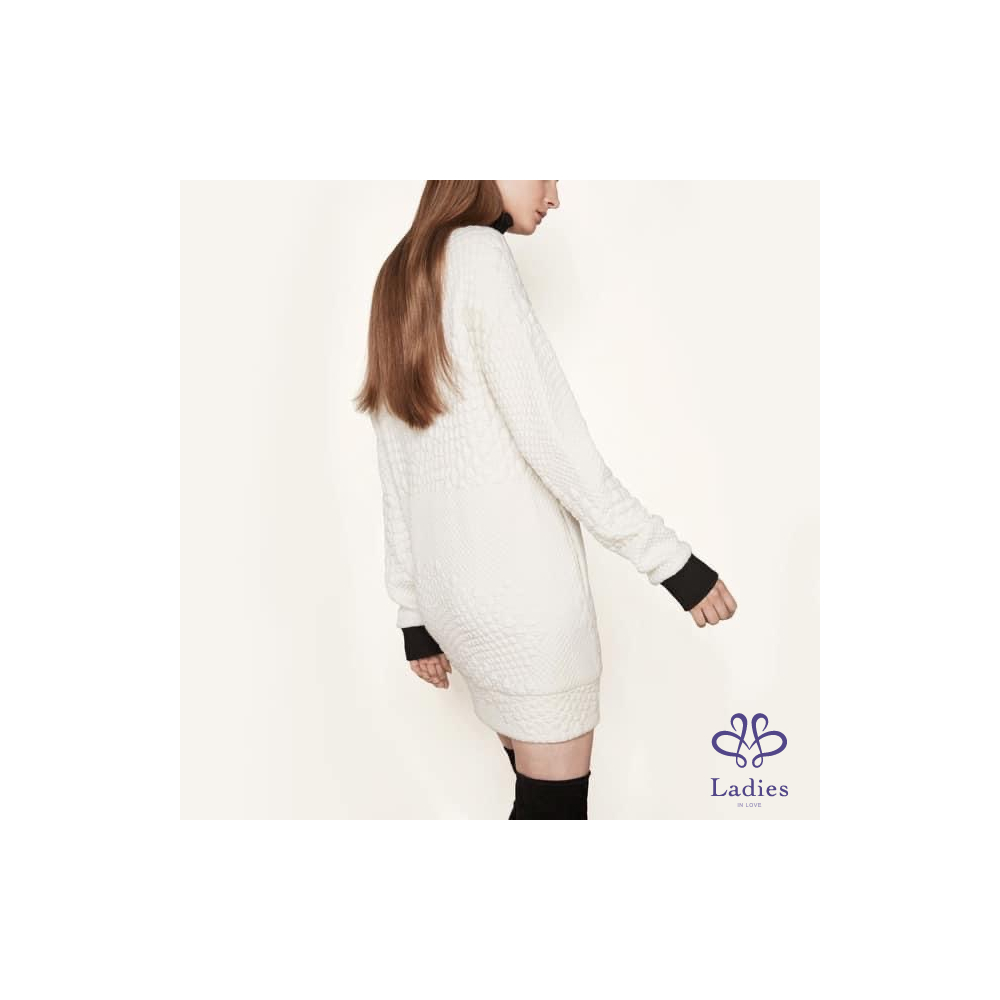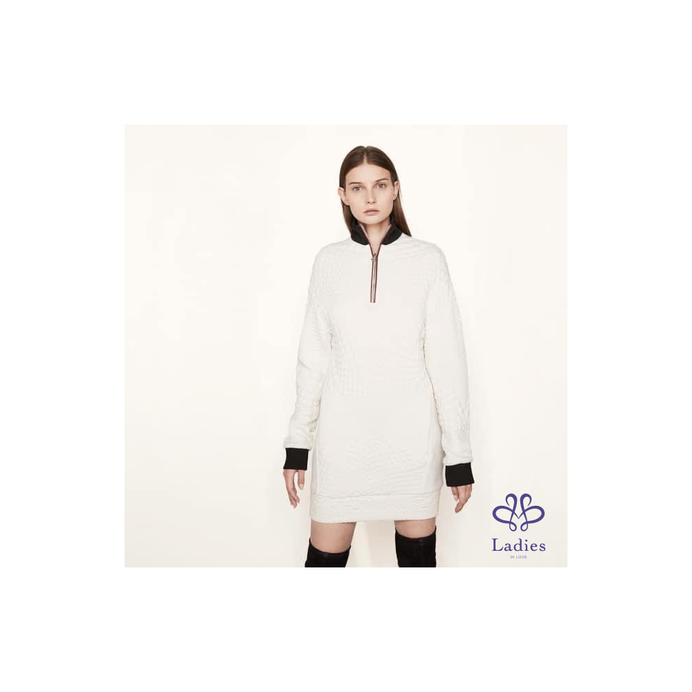 首頁 精品服飾 Maje 混羊毛皮質撞色高領毛衣洋裝