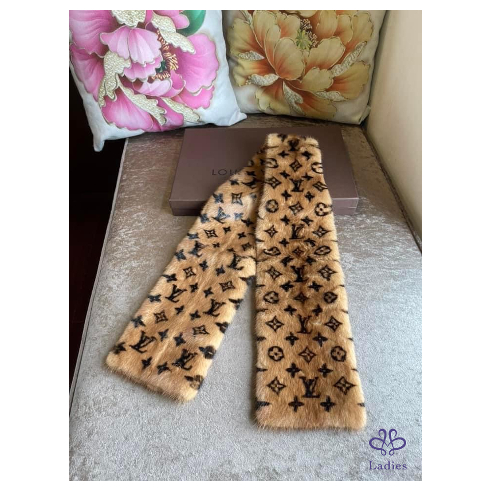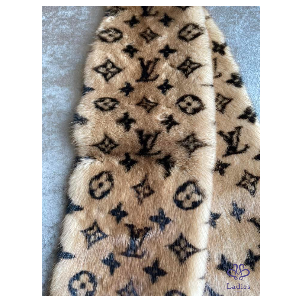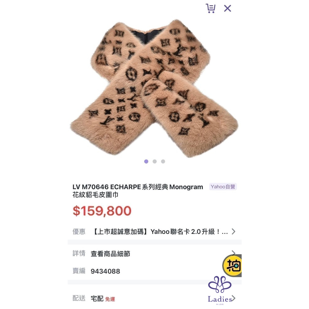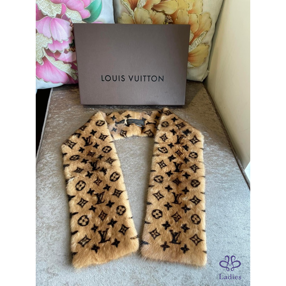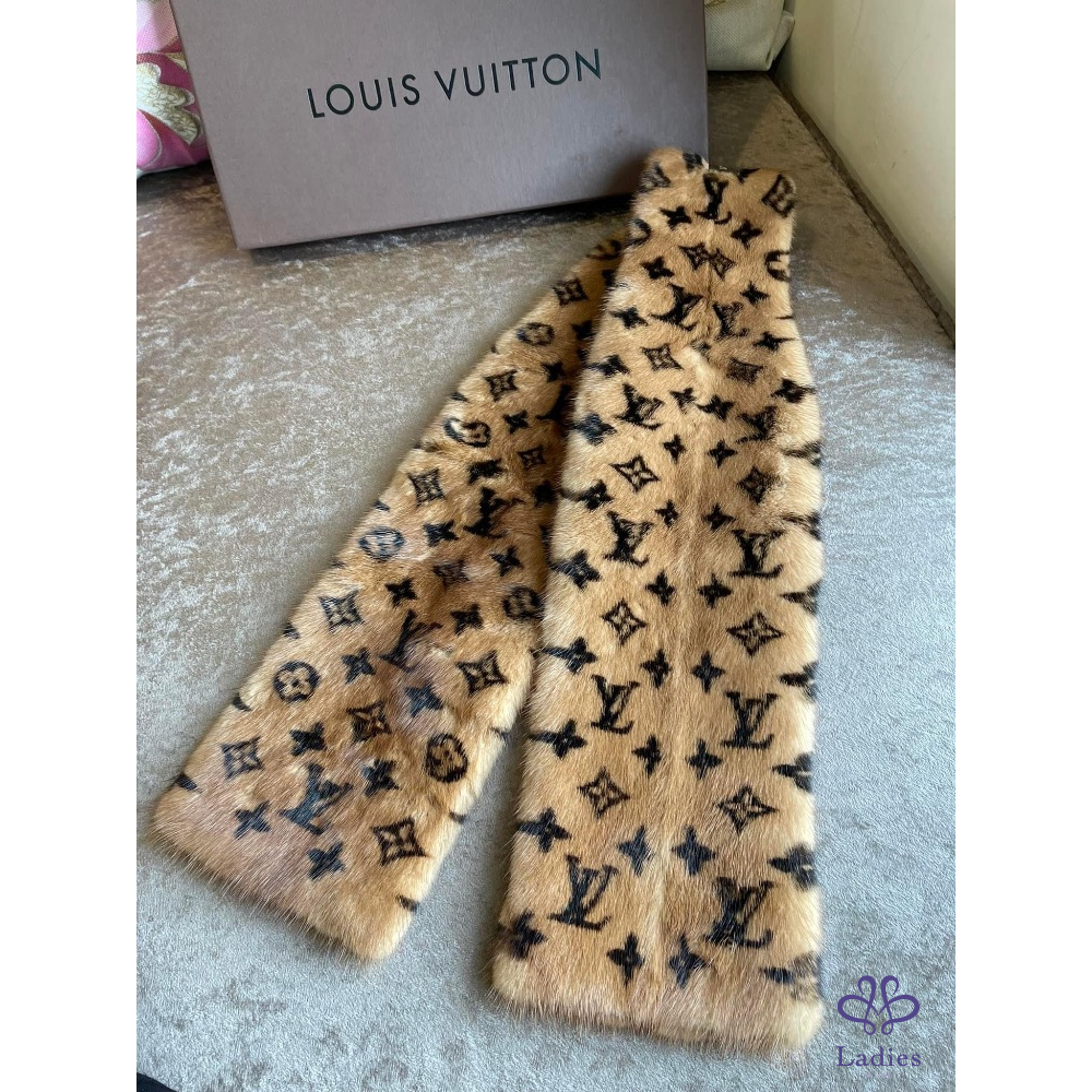 限量????極美????LV 雙面 原花老花字紋 貂毛 限量圍巾