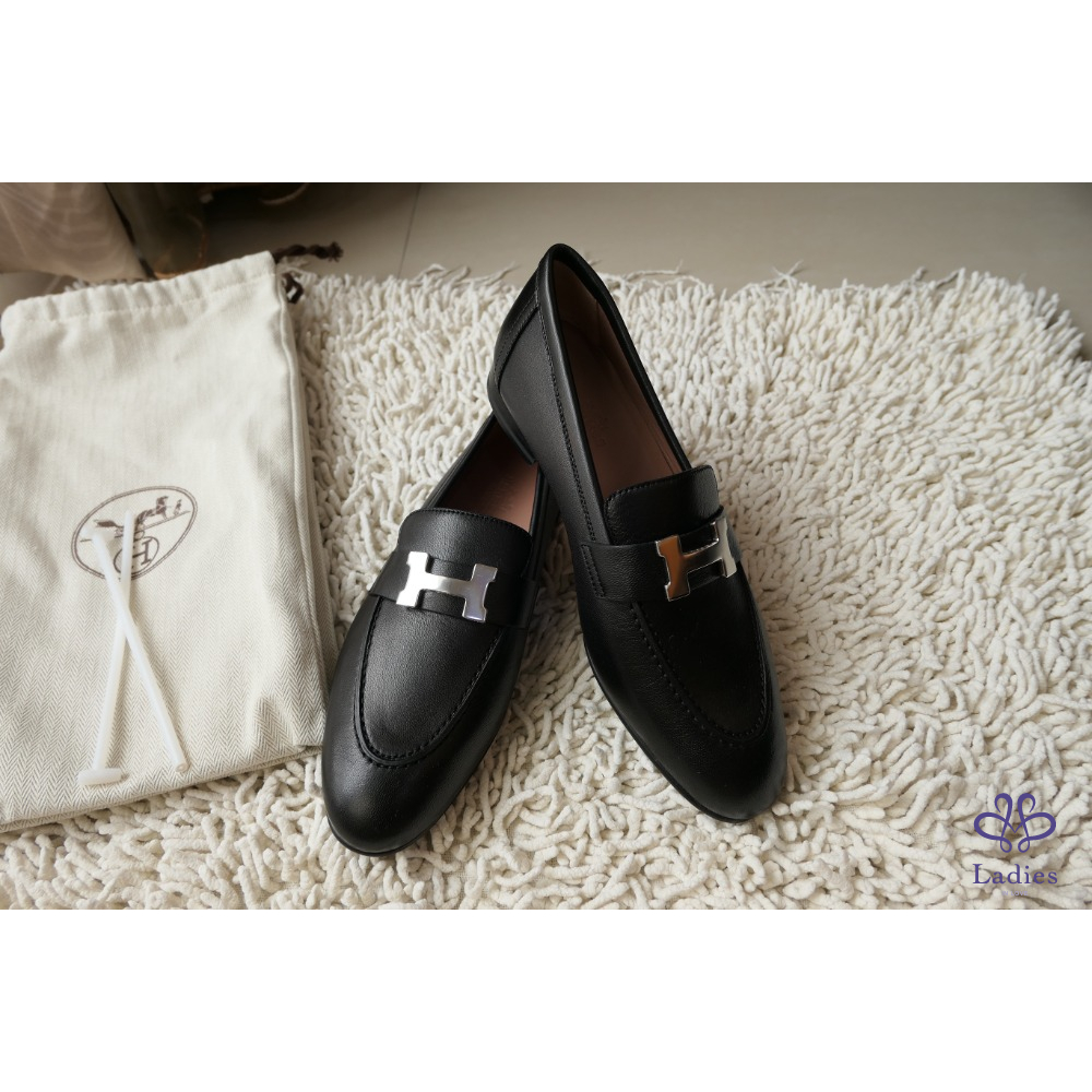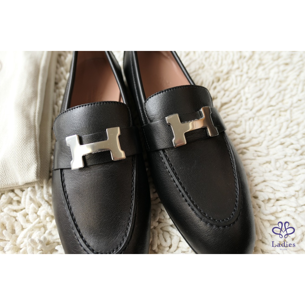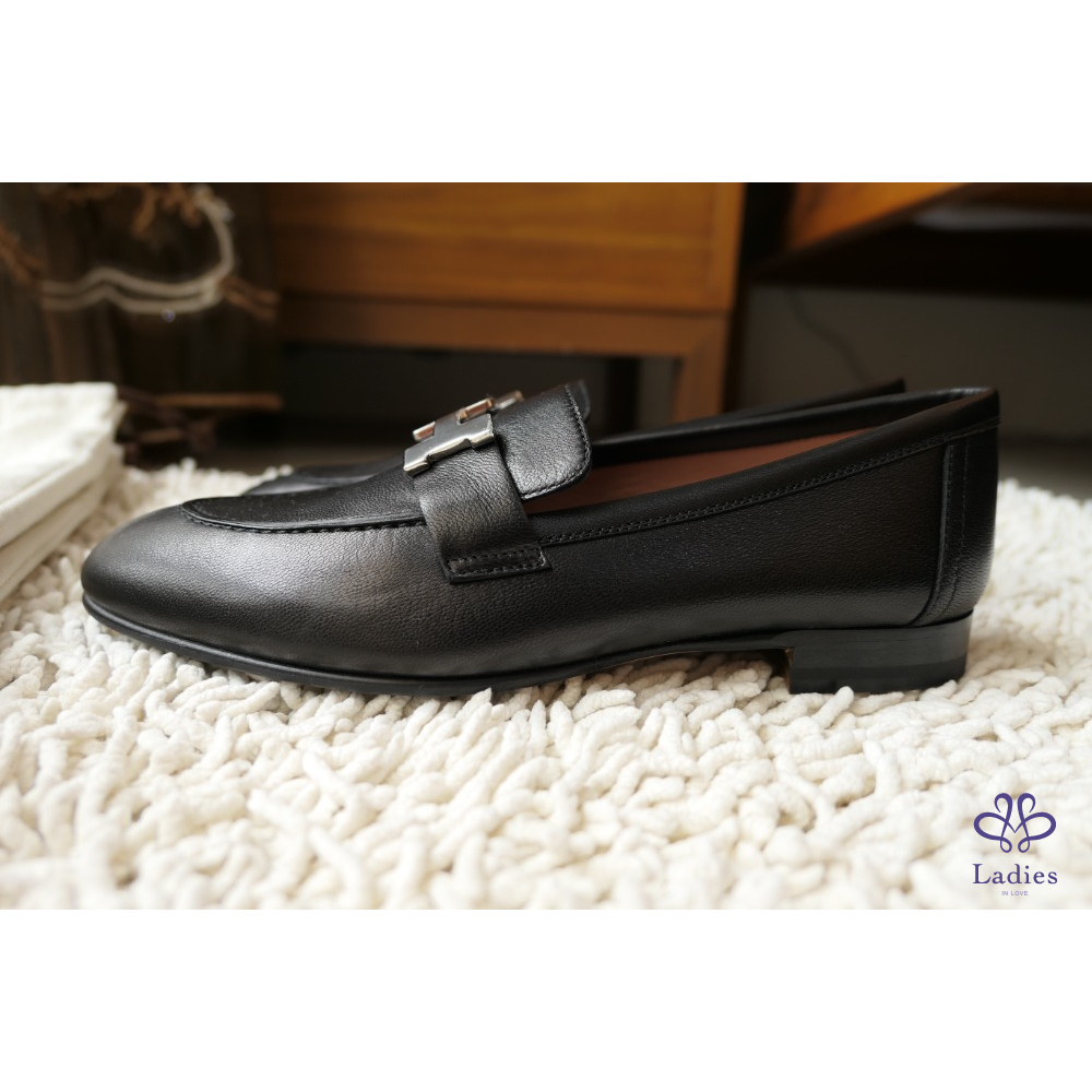 全新Hermès Paris Loafer 黑X銀扣 樂福鞋 尺寸:36