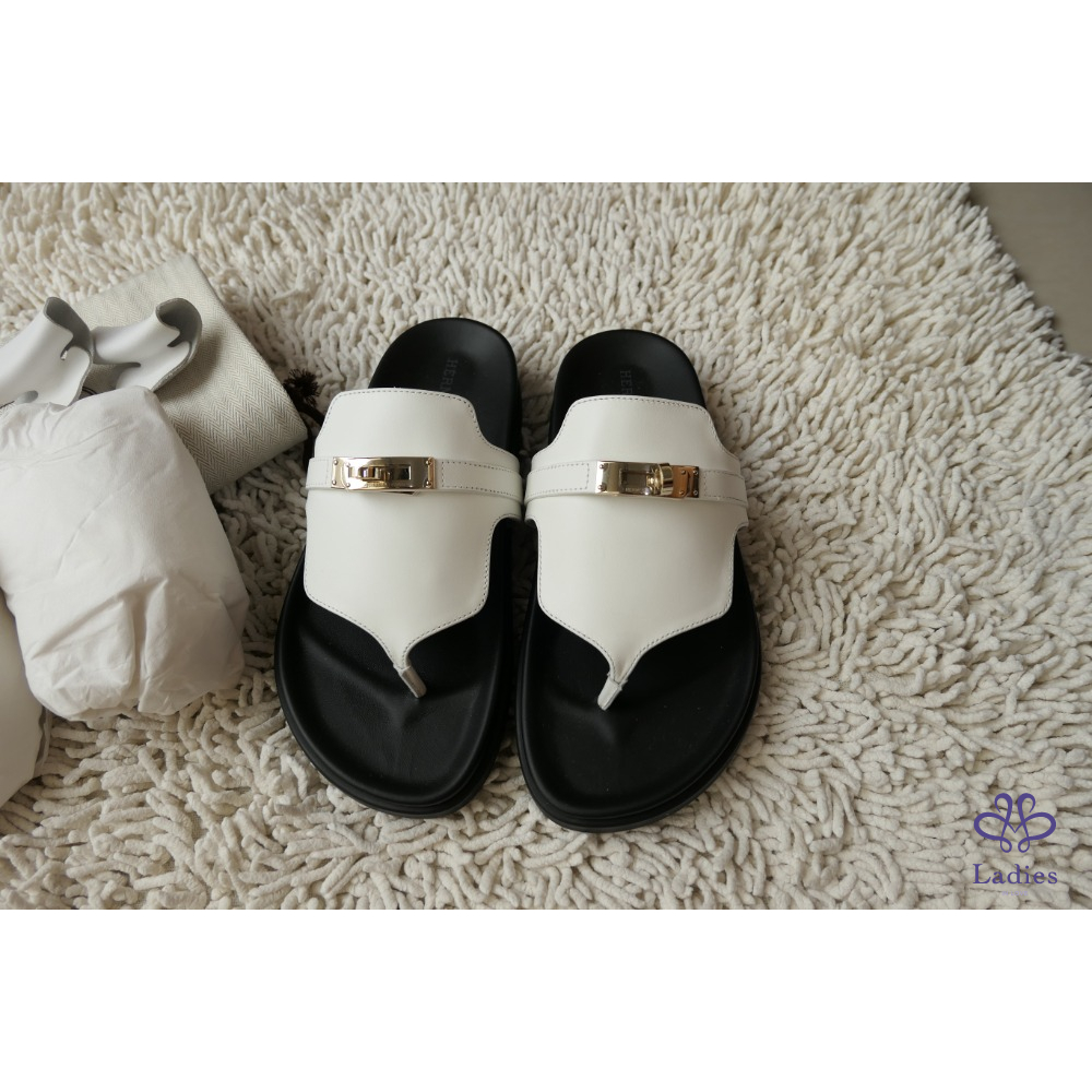 全新hermes 熊貓配色empire sandal KELLY 夾腳拖鞋 銀扣 尺寸:36