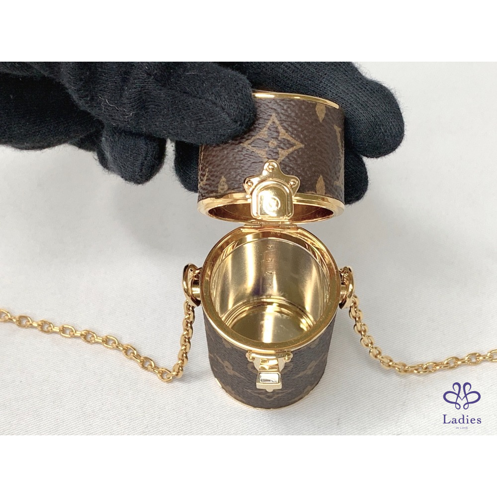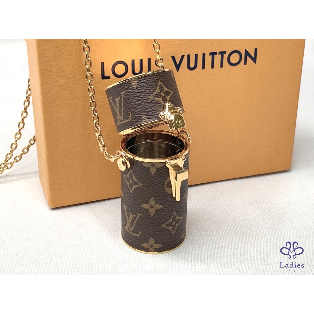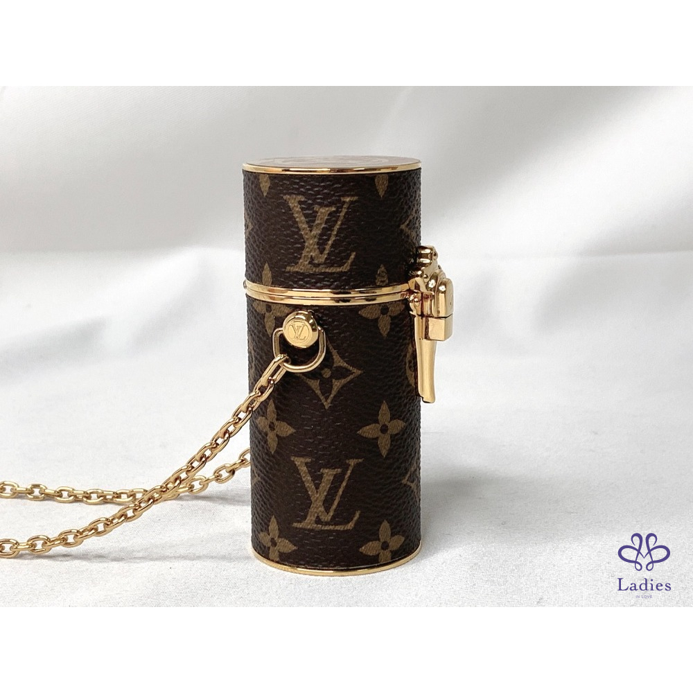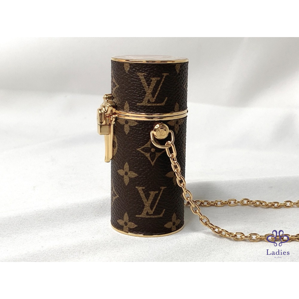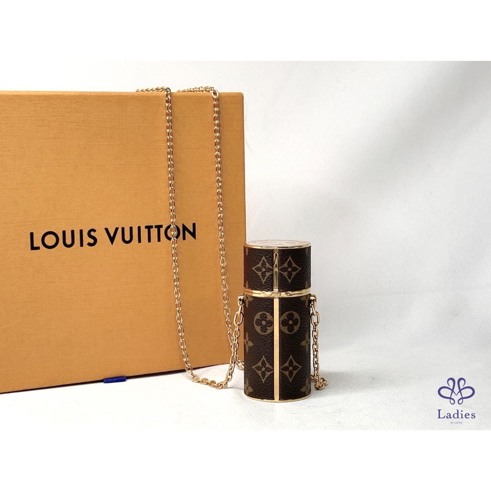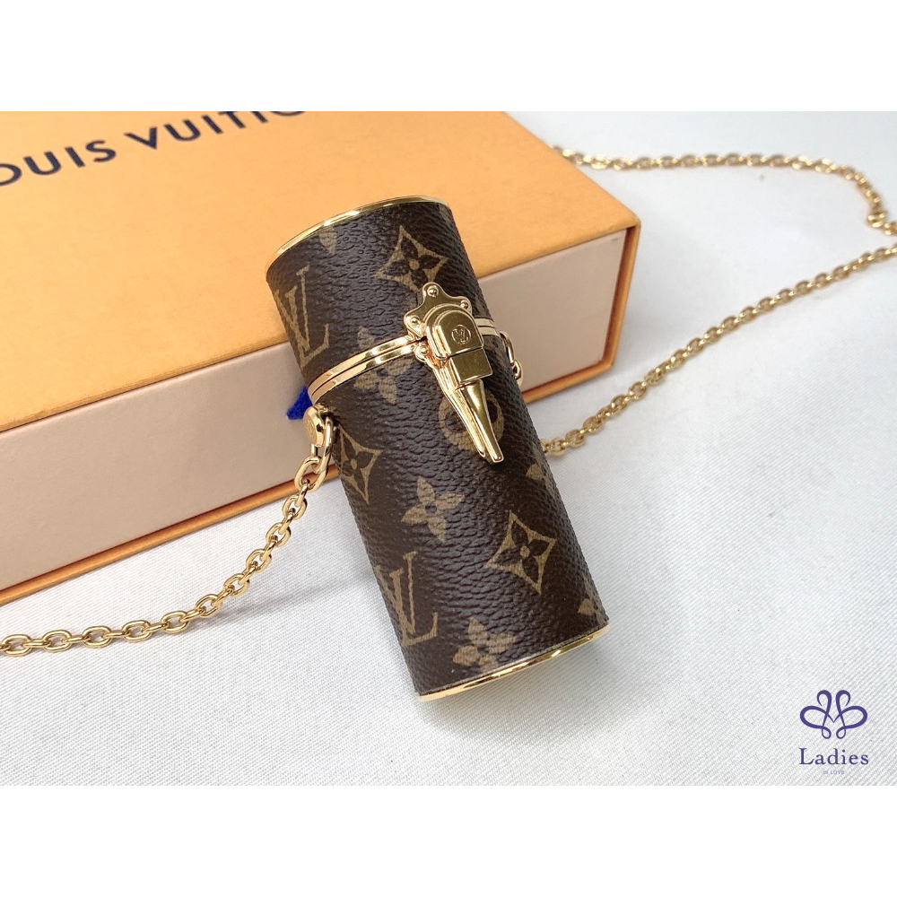 產品信息 【LV 老花鏈帶口紅唇膏盒】 #櫃上價4萬5 #上蓋膠膜未撕 這款口紅盒採用Monogram圖騰及金色鎖扣製成 附上鏈帶可以背上肩或是掛在包上,褲裝或是裙裝造型精緻加分 40%鋁,40%黃銅,20%塗層帆布 整體包況9成8新,二手商品均有正常使用/存放痕跡 型號:MP2406 尺寸:8.5x4cm 附件:原廠盒