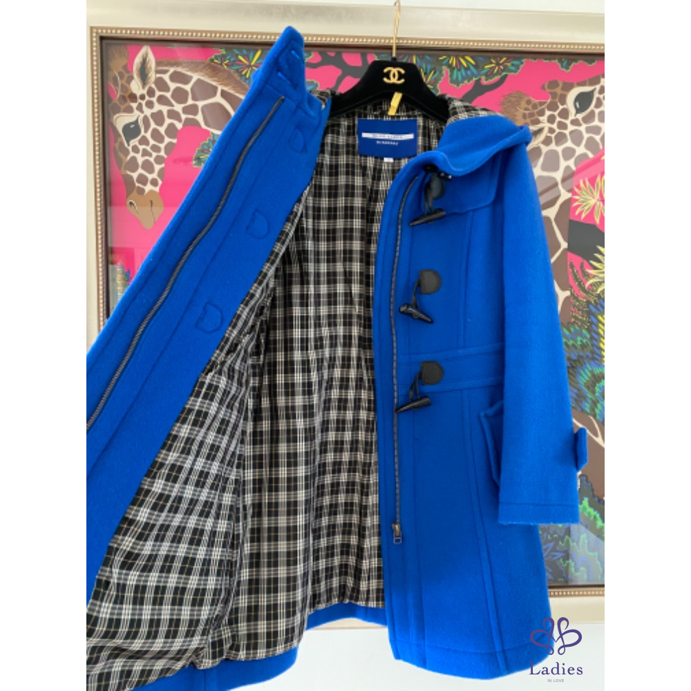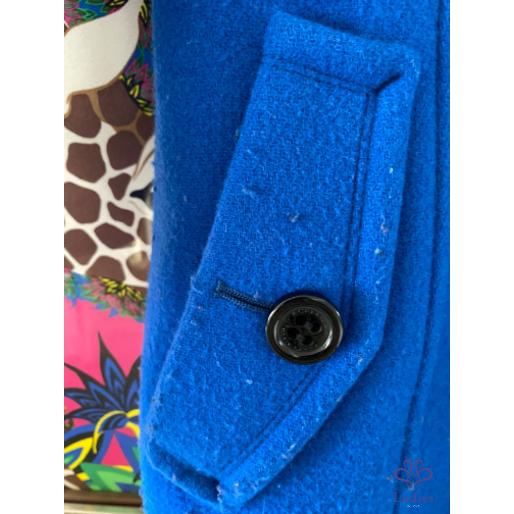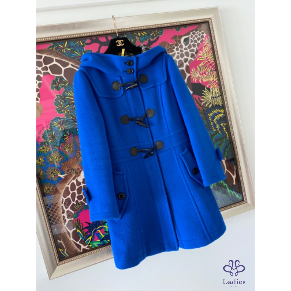 BURBERRY 寶藍色 牛角扣羊毛長外套大衣
