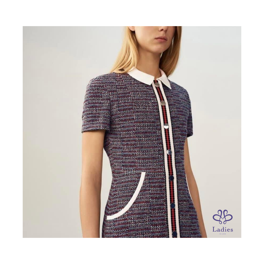 巴黎輕奢品牌 Maje 千金風小香毛呢領子洋裝(何超蓮同款)