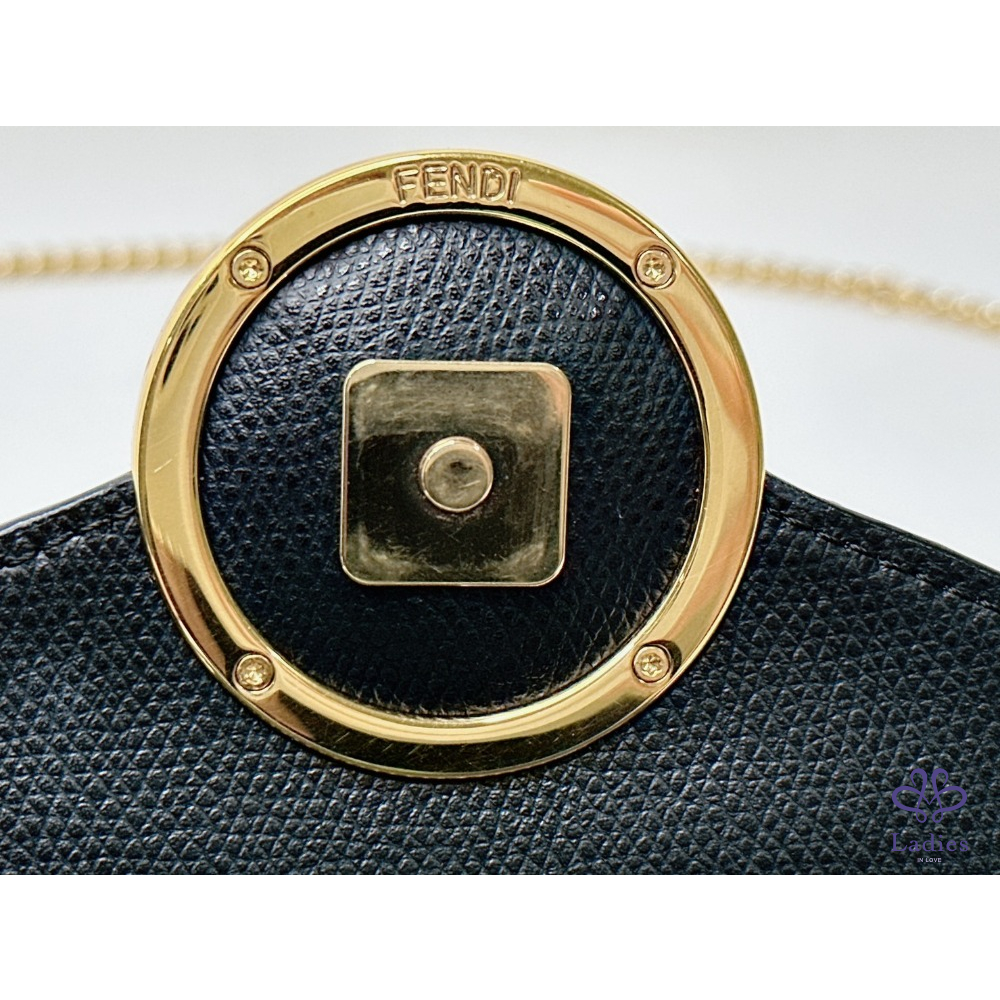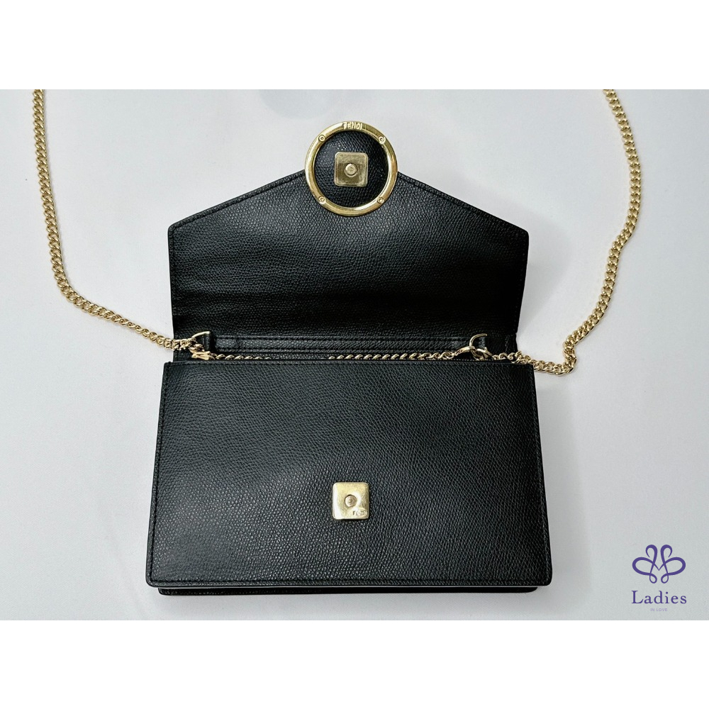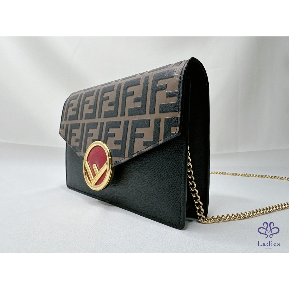 【FENDI 老花拚黑皮革WOC信封鏈帶包】
