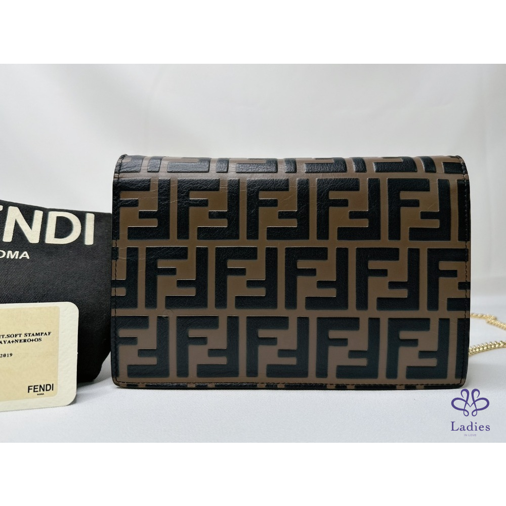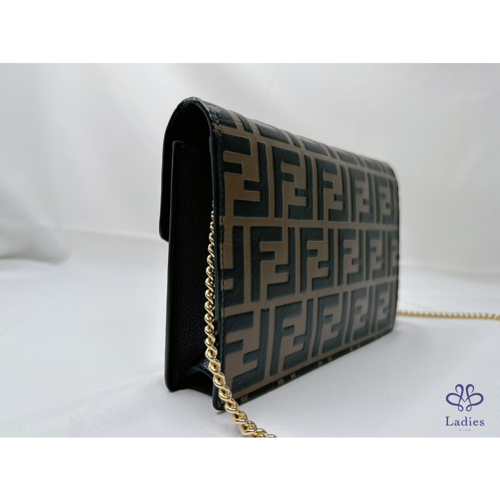 FENDI 老花拚黑皮革WOC信封鏈帶包