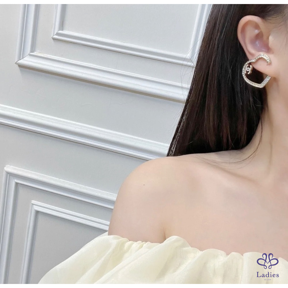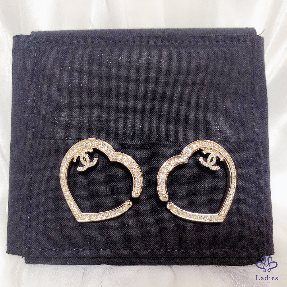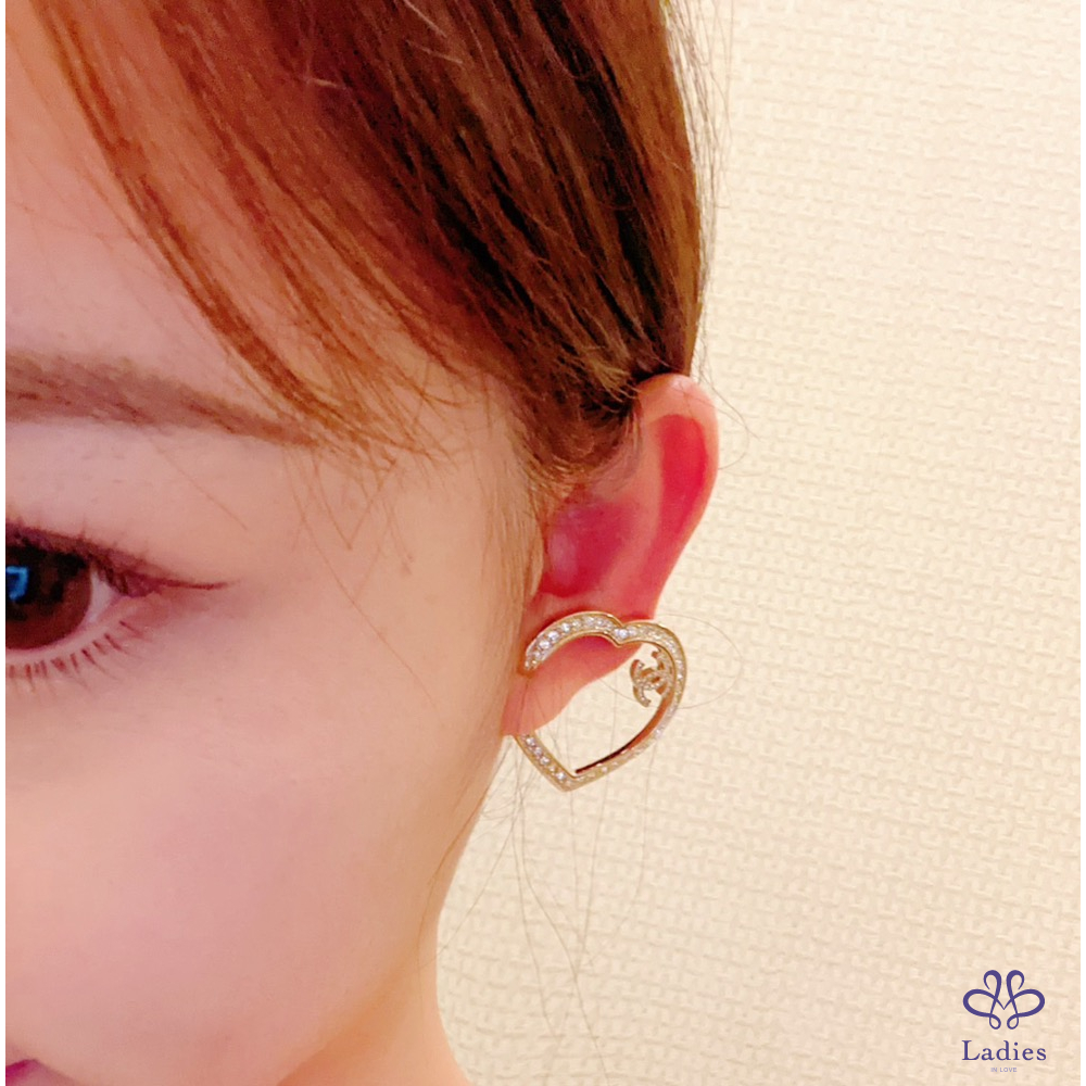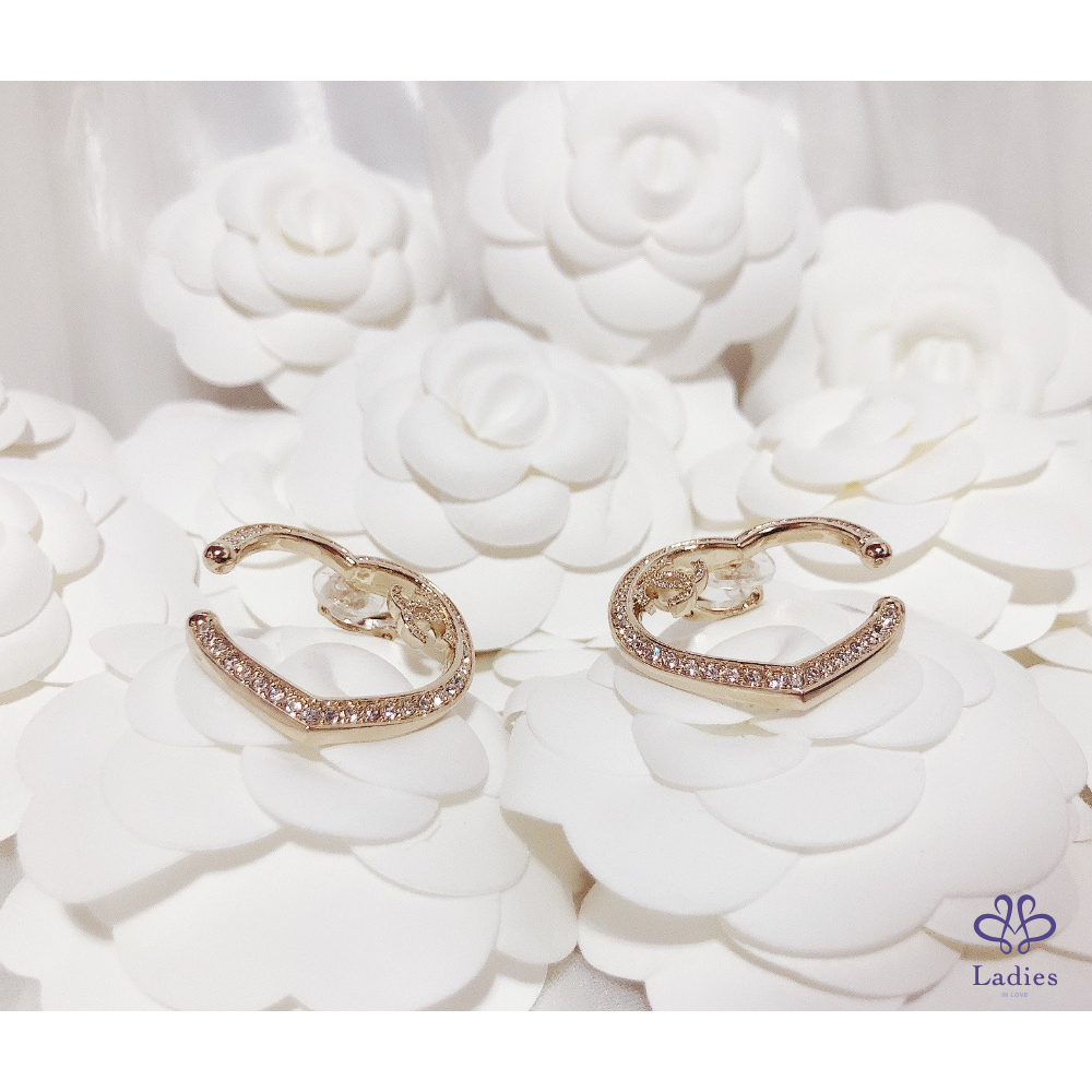 首頁 精品手錶 Chanel 香奈兒 小香 金色 愛心????鏤空水鑽 雙C logo 夾式 耳環 全新✨
